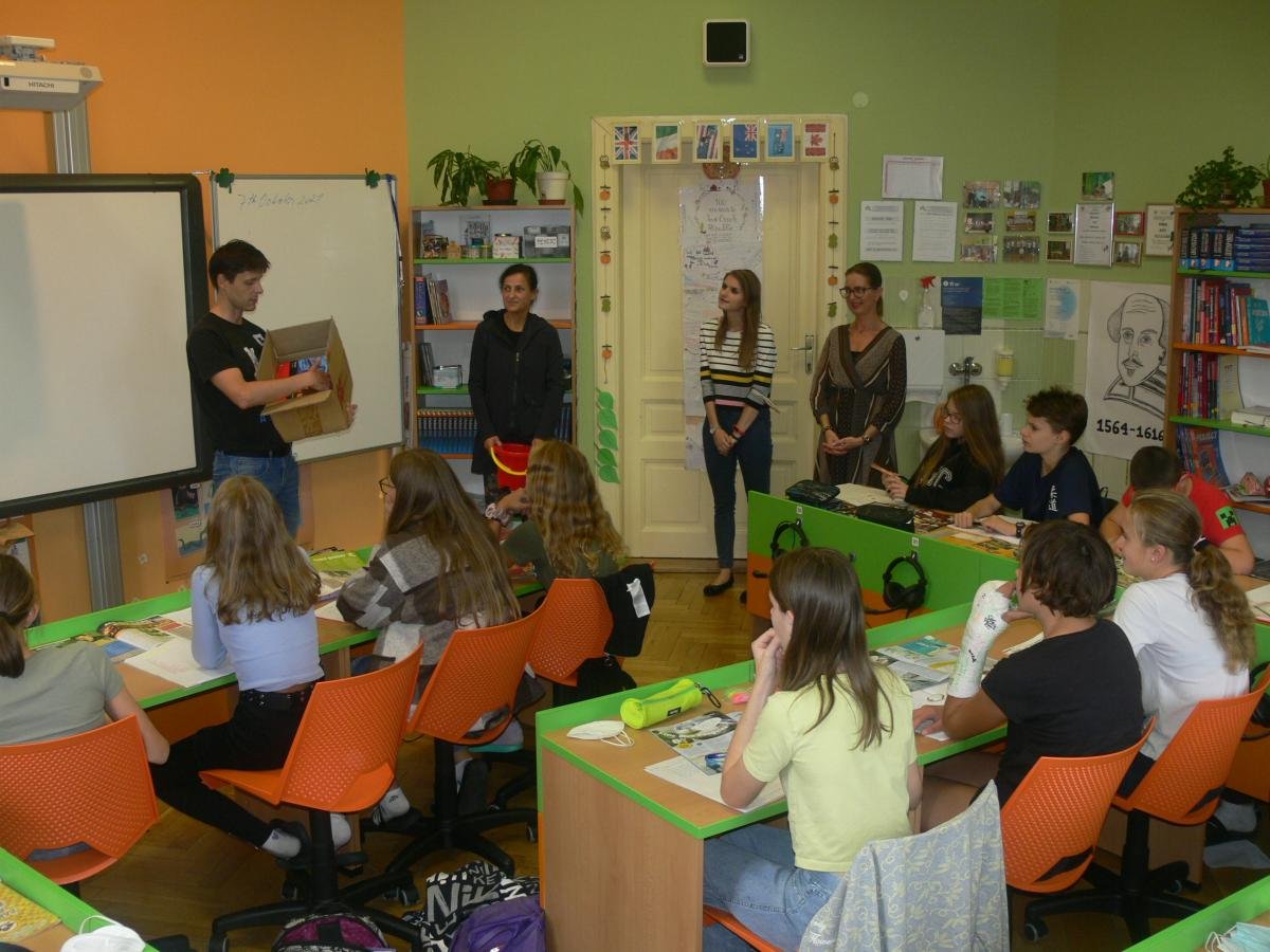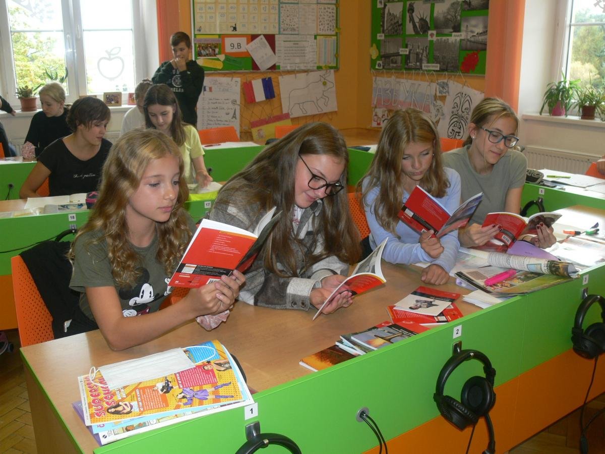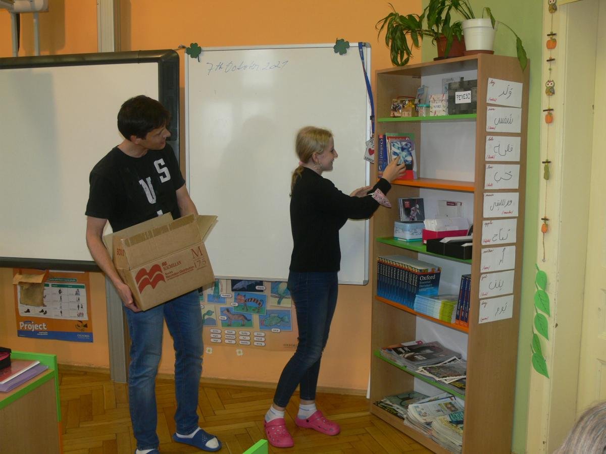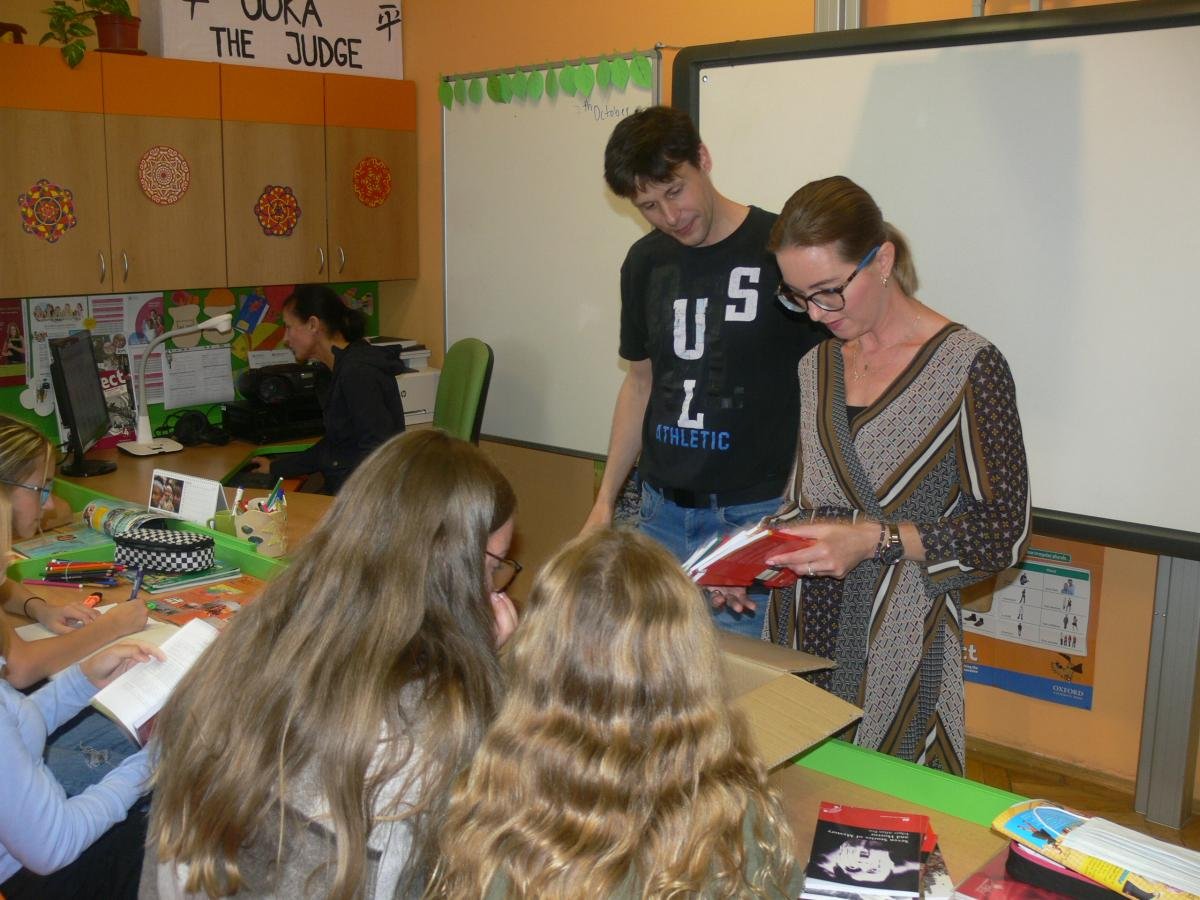 V rámci projektu na podporu rozvoje čtenářských dovedností v anglickém jazyce se nám podařilo zvítězit v projektu, který každoročně připravuje nakladatelství Macmillan a do kterého se mohou zapojit školy z celé České republiky. V posledním ročníku této soutěže se podařilo zvítězit právě naší škole, a proto jsme mohli převzít z rukou paní Evy Kachyňové, zástupkyně nakladatelství Macmillan, krásnou cenu - 100 knížek v angličtině. Knihy psané anglicky jsou různých úrovní od začátečníků až po pokročilé. Děti knížky s radostí převzaly a slavnostně zařadily do naší anglické knihovničky, která tak pomalu nabývá na objemu a nabízí všem žákům možnost rozvíjet své čtenářské dovednosti, a hlavně smysluplně využít volný čas o přestávkách. Přejeme dětem hezké počtení! Keep reading!