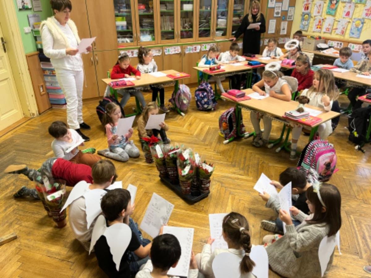 I když Mikuláš naděloval v pondělí, naši nejmenší školáci přišli v andělském převlečení i v úterý.