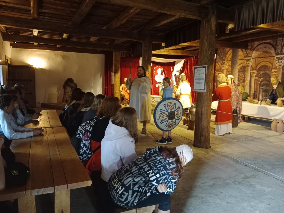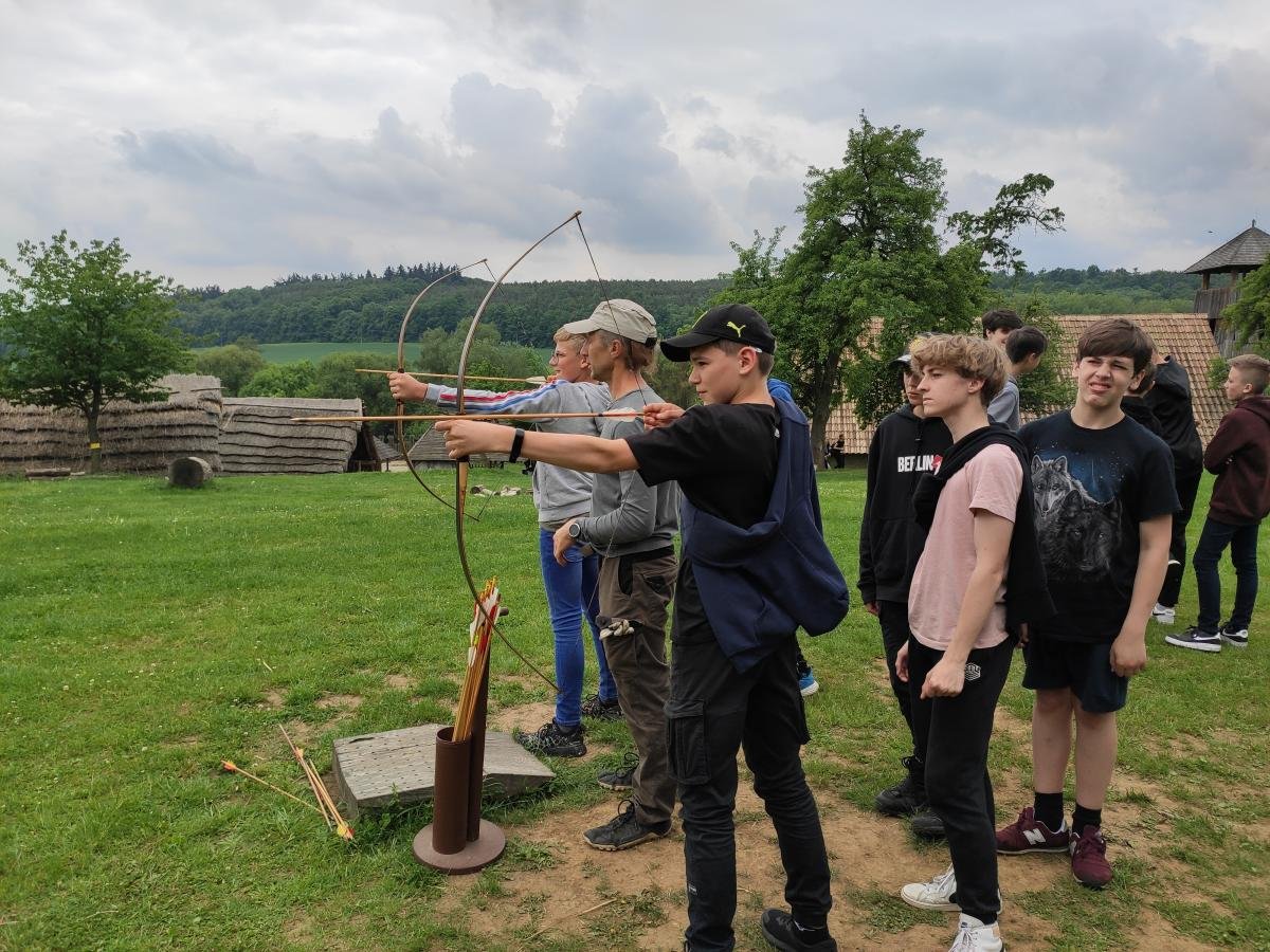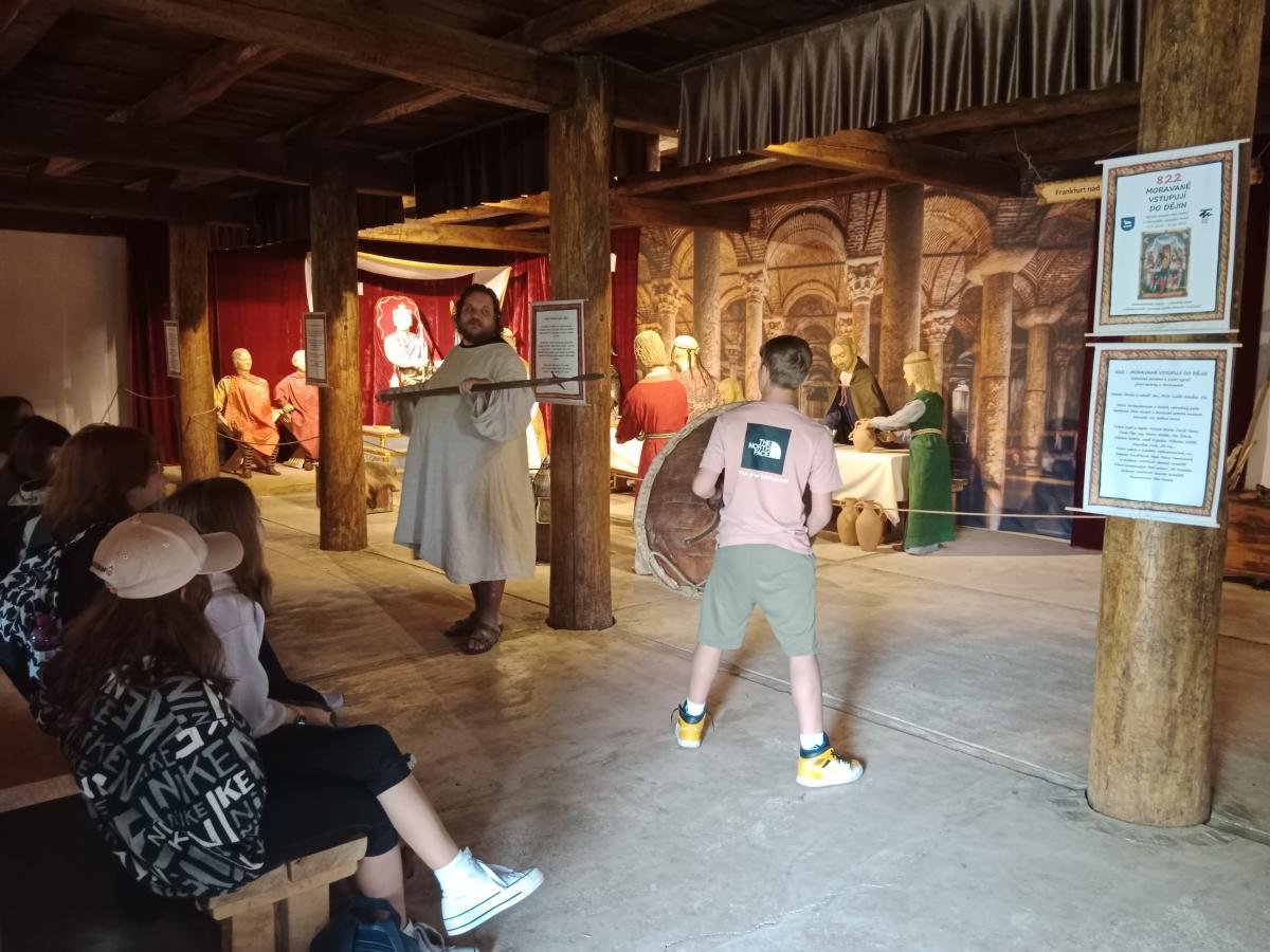 Ve středu 17. 5. 2022 se třídy 7. A a 7. B vydaly na dějepisnou výpravu do 9. století - do doby Velké Moravy. Cílem byl archeoskanzen Modrá nedaleko Velehradu. Archeologický skanzen dětem přiblížil ideální podobu slovanského opevněného hradiska s funkcí mocenského centra z doby Velké Moravy. Žáci navštívili obydlí zemědělce, věž, pekárnu, knížecí palác, vzdělávací areál, kostel a hrnčírnu. Vše bylo obohaceno výkladem pana průvodce a zábavnými aktivitami (např. ukázka hrnčířské dílny). Milým zpestřením byl i výběh pro domácí zvířata. V závěru exkurze jsme se zajeli podívat na nedaleké poutního místa Velehrad.