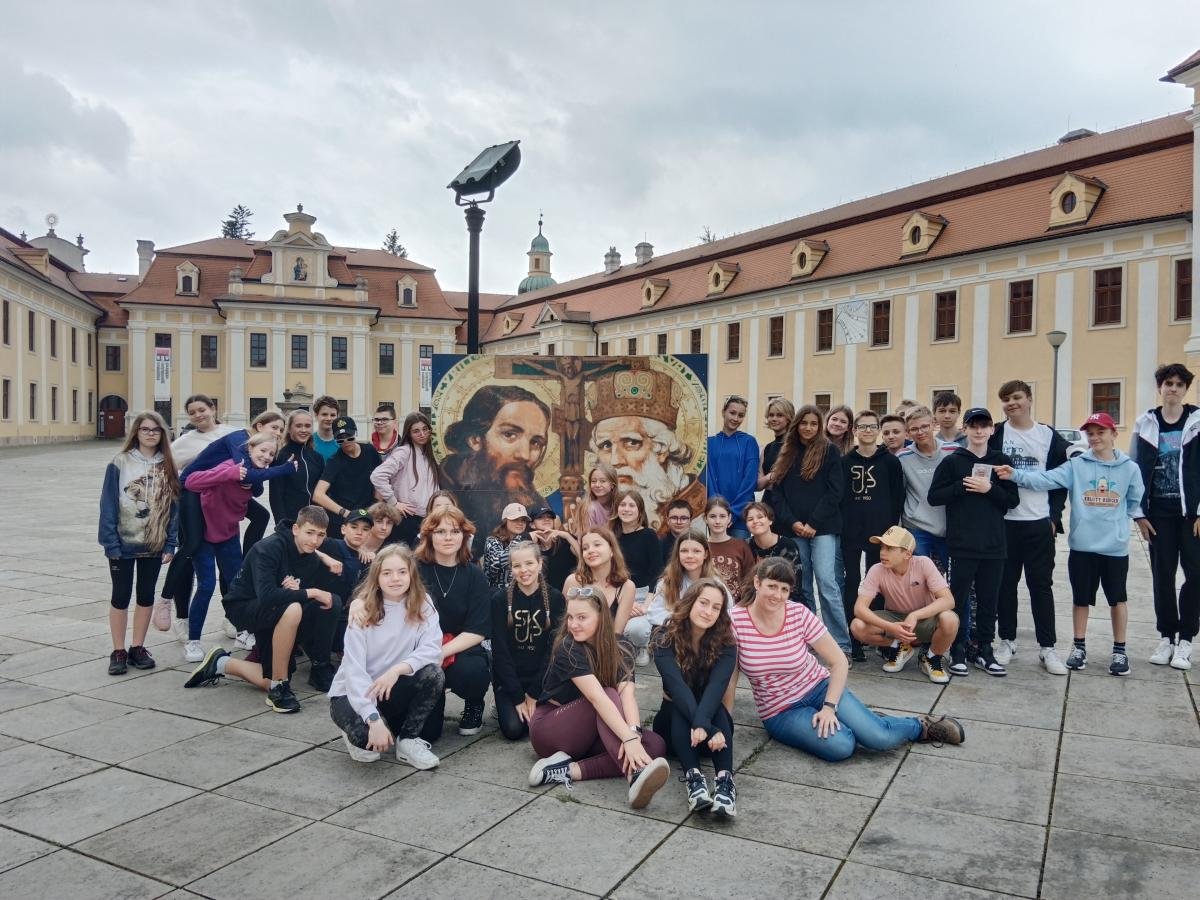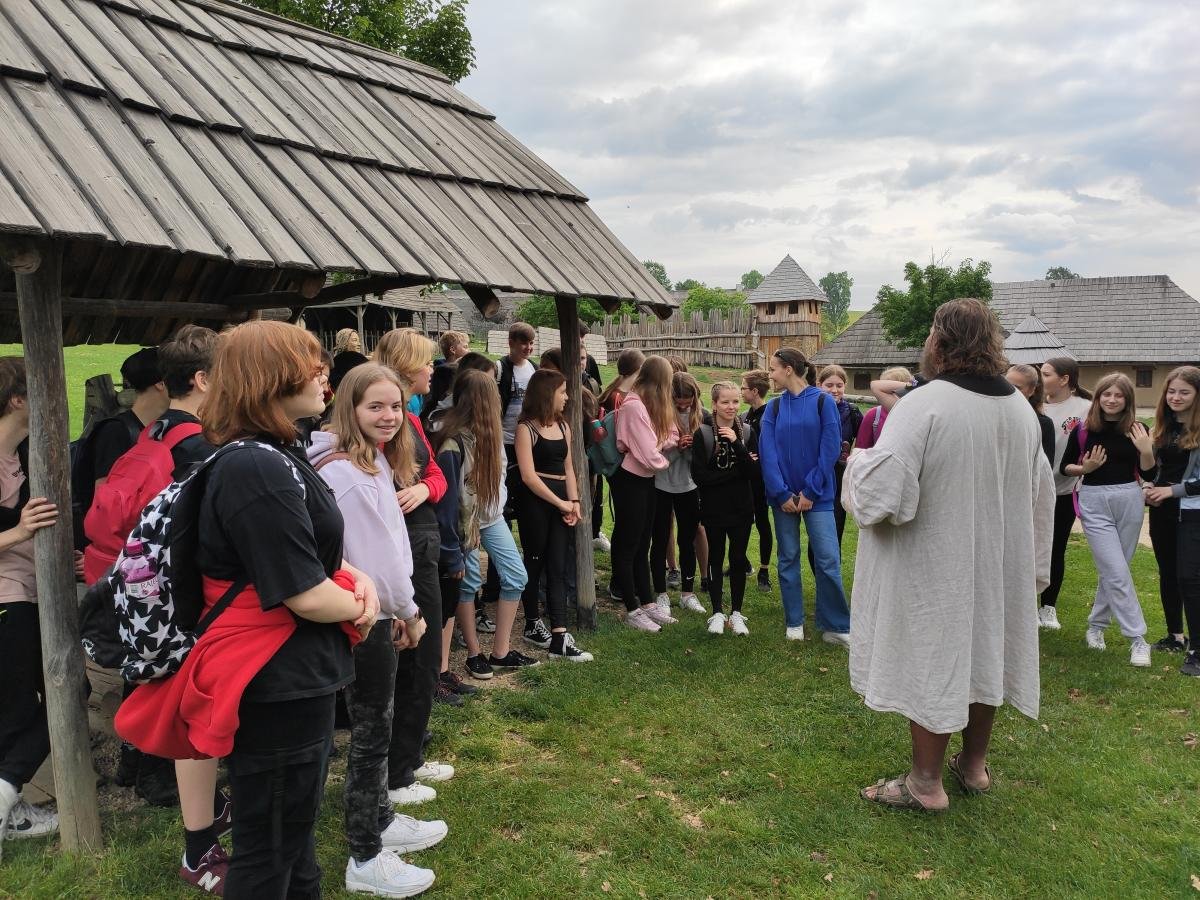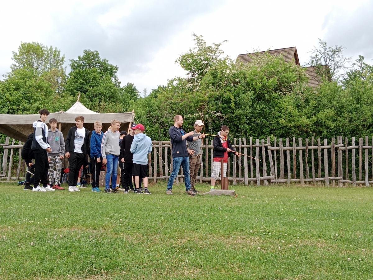 Ve středu 17. 5. 2022 se třídy 7. A a 7. B vydaly na dějepisnou výpravu do 9. století - do doby Velké Moravy. Cílem byl archeoskanzen Modrá nedaleko Velehradu. Archeologický skanzen dětem přiblížil ideální podobu slovanského opevněného hradiska s funkcí mocenského centra z doby Velké Moravy. Žáci navštívili obydlí zemědělce, věž, pekárnu, knížecí palác, vzdělávací areál, kostel a hrnčírnu. Vše bylo obohaceno výkladem pana průvodce a zábavnými aktivitami (např. ukázka hrnčířské dílny). Milým zpestřením byl i výběh pro domácí zvířata. V závěru exkurze jsme se zajeli podívat na nedaleké poutního místa Velehrad.