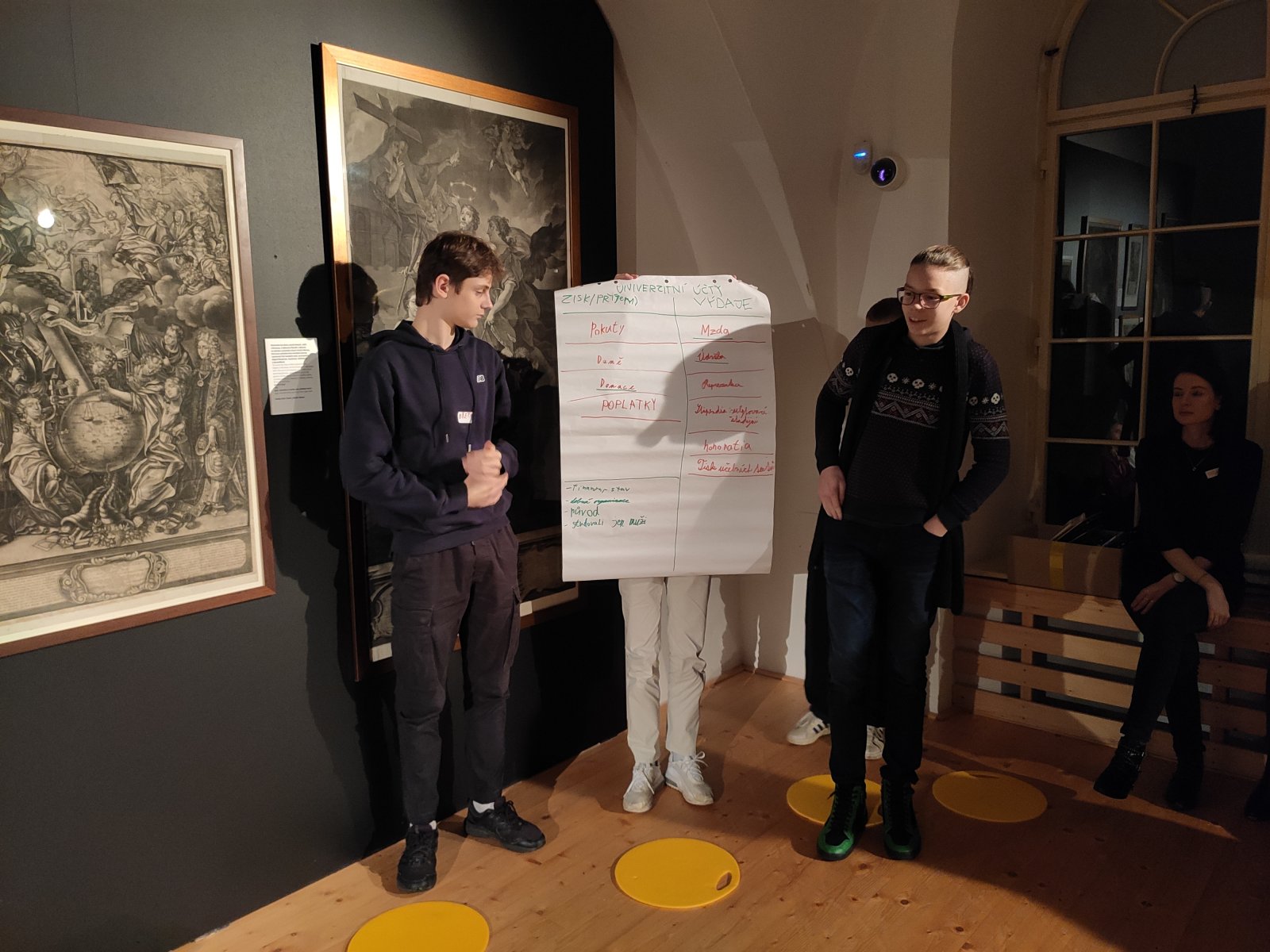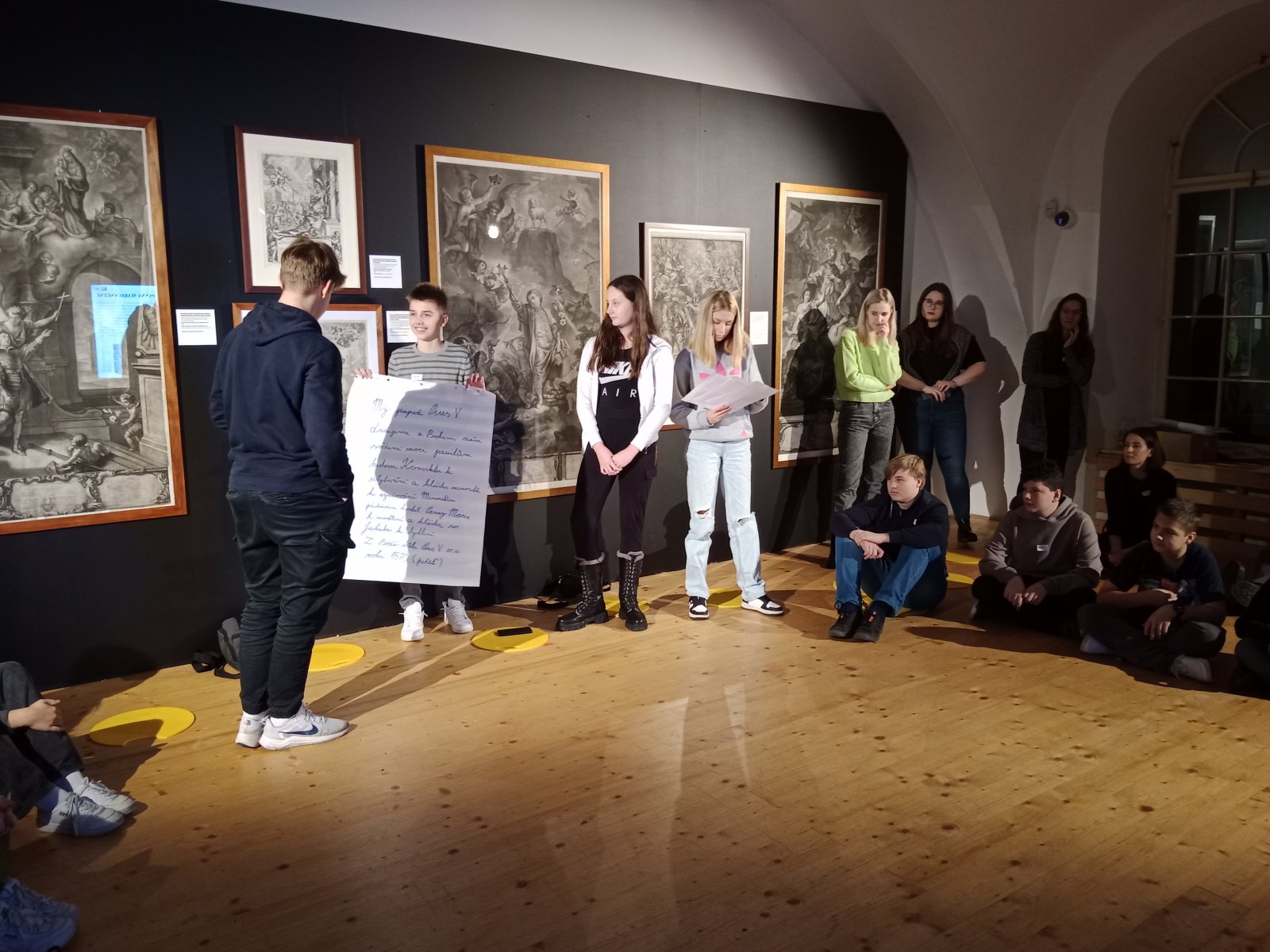 Žáci 8. ročníku se zúčastnili zážitkového badatelského workshopu ve Vlastivědném muzeu Olomouc. Celá akce se odehrávala v prostorách výstavy Chrám moudrosti, která je věnována dějinám jezuitů a vzdělávání v Olomouci. Studenti historie pod vedením paní docentky Radmily Prchal Pavlíčkové si žáky rozdělili na menší pracovní skupiny a s pomocí pramenů (obrazových i písemných) se naši osmáci snažili přijít na to, co bylo potřeba k založení olomoucké univerzity a jak škola v minulosti fungovala. Své výsledky pak na závěr představili ostatním i za využití metody „živých obrazů“. Moc děkujeme za skvělý workshop.