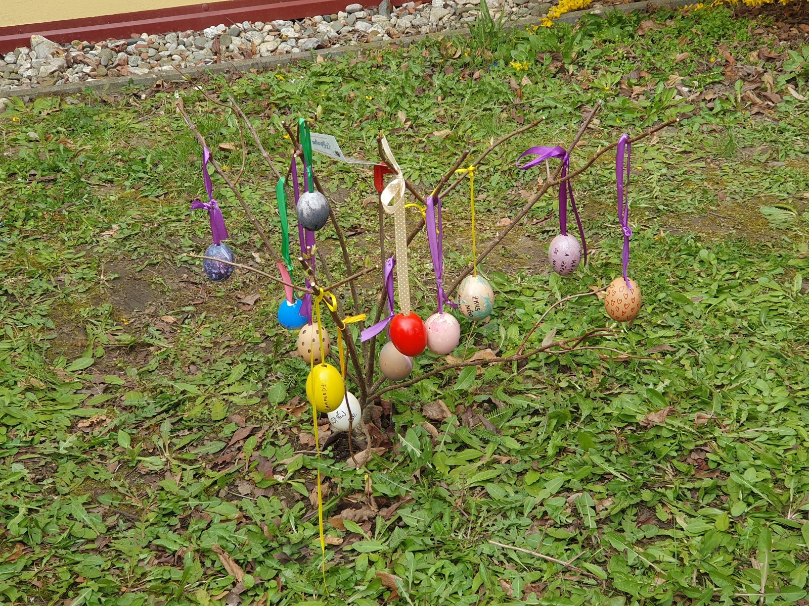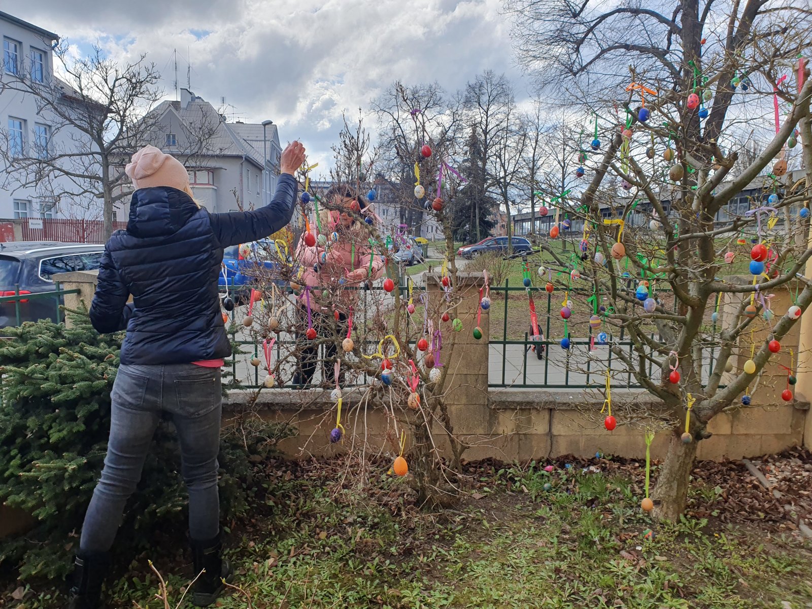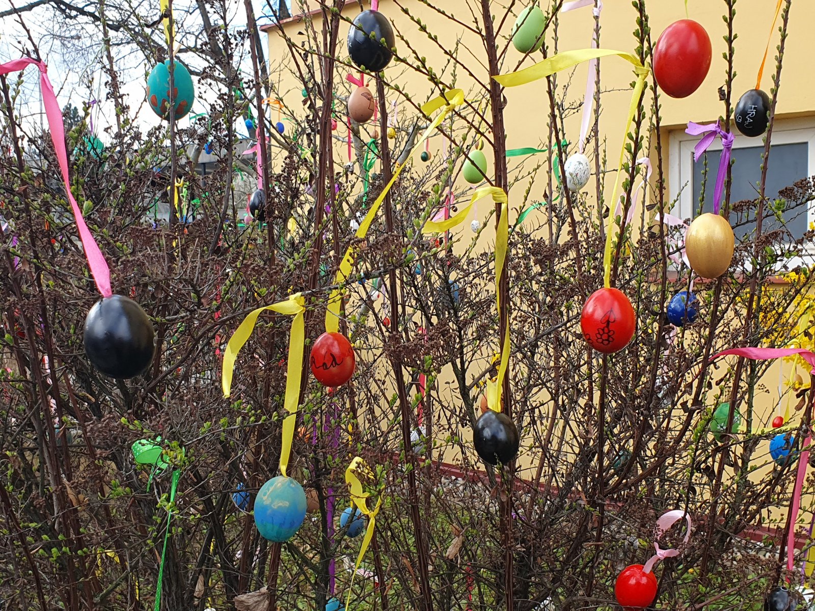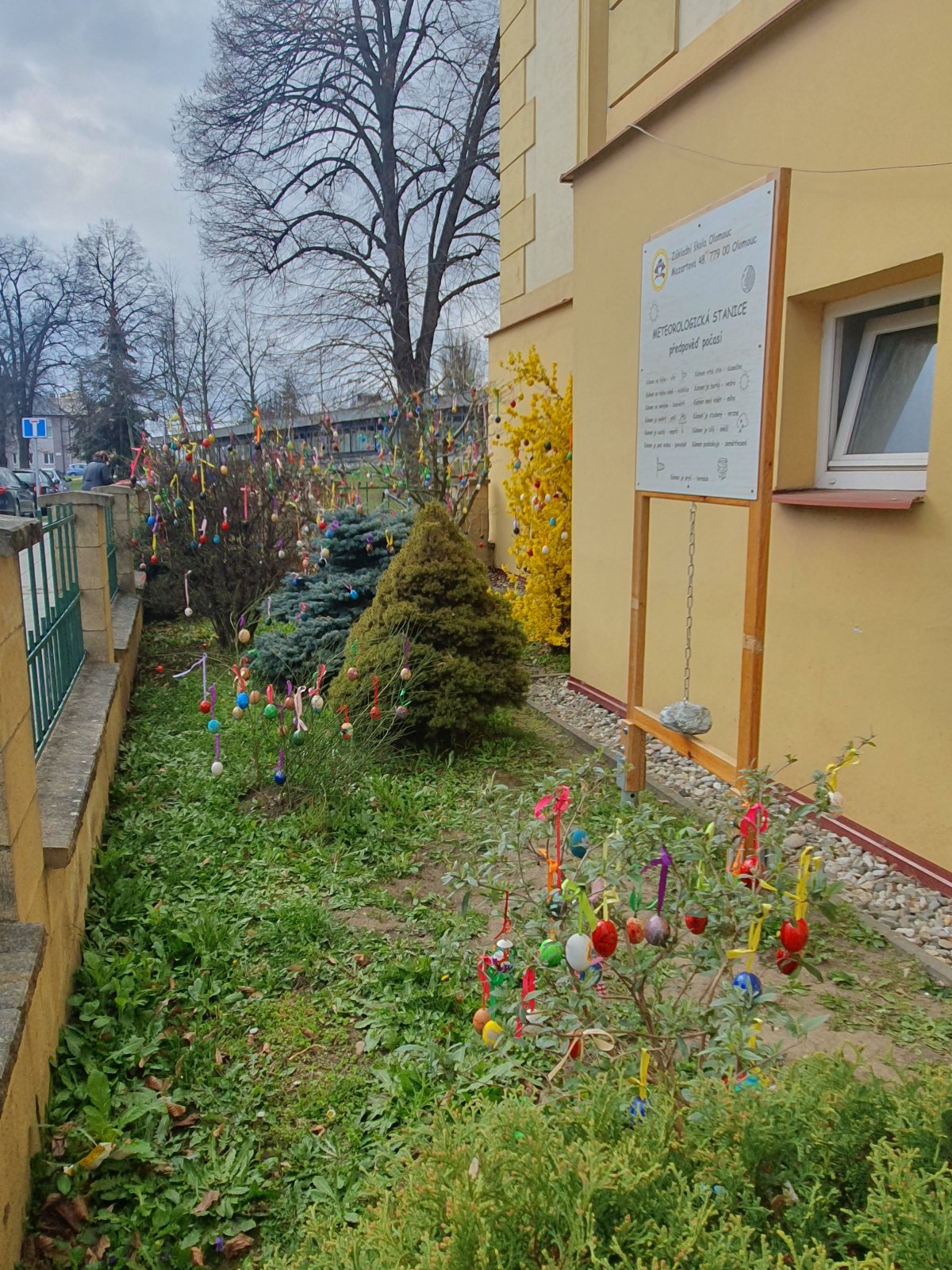 Nazdobit stromečky a keře před naší školou barevnými kraslicemi se stalo ve školní družině již každoroční tradicí. I když nám letos počasí před Velikonocemi moc nepřálo, podařilo se nám připevnit rovných 600 vajíček. Děkujeme všem dětem i jejich rodičům a přejeme krásné a veselé Velikonoce.