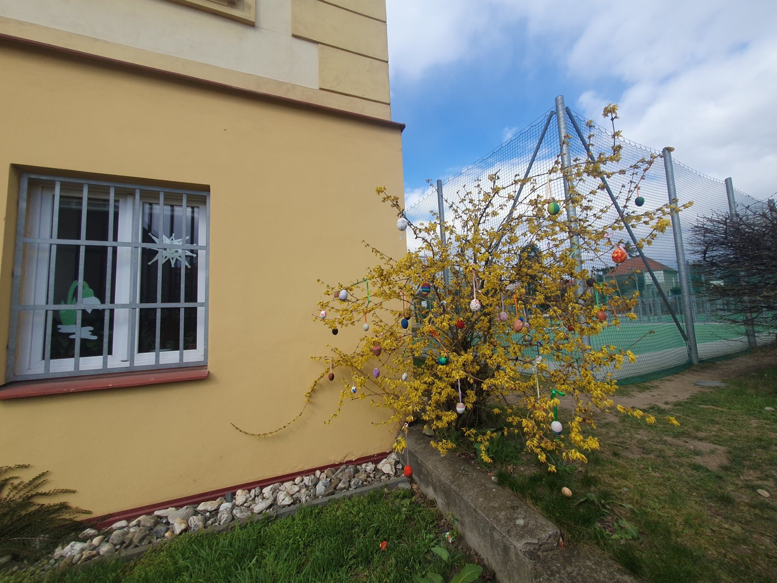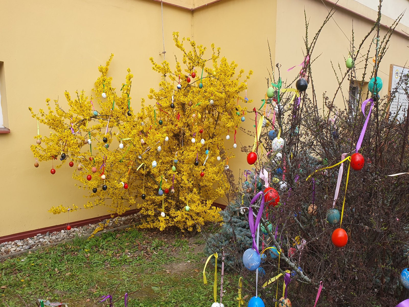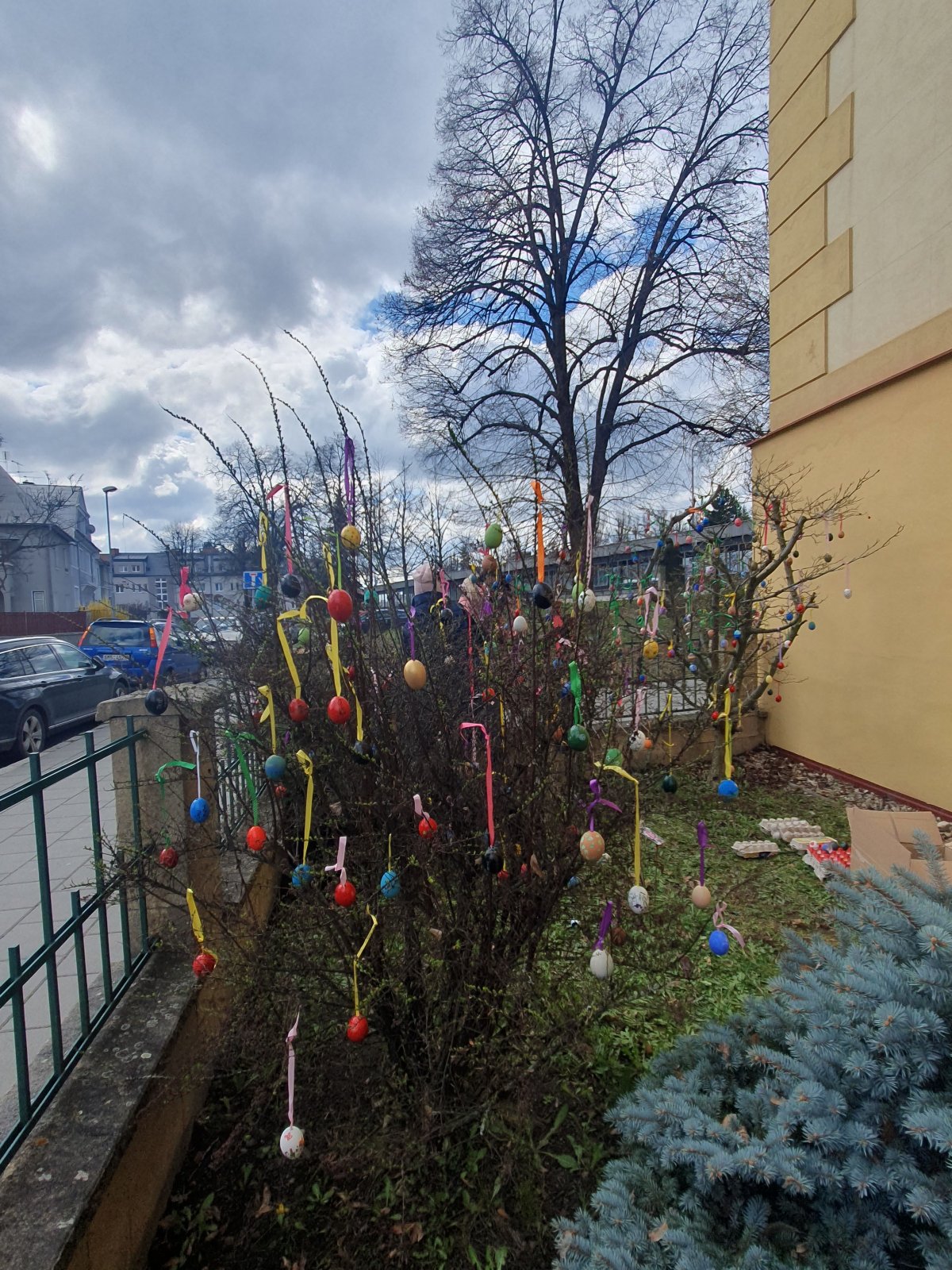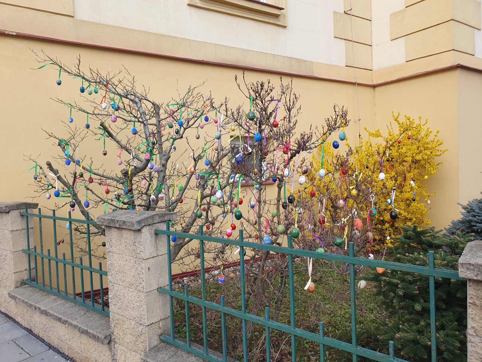 Nazdobit stromečky a keře před naší školou barevnými kraslicemi se stalo ve školní družině již každoroční tradicí. I když nám letos počasí před Velikonocemi moc nepřálo, podařilo se nám připevnit rovných 600 vajíček. Děkujeme všem dětem i jejich rodičům a přejeme krásné a veselé Velikonoce.