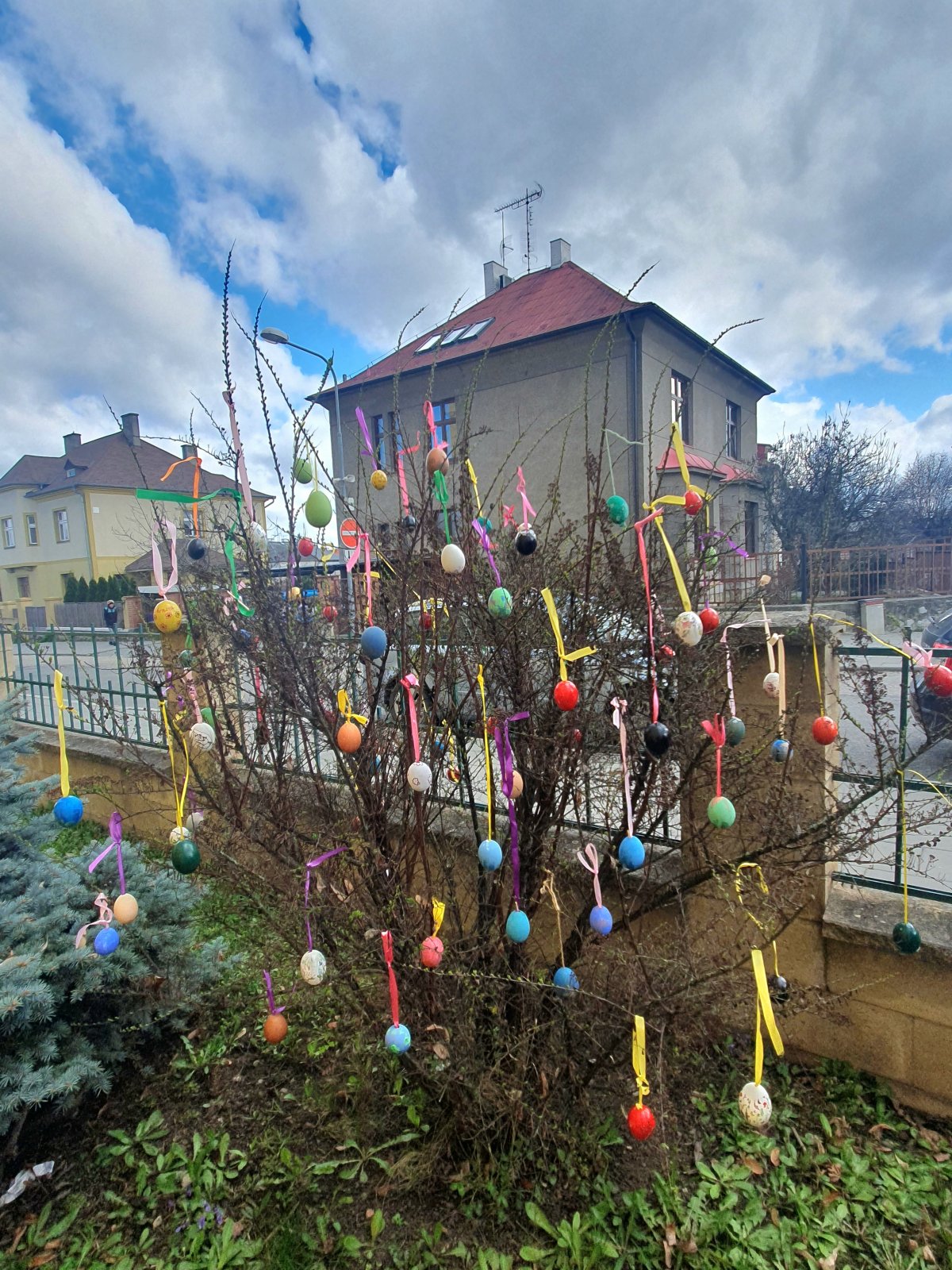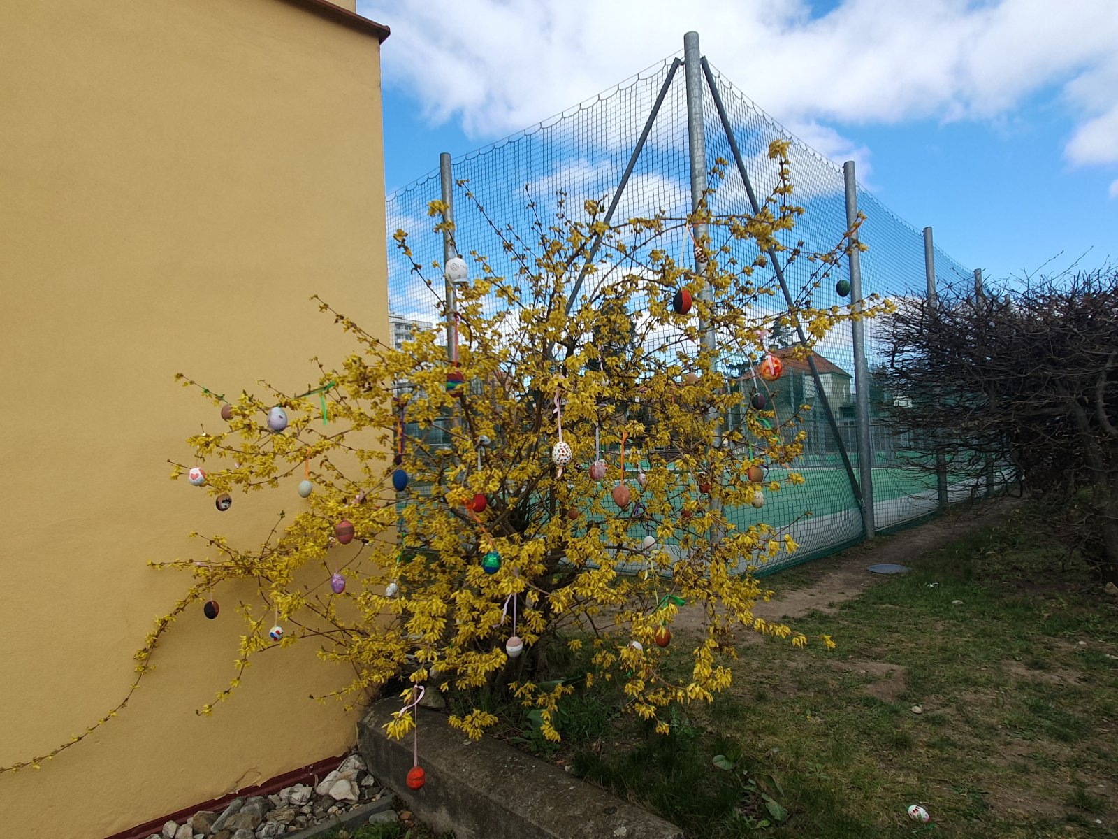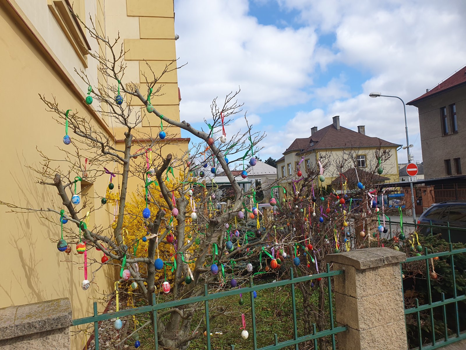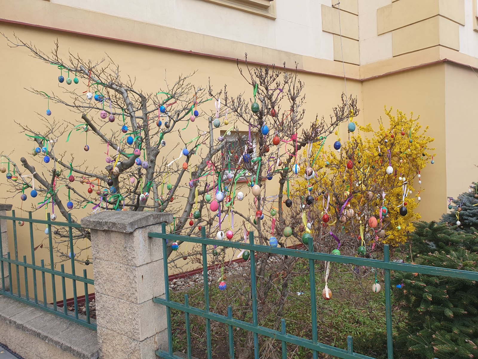 Nazdobit stromečky a keře před naší školou barevnými kraslicemi se stalo ve školní družině již každoroční tradicí. I když nám letos počasí před Velikonocemi moc nepřálo, podařilo se nám připevnit rovných 600 vajíček. Děkujeme všem dětem i jejich rodičům a přejeme krásné a veselé Velikonoce.