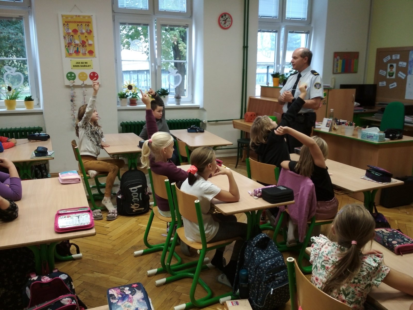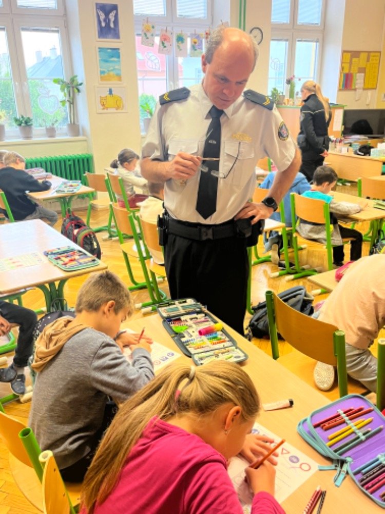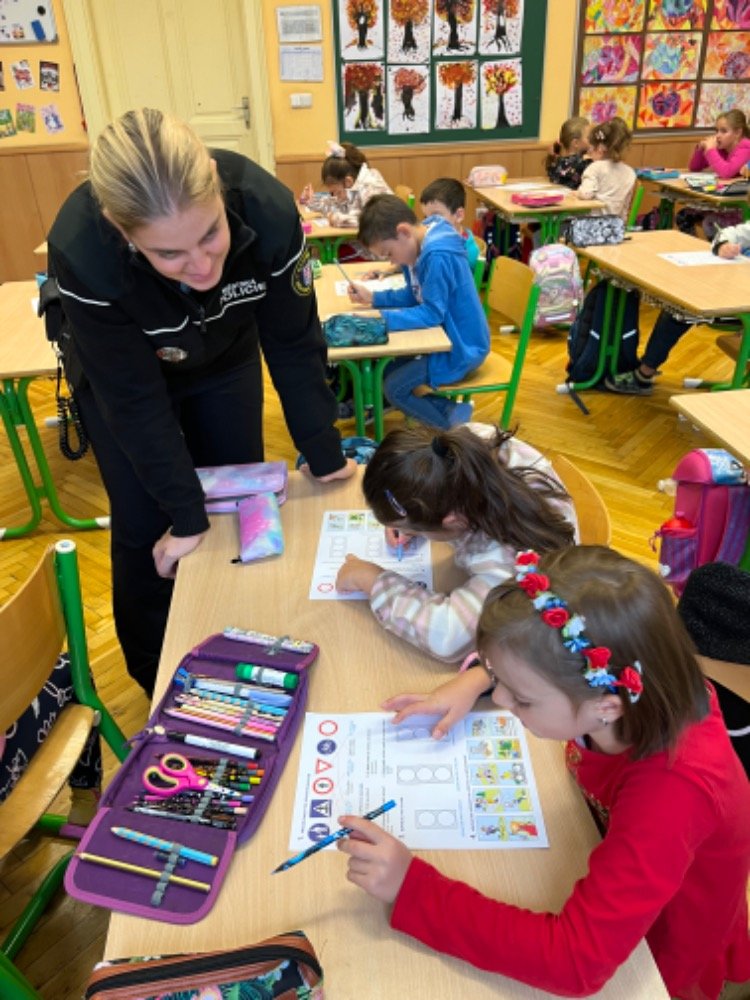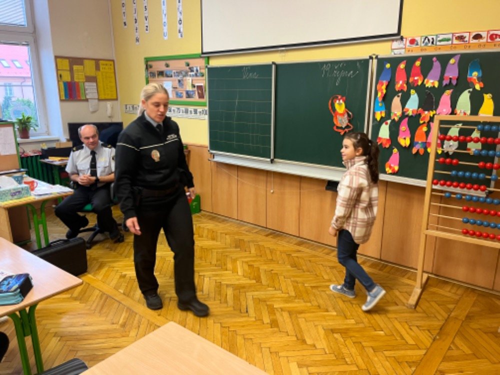 Dnes už všichni dobře vědí, že přítomnost příslušníků policejního sboru u nás má ryze preventivní charakter a je důležitá pro bezpečí dětí. V den návštěvy učitelé opustili své místo za katedrou a zasedli do lavice mezi své žáky.