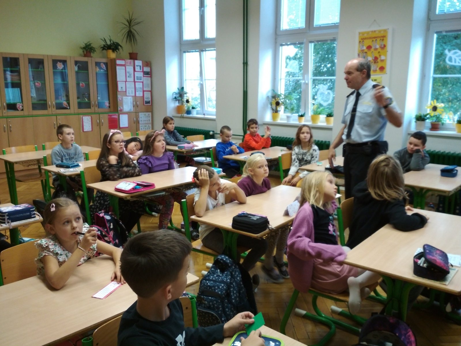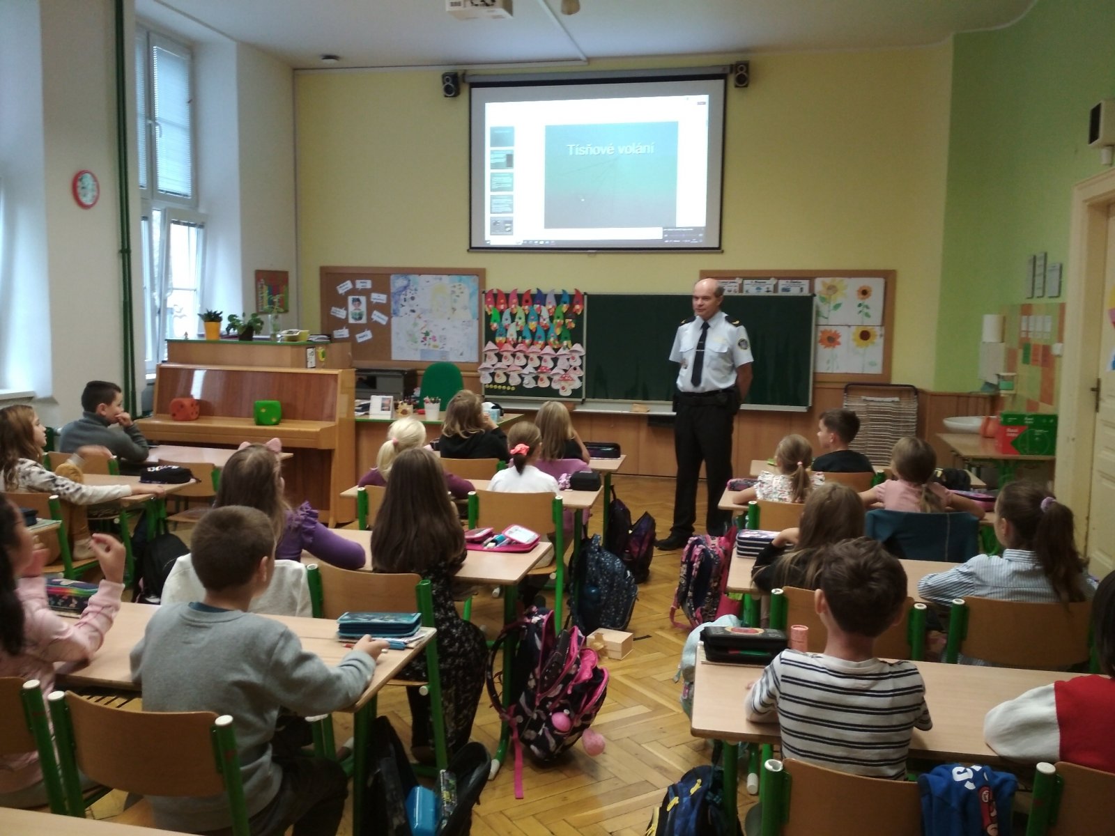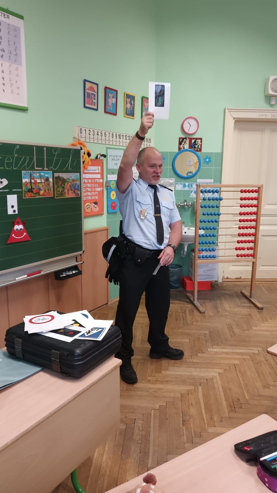 Dnes už všichni dobře vědí, že přítomnost příslušníků policejního sboru u nás má ryze preventivní charakter a je důležitá pro bezpečí dětí. V den návštěvy učitelé opustili své místo za katedrou a zasedli do lavice mezi své žáky.