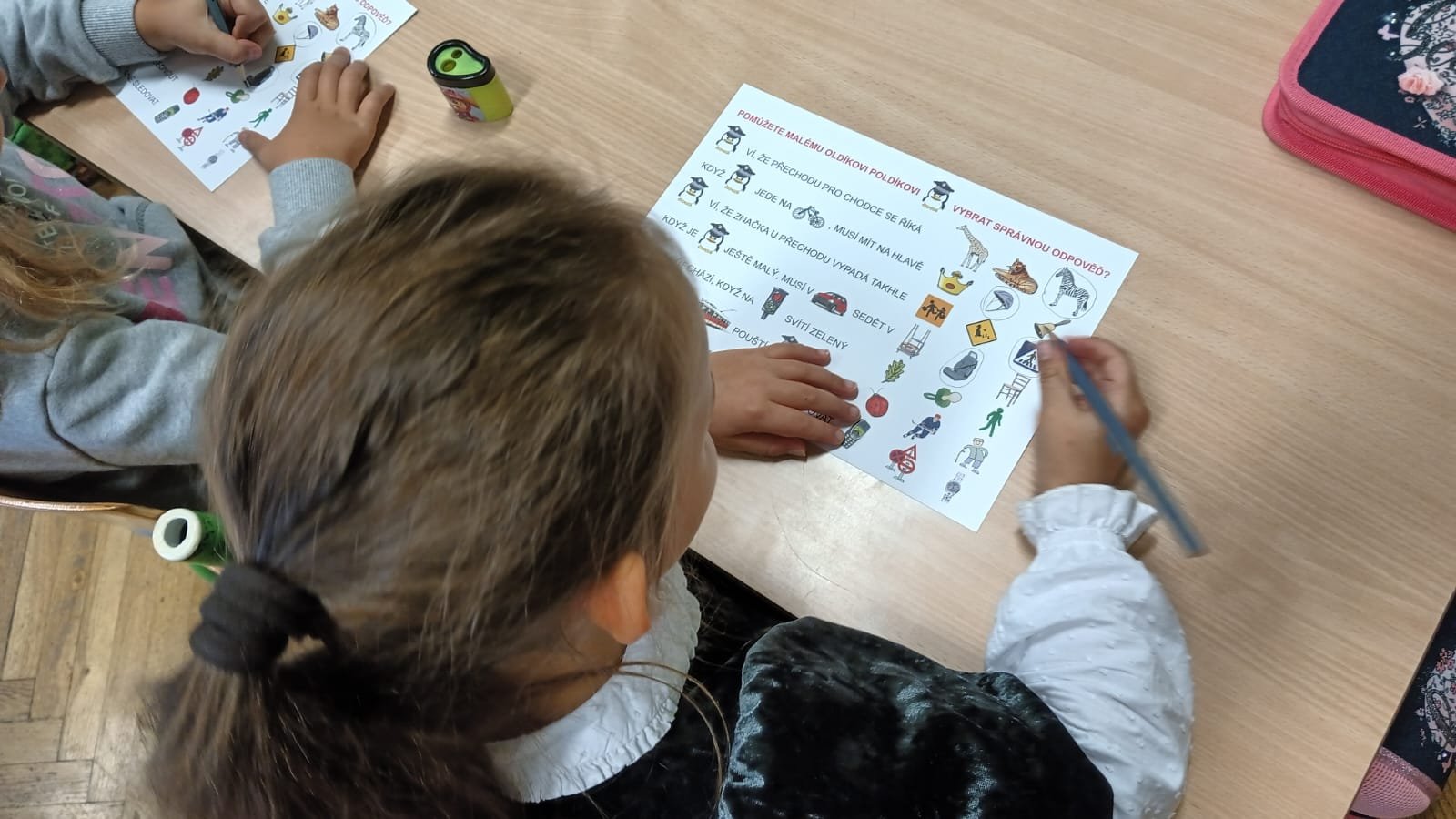 V 1. až 4. ročníku se žáci proměnili v účastníky silničního provozu. Řešili dopravní situace z pohledu chodce – semafory, dopravní značky. Dozvěděli se o nutnosti používání autosedaček pro děti při jízdě autem. Děti si vše nejen vyslechly, ale samy se zapojovaly do diskuse. Ty starší předvedly, že mají potřebné znalosti i jako cyklisté. „Důvěřuj, ale prověřuj.“ Toto heslo bude dětem připomínat, že opatrnosti nikdy není dost. I když budou pravidla dodržovat, je lepší se na přechodu přesto rozhlédnout a nespoléhat jen na zeleného panáčka na semaforu. Nešťastných úrazů a zbytečně zmařených životů je velká škoda.