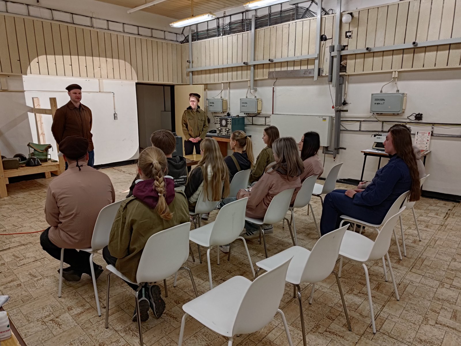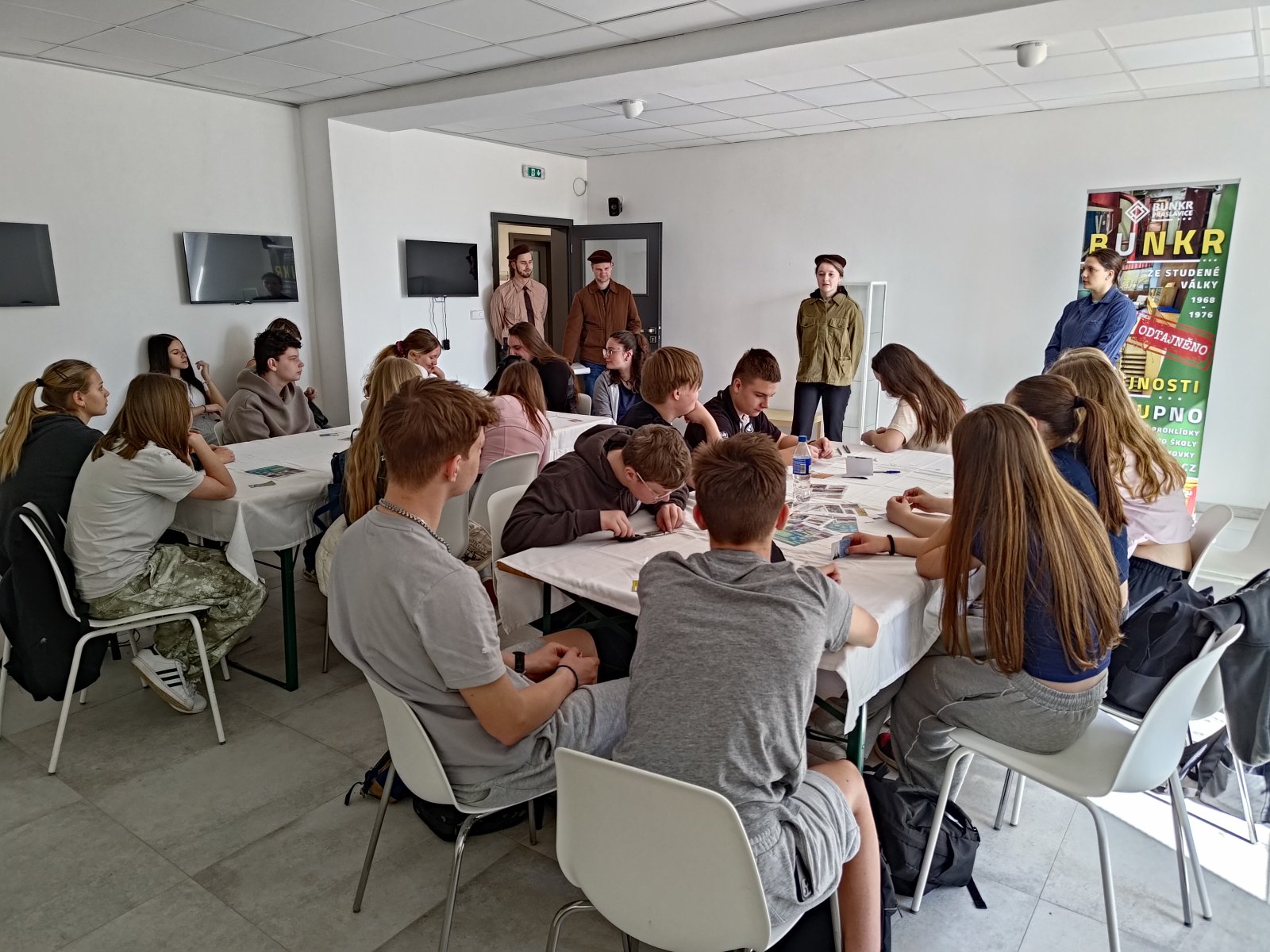 Dne 23.4. a 30.4. navštívili žáci 9.ročníků jeden z největších protiatomových bunkrů ve střední Evropě, vybudovaný v 70. letech minulého století. Bunkr měl zajišťovat spojení mezi zeměmi Varšavské smlouvy. V rámci zajímavého edukačního programu se žáci ocitli v rolích zaměstnanců bunkru, podstoupili dekontaminaci, byla jim přidělena jejich pracovní role, podle níž dostali příslušnou uniformu a pracovní identifikační kartu. Po vyhlášení poplachu se žáci dozvěděli, že ve vzdušném prostoru naší republiky se objevilo neohlášené letadlo Spojených států a jejich úkolem je bunkr aktivovat, ověřit funkčnost telefonického spojení, zkontrolovat kvalitu paliva, dešifrovat zprávu a především rozhodnout, jak se zachovat při narušení vzdušného prostoru. Součástí programu byla také prohlídka sálů s telekomunikační technikou, čističkou vzduchu, dekontaminačních místností, záložních energetických zdrojů apod. Na vlastní kůži tak mohli žáci pocítit napjatou atmosféru studené války a pochopit politiku Československa tehdejší doby.