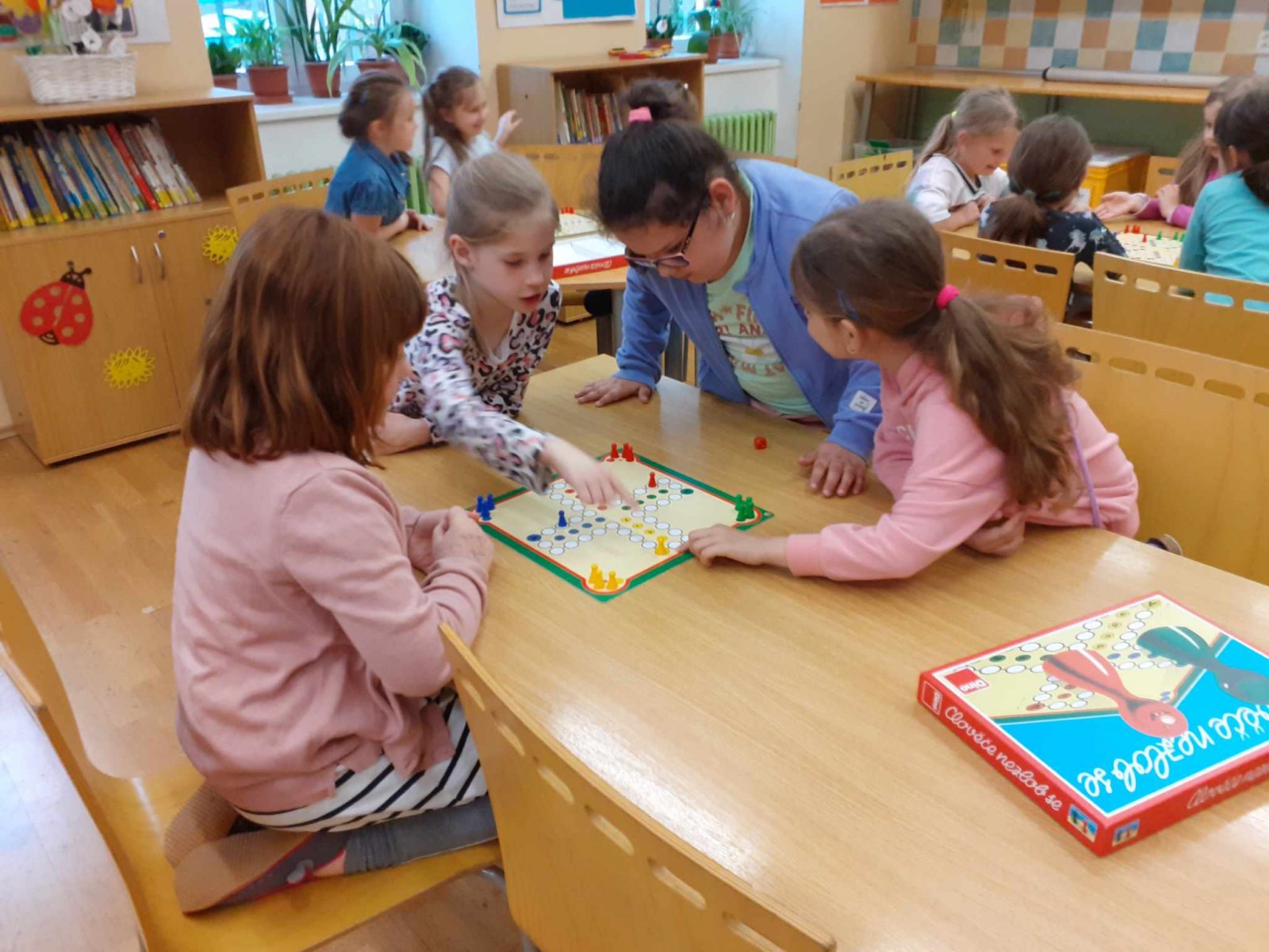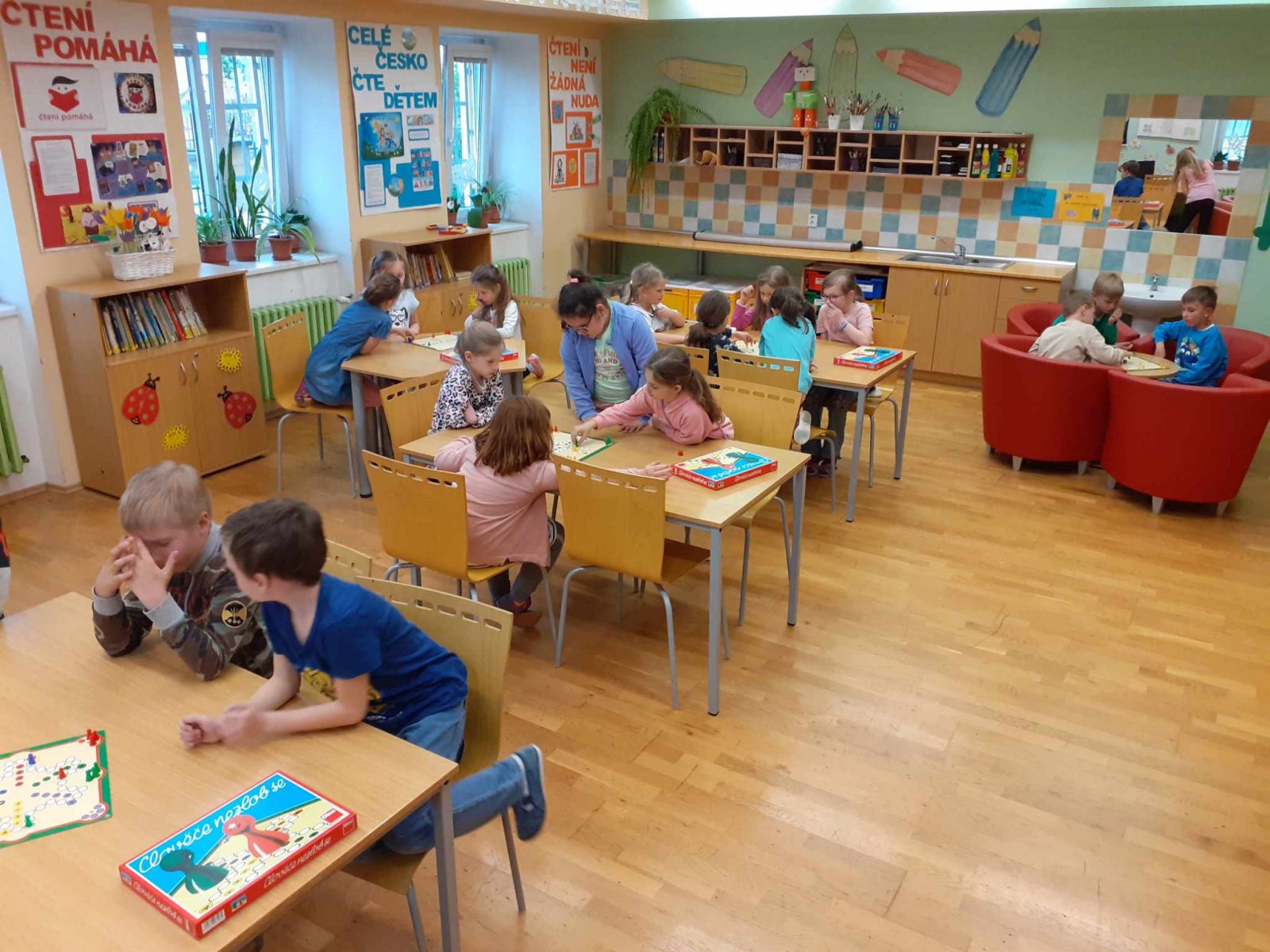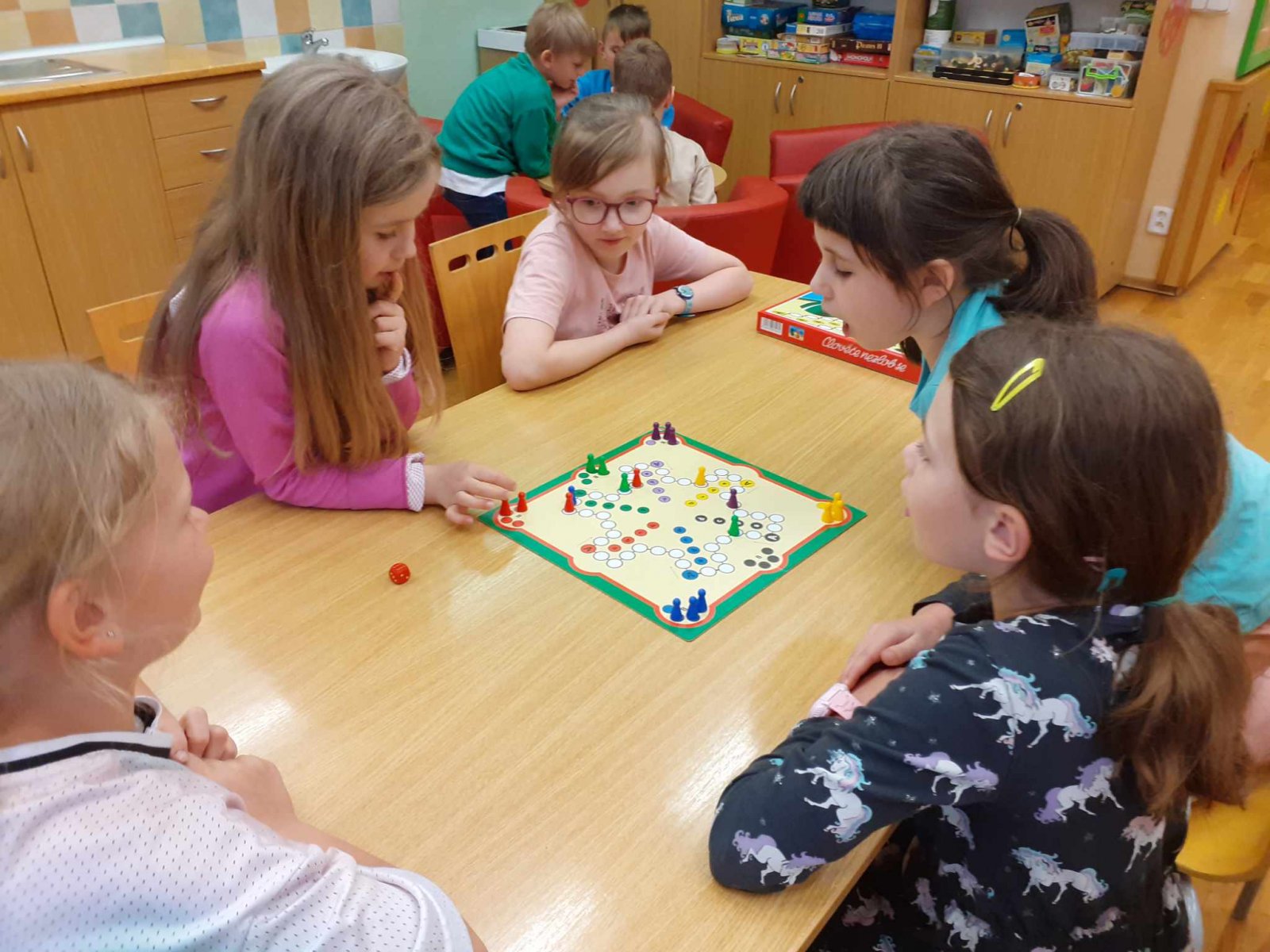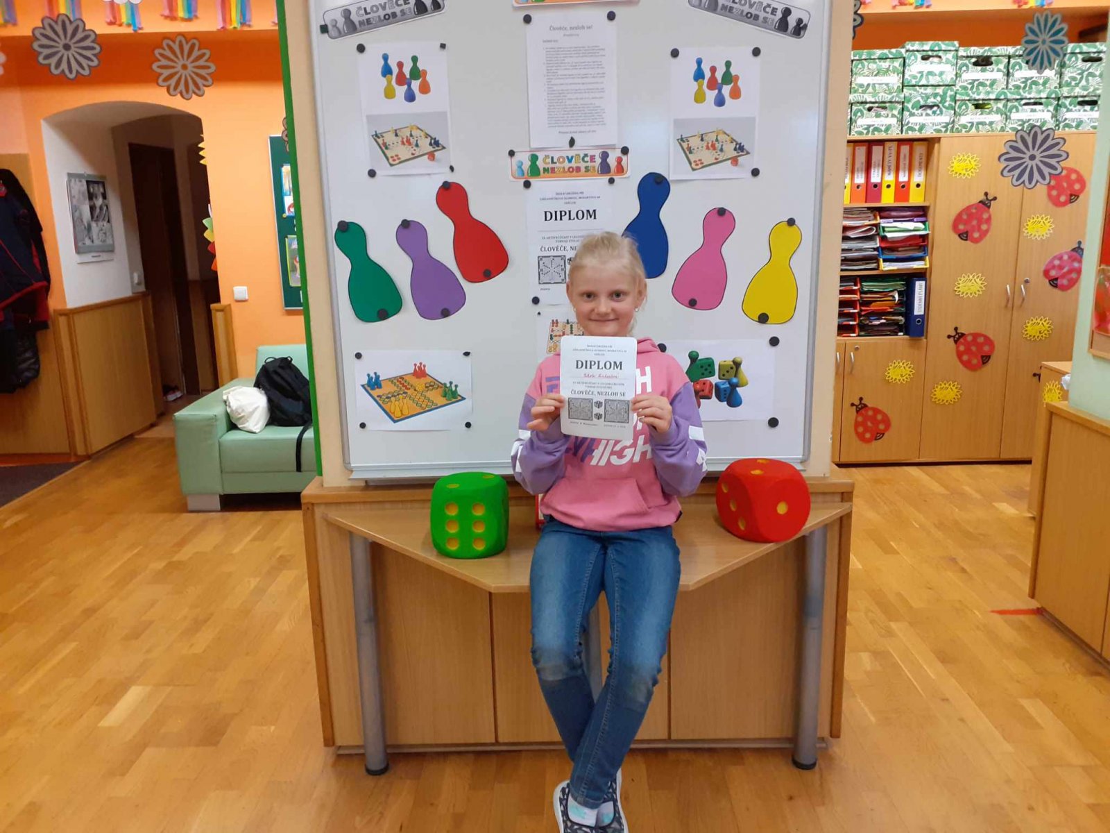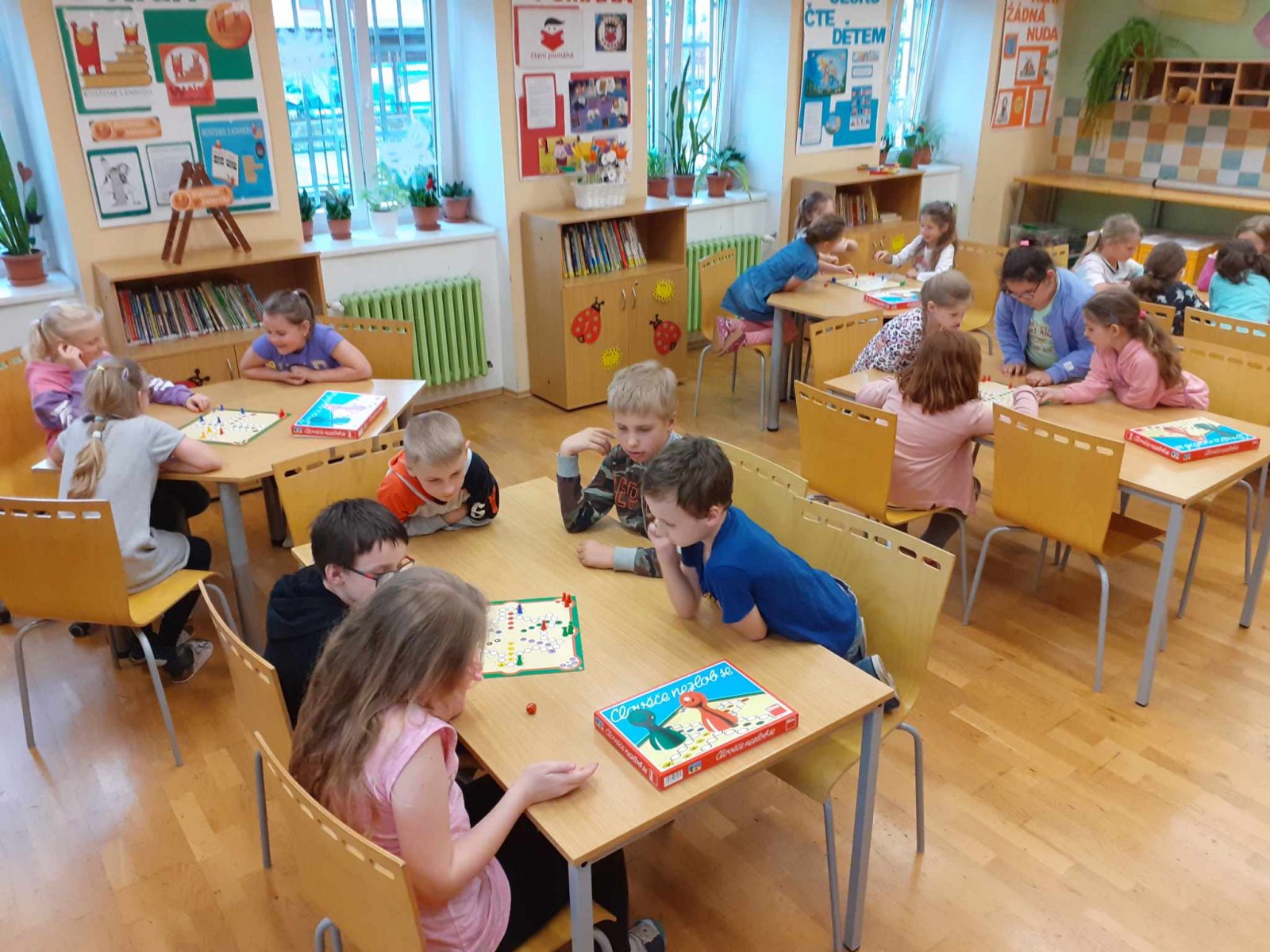 Snad nejoblíbenější, nejrozšířenější a nejpopulárnější u nás hraná deskovka se stala náplní pondělního odpoledne dětem v naší školní družině. Hra, kterou mohou hrát dva, tři i čtyři hráči, ale v různých modifikacích herního pole může hrát i hráčů více, je jednou z nejstarších společenských her vůbec. Člověče, nezlob se, je snad nejhranější stolní hra u nás. Svůj prapůvod má v Indii. Do Evropy se dostala prý až v 19. století a u nás nabyla rozmachu až za první republiky po roce 1918. Tato legendární hra je nesmírně populární i mezi dětmi v naší školní družině. Proto jsme si připravili s dětmi celé herní odpoledne. Děti hrály na 6 herních polích, u každého herního pole se třemi, čtyřmi i pěti hráči. Nálada byla vynikající, nikdo se nezlobil, všichni účastníci brali hru jako nesmírnou zábavu. Padaly šestky, děti spěchaly se svými barevnými figurkami do domečků a nesmírně si hru užívaly. Už dnes se těšíme na další klání.