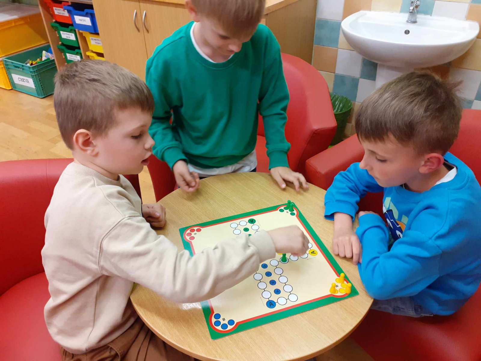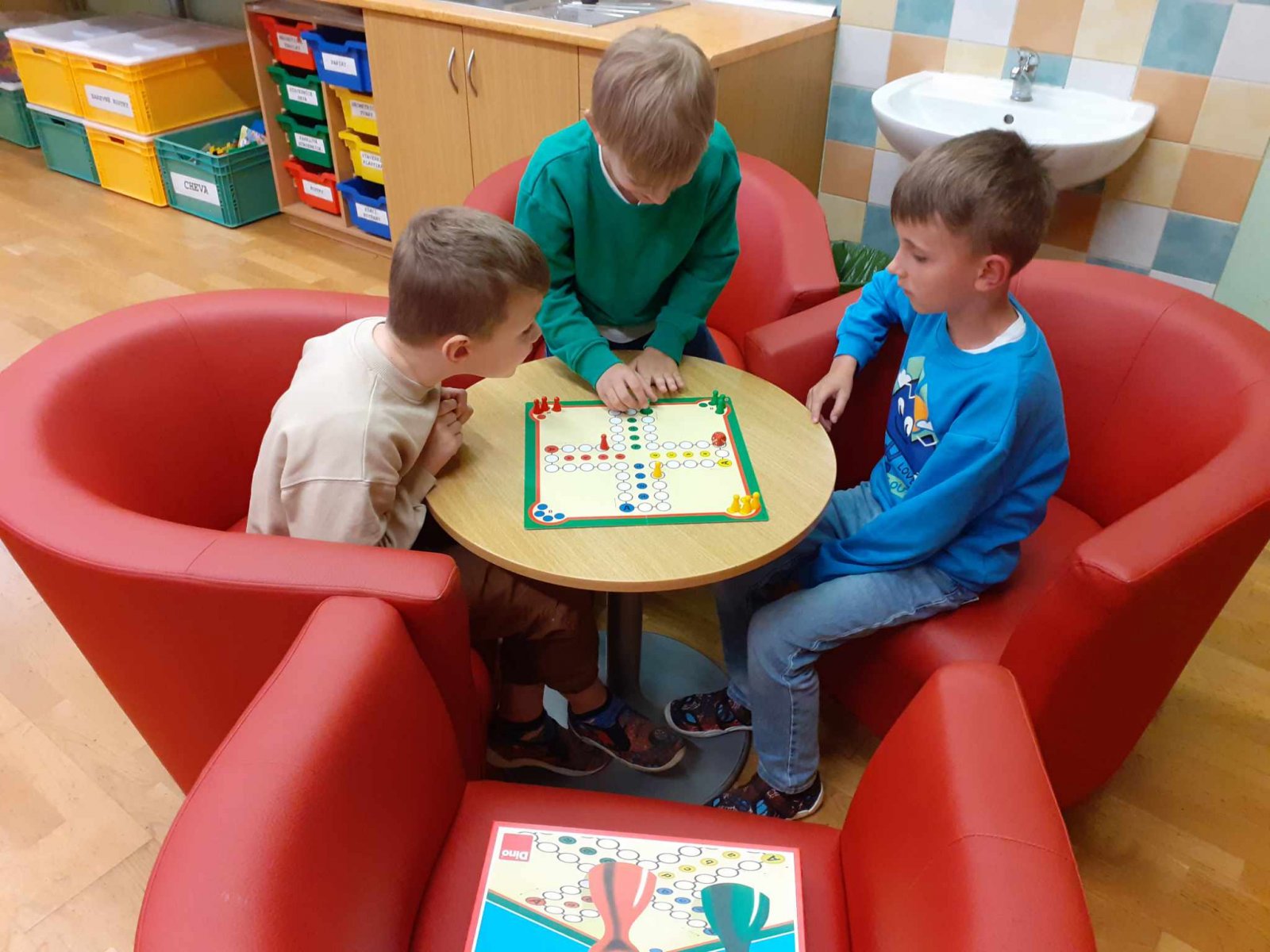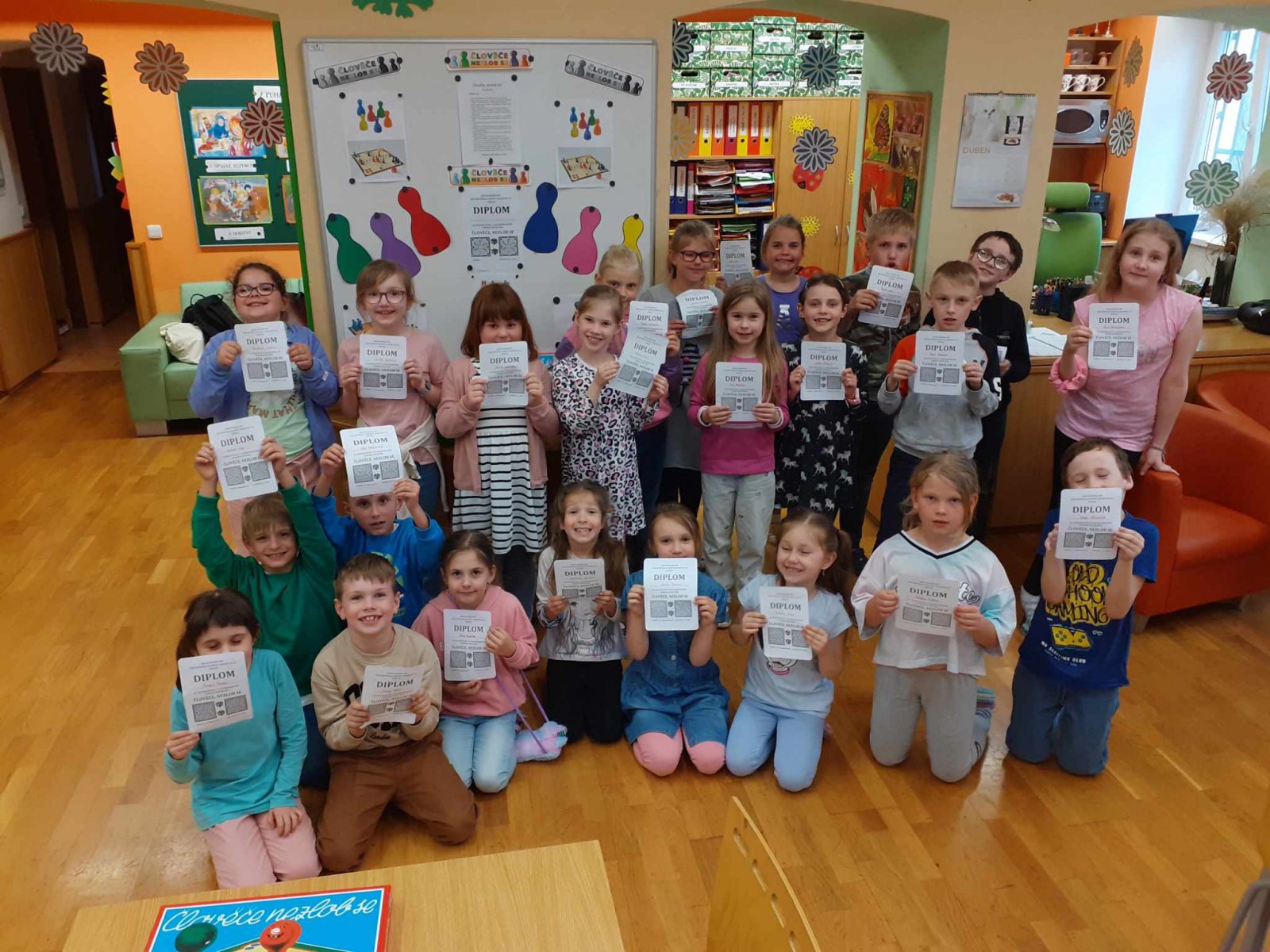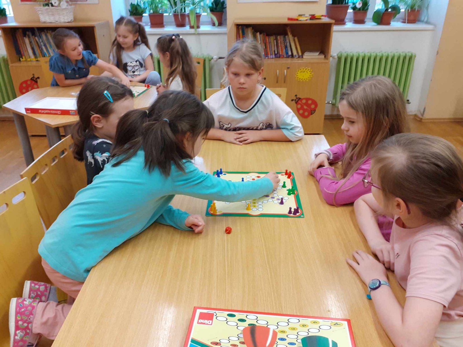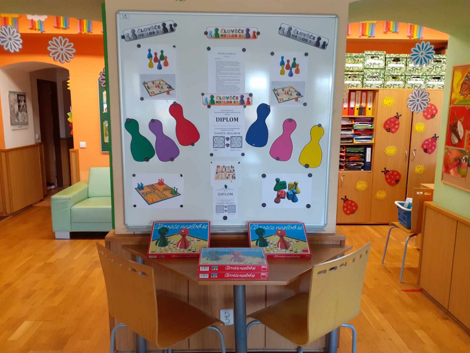 Snad nejoblíbenější, nejrozšířenější a nejpopulárnější u nás hraná deskovka se stala náplní pondělního odpoledne dětem v naší školní družině. Hra, kterou mohou hrát dva, tři i čtyři hráči, ale v různých modifikacích herního pole může hrát i hráčů více, je jednou z nejstarších společenských her vůbec. Člověče, nezlob se, je snad nejhranější stolní hra u nás. Svůj prapůvod má v Indii. Do Evropy se dostala prý až v 19. století a u nás nabyla rozmachu až za první republiky po roce 1918. Tato legendární hra je nesmírně populární i mezi dětmi v naší školní družině. Proto jsme si připravili s dětmi celé herní odpoledne. Děti hrály na 6 herních polích, u každého herního pole se třemi, čtyřmi i pěti hráči. Nálada byla vynikající, nikdo se nezlobil, všichni účastníci brali hru jako nesmírnou zábavu. Padaly šestky, děti spěchaly se svými barevnými figurkami do domečků a nesmírně si hru užívaly. Už dnes se těšíme na další klání.