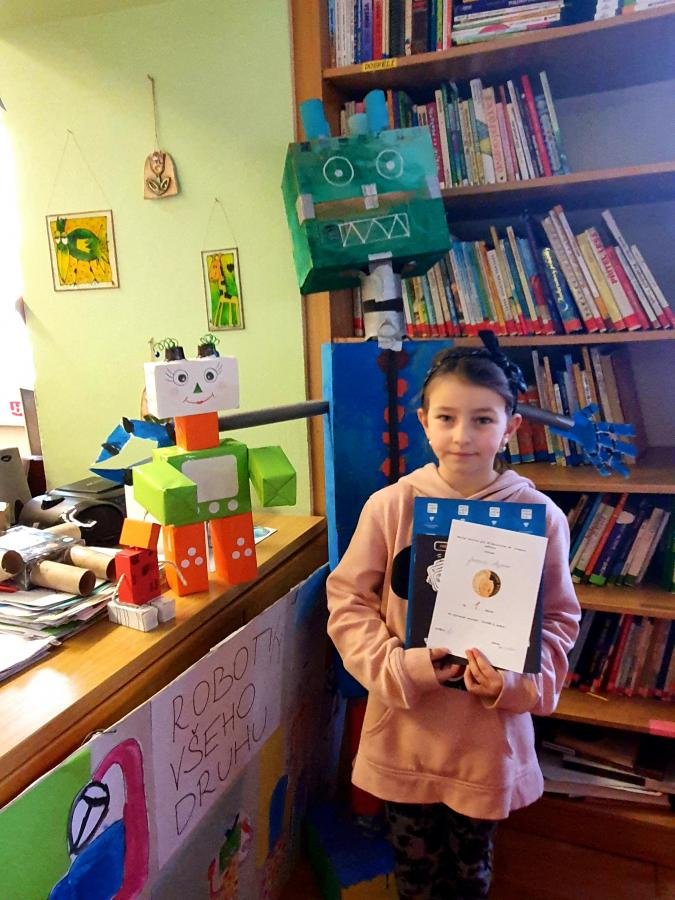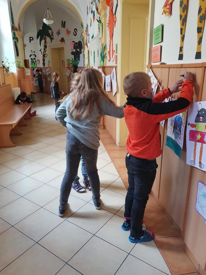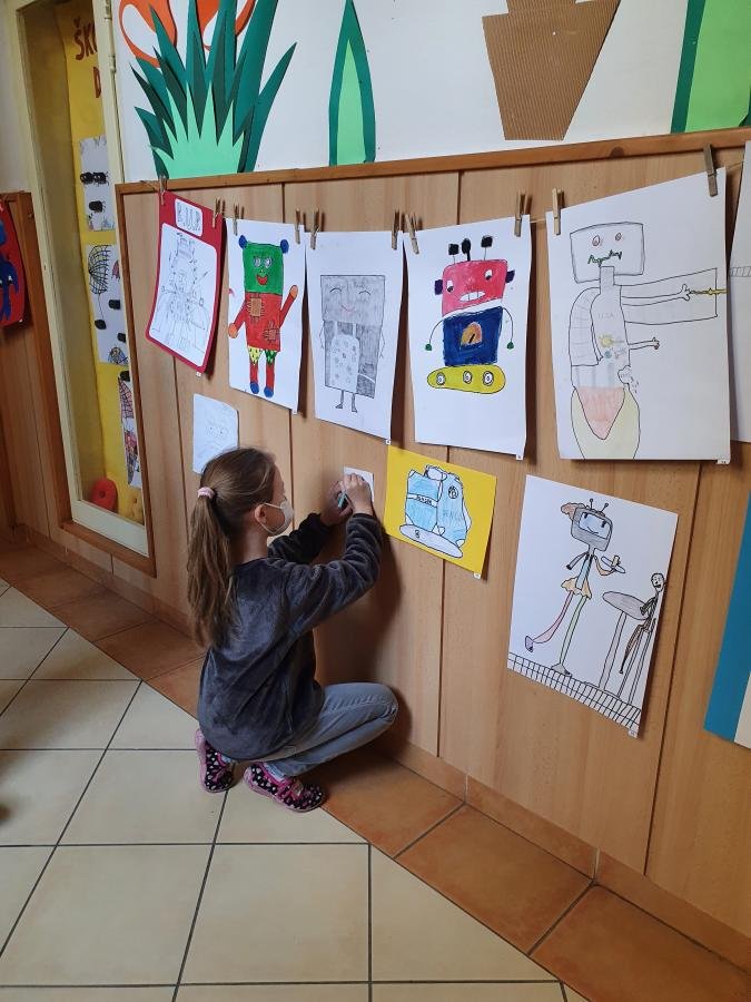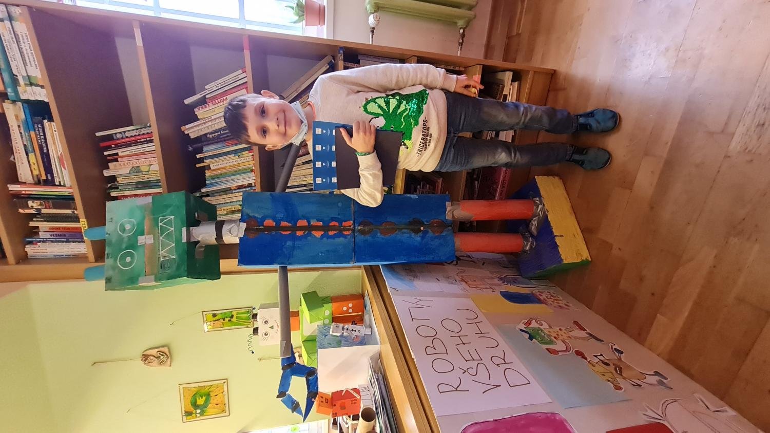 Týden od 17. do 21. ledna patřil v naší školní družině robotům. Povídali jsme si o tom, jak vlastně slovo robot vzniklo, jaké roboty známe z filmů a knížek, kteří „bydlí“ s námi v našich domácnostech a usnadňují nám každodenní život. Zejména jsme se ale připravovali na výstavu - děti kreslily a vyráběly modely robotů. Samotná výstava se uskutečnila na chodbách ve čtvrtek 20. ledna a byla skutečně barvitou přehlídkou dětských nápadů a fantazie. Nakonec byly oceněny ty nejlepší výtvory v kategorii 1., 2. a 3.-5. tříd. Děti si odnesly kromě diplomů i drobné dárečky s tematikou robotů.