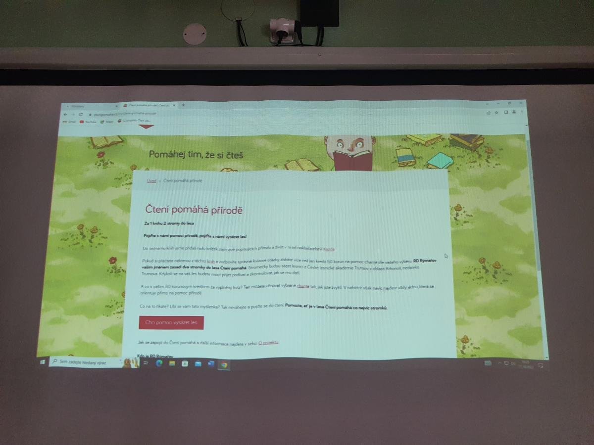 Zaujala nás také novinka – čtení pomáhá přírodě. Za jednu knihu 2 stromy do lesa. Pomůžeme přírodě, vysázíme les.