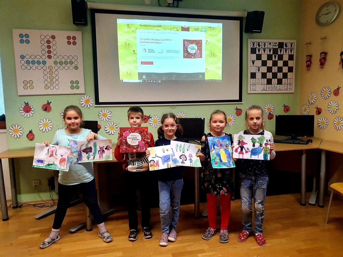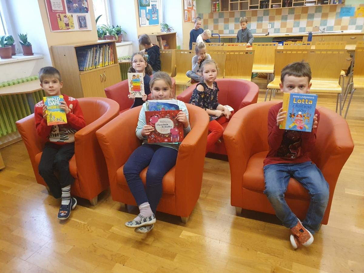 Děti a paní vychovatelky si v každém oddělení vyberou knihu z nabídky a společně ji přečtou. Některé děti si zahrají i na ilustrátory a namalují obrázek ke knize.