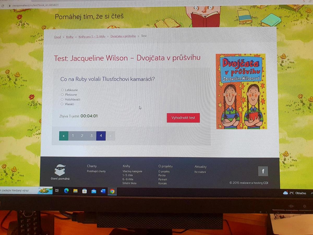 Pak se sejdeme v herně a zkusíme odpovědět správně na testové otázky v online testu, kde zjistíme, zda jsme knihu četli pozorně. Po úspěšném vyplnění testu získá oddělení kredit 50 Kč, který pak věnujeme společně na jeden z nominovaných projektů.