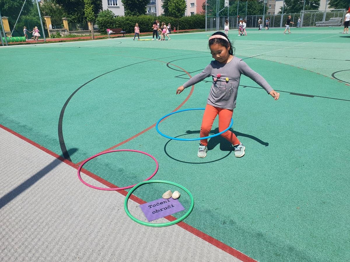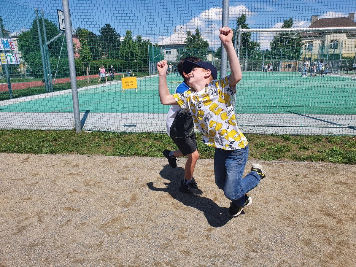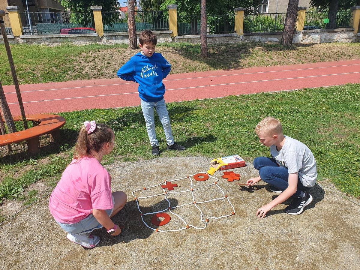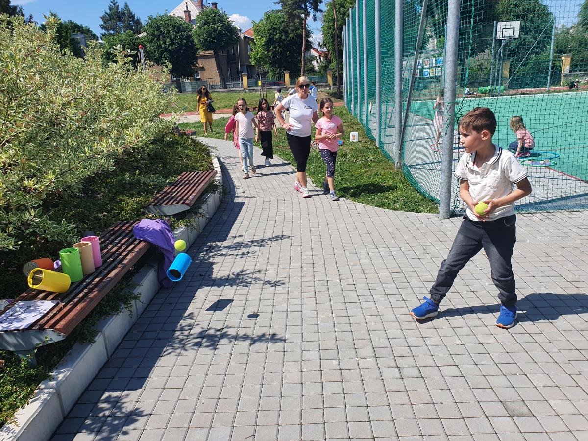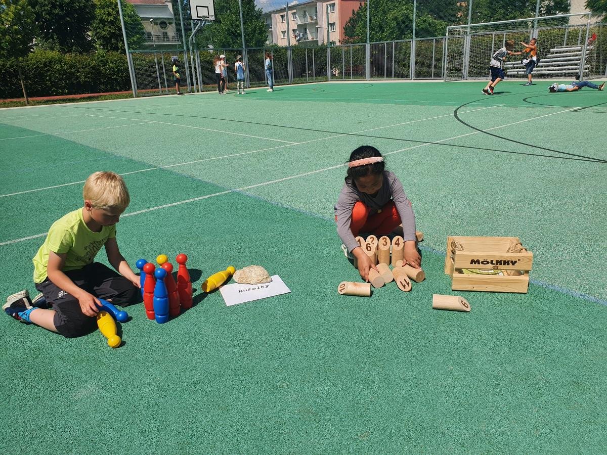Den dětí je zažitým dnem plným her, soutěží a sladkostí. Nejinak tomu bylo i v naší školní družině. Paní vychovatelky připravily na školním hřišti 25 zábavných stanovišť, děti nevěděly, kam dřív. Na kohoutí zápasy, k hladovému šaškovi, k neposlušným tkaničkám, na slalom v gumákách nebo s knihou na hlavě, zahrát si na slepou bábu, skákat přes švihadlo, porazit kuželky nebo plechovky, trefovat se do koše, točit kruhem, jít na foukanou, do tunelu nebo k padáku…? Zábavné bylo všechno. Kdo byl unavený, mohl i na piknik.