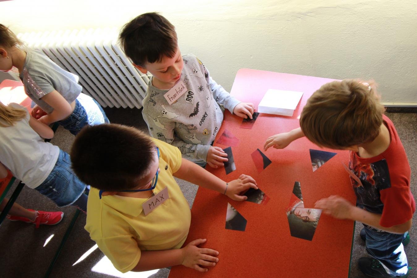 Nádherný hudební den byl v podstatě korunovací našeho měsíčního projektu v hudební výchově s mezioborovým vztahy čtení- matematika - prvouka - výtvarná výchova. První hodinu jsme si zopakovali druhy hudebních nástrojů, zahráli hudební pexeso. Přešli jsme do ZUŠ Na Vozovce, kde nás už čekala paní Rozkovcová a pan Topinka.