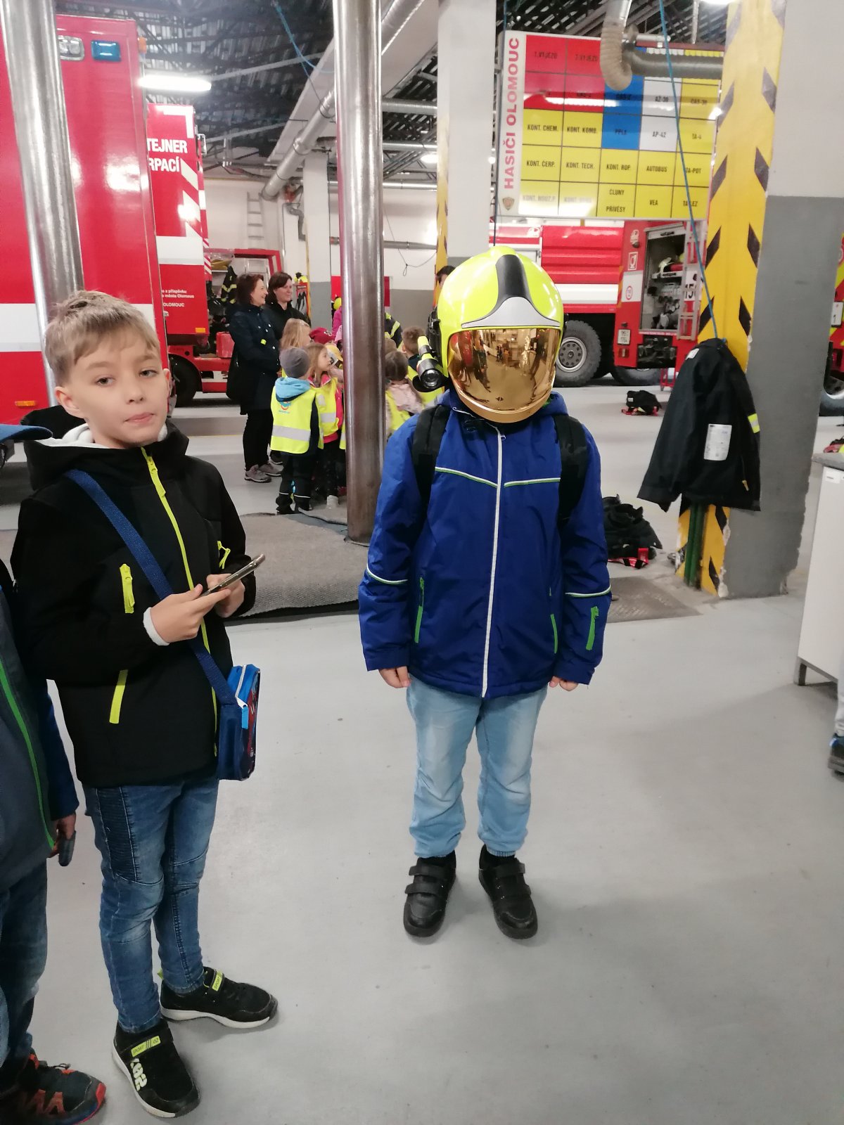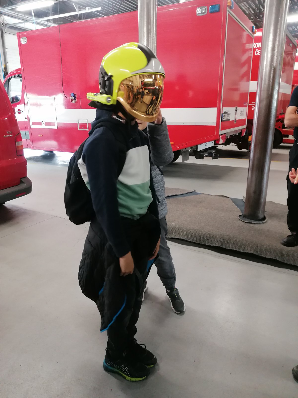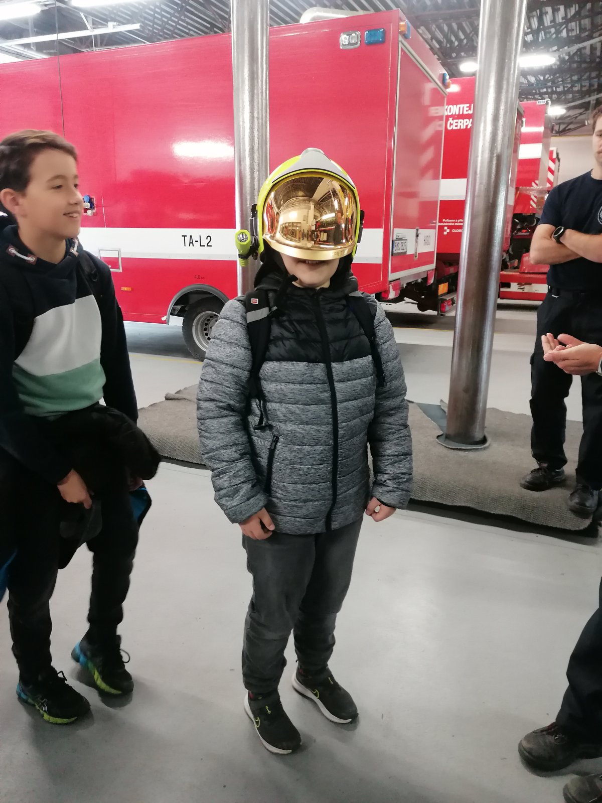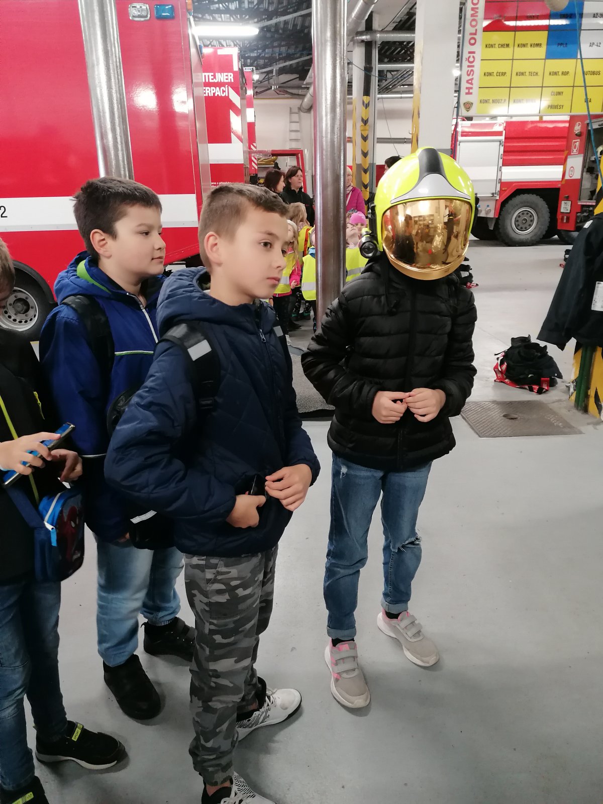 Po příchodu do HZS se nás ujal profesionální hasič, pan Zdeněk. Seznámil nás s celkovým chodem HZS, ukázal vybavení potřebné ke své profesi i všechny dopravní prostředky, kterých HZS využívá při svých zásazích. Na závěr si děti vyzkoušely přilbu, ochranný oblek a společně jsme se vyfotili na korbě hasičského auta.