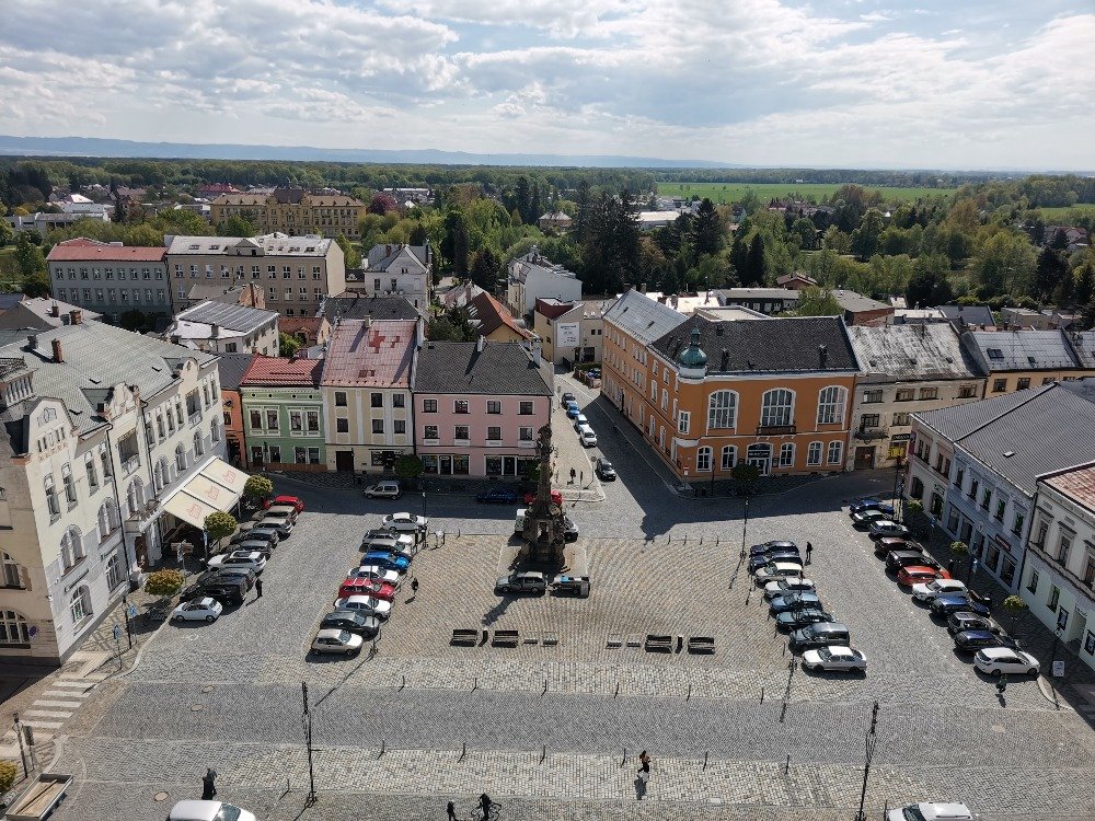Dalším místem, které nás přivítalo, byla věž radnice. Po náročném výstupu jsme si prohlédli komůrku pana ponocného na ochozu věže. O litovelské věži se říká, že je se svými 73 metry nejvyšší na Moravě, myslí se tím na řece Moravě. Přímo pod radniční věží totiž protéká rameno Moravy. Před radnicí se ještě na chvilku zvědavcům ukáže, pak tajně proteče pod náměstím. Děti pohledy z výšky na všechny světové strany uchvátily, byla velmi dobrá viditelnost a zážitek umocňovaly sluneční paprsky.
