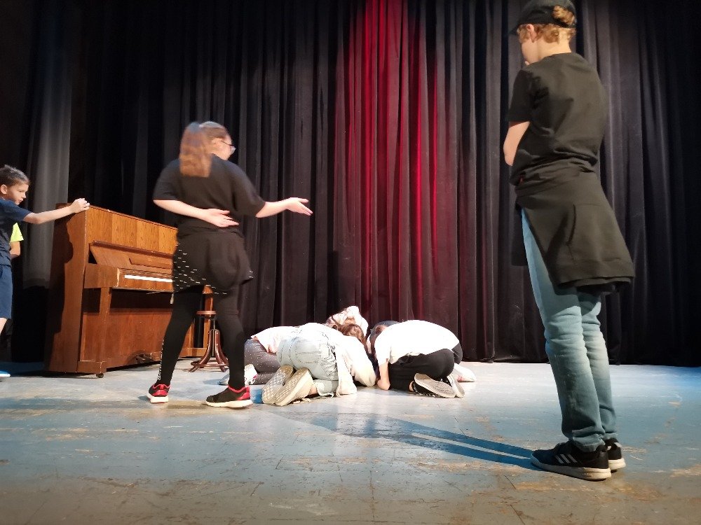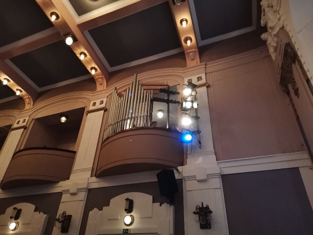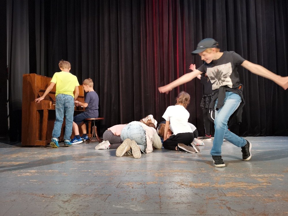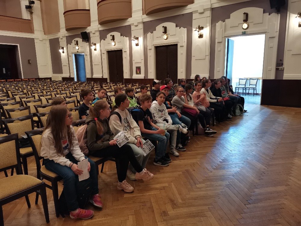 Třetím místem naší návštěvy byl divadelní sál. Děti si prohlédly všechna místa od šaten, jeviště, celé zákulisí, osvětlovací kabiny. Největším zážitkem ale byla možnost vystoupit na jevišti. A tak děti hrály na klavír, zpívaly, předvedly krátké scénky, vyprávěly vtipy. Úsměvy a dobrá nálada provázela celý den.