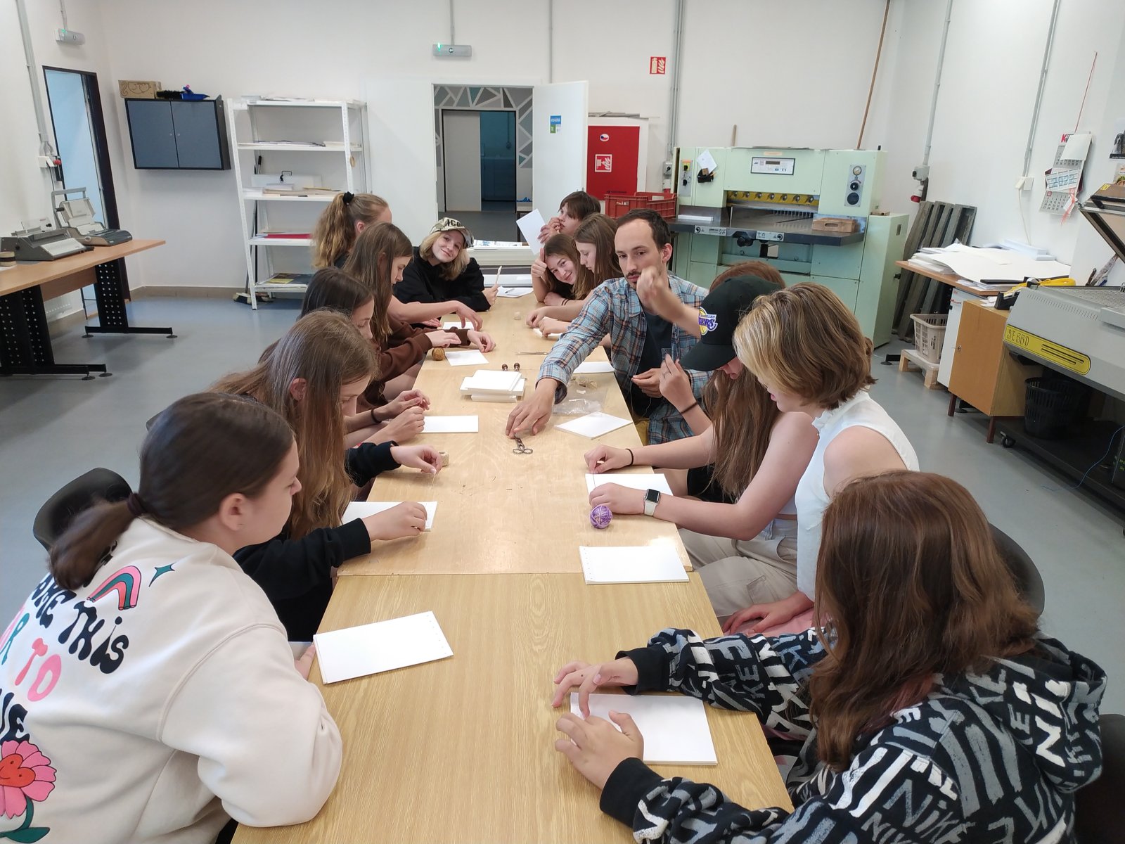 Žáci třídy 7. A měli návštěvu z firmy Železo Hranice, kde nám rodiče představili, jak funguje velkoobchod se železem, od výroby až po prodej odběratelům. V druhé části dne jsme navštívili SŠ polygrafickou v Olomouci. Žáci se seznámili s tiskařskými stroji a poté si na vlastní kůži vyzkoušeli ruční vazbu knih a fotografování ve fotoateliéru.