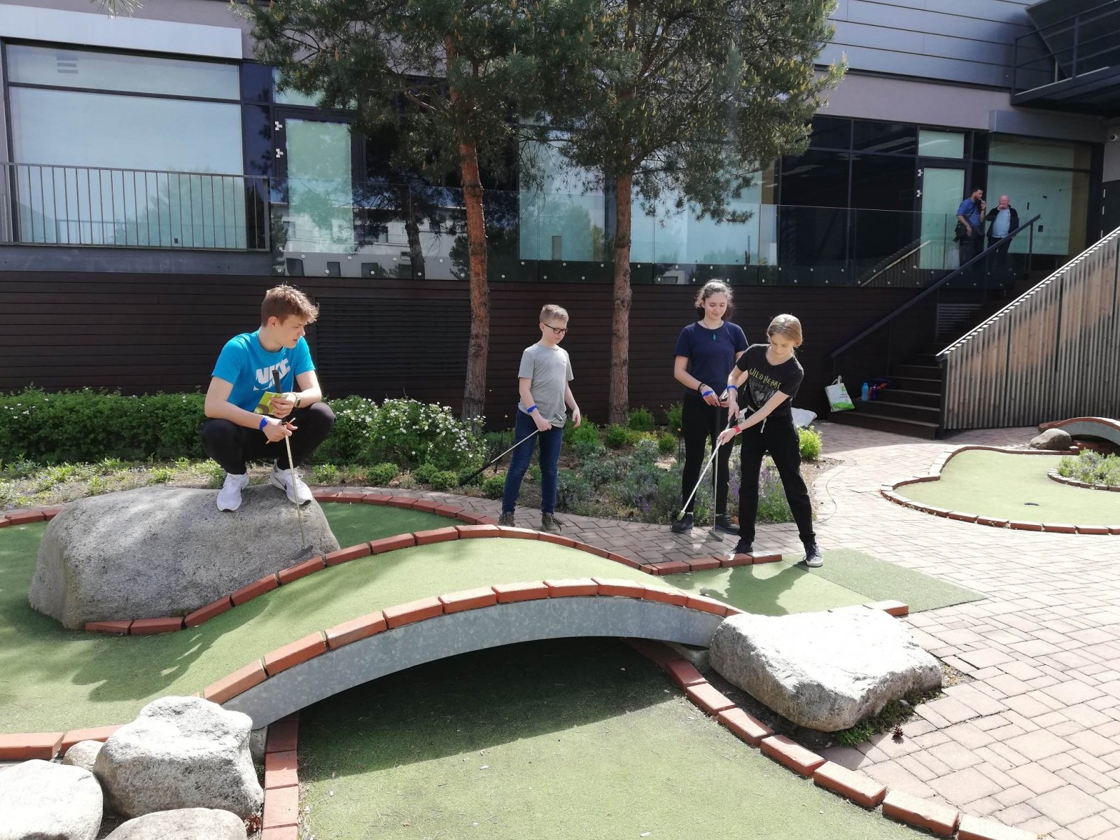 Po sladké besedě o včelkách jsme se přesunuli do sportovního centra Omega, kde na nás čekal pan Mgr. Miroslav Dvořák, Ph.D. Ten nás provedl celým areálem a vybral dvě aktivity – minigolf a taneční lekce na trampolínkách. Všichni se do cvičení pustili s velkým nasazením a odměnou jim byl nanuk.