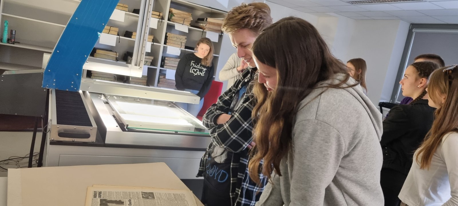 Ve čtvrtek 11. 5. 2023 měla třída 9. B možnost se podívat, jak vypadá běžný pracovní den ve Státní vědecké knihovně Olomouc, konkrétně v depozitáři Hejčín. Žáci si prohlédli depozitář knihovny, navštívili pracoviště digitalizace knih a restaurátorskou dílnu. V závěru jejich návštěvy je čekal rukodělný workshop v restaurátorské dílně pod vedením restaurátorky knih a starých tisků Marie Strnadové. Každý žák si tak mohl odnést vlastnoručně vyrobený deníček ve tvaru knížky.