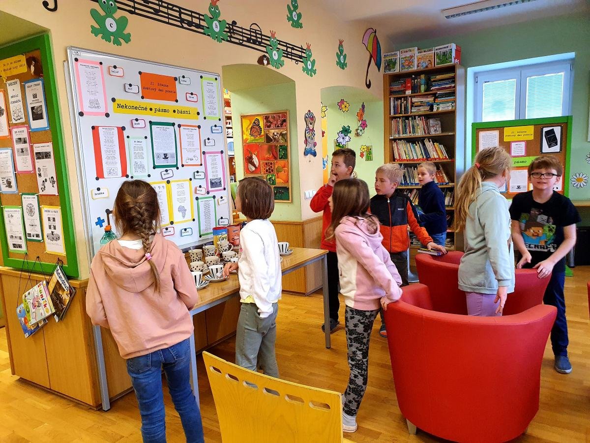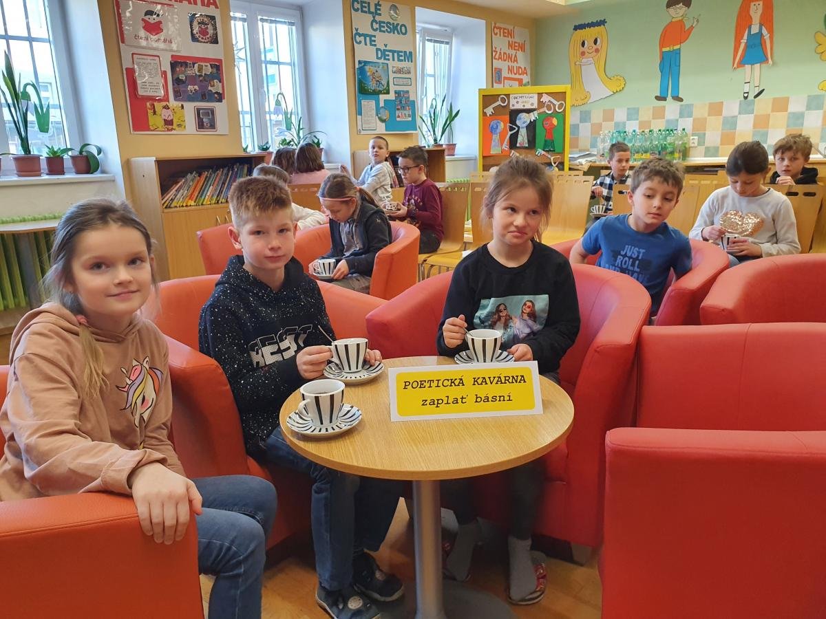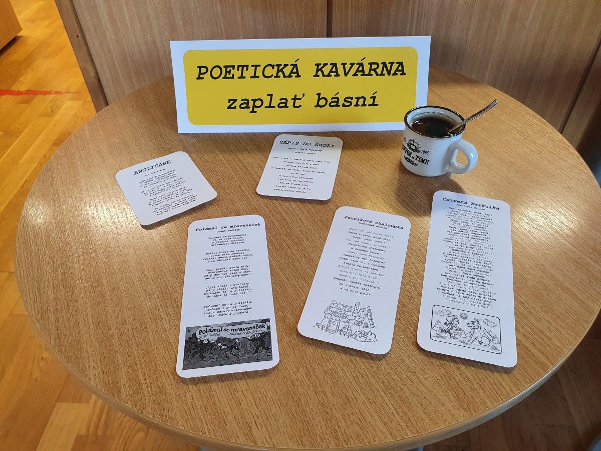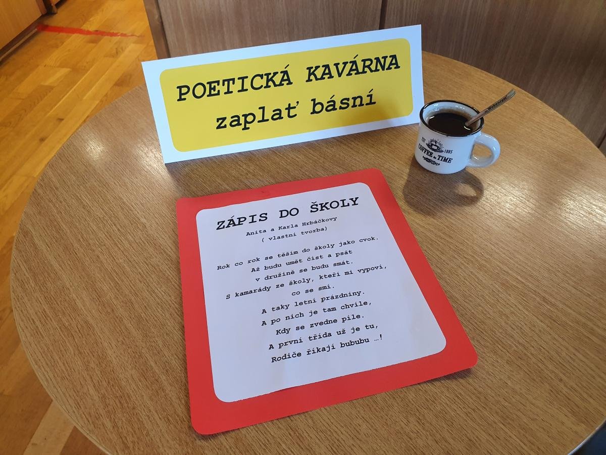 Oživením naší akce byla i rozšířená tradice ve světě uskutečňovaná právě na podporu poezie v knihovnách a kavárnách – přines svou báseň a zaplať básní. V herně se „káva" i sladkost také na závěr podávaly. Odpoledne bylo opravdu poetické.