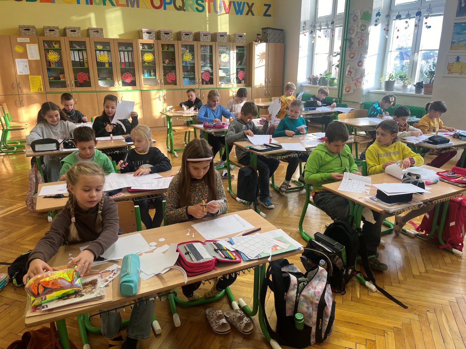 První dvě vyučovací hodiny trávily se svými třídními paními učitelkami v učebnách a věnovaly se matematice a českému jazyku. Všechny úkoly měly jednotné téma – stromy. Náplň hodin byla zpestřena i zajímavostmi a doplněna o nové poznatky.