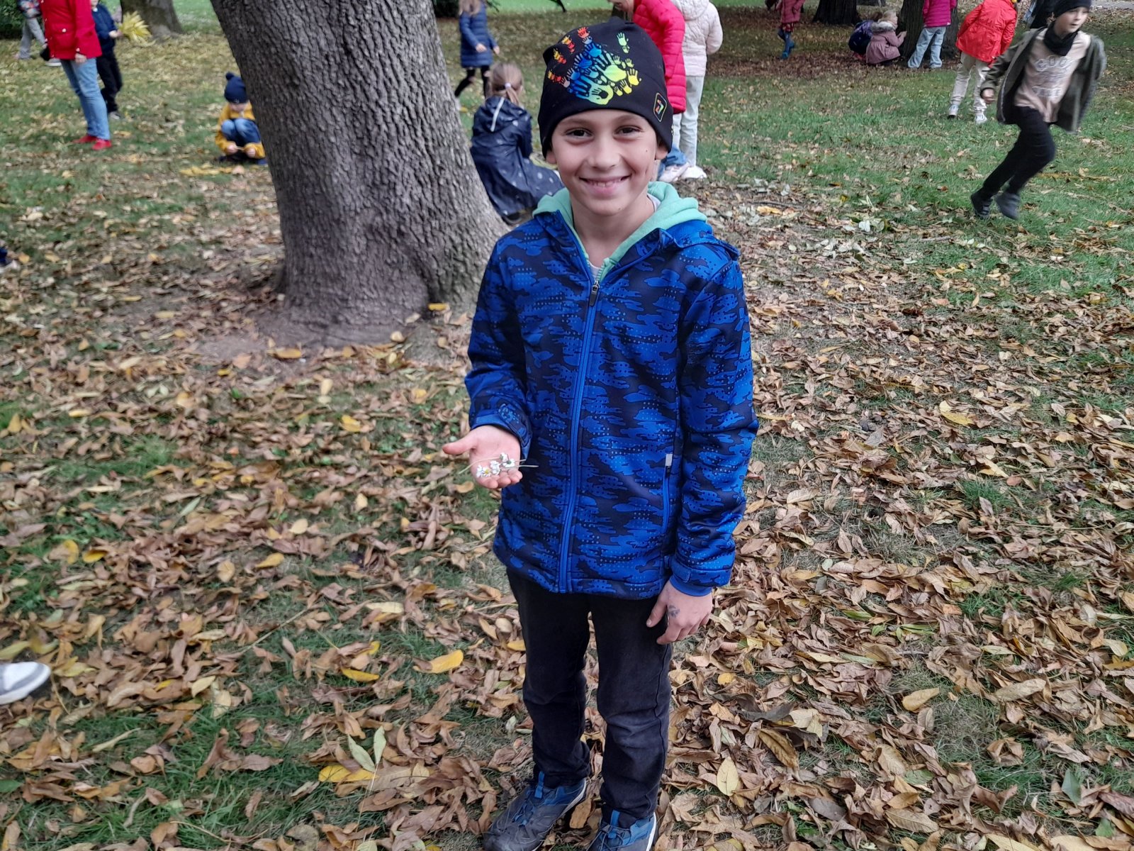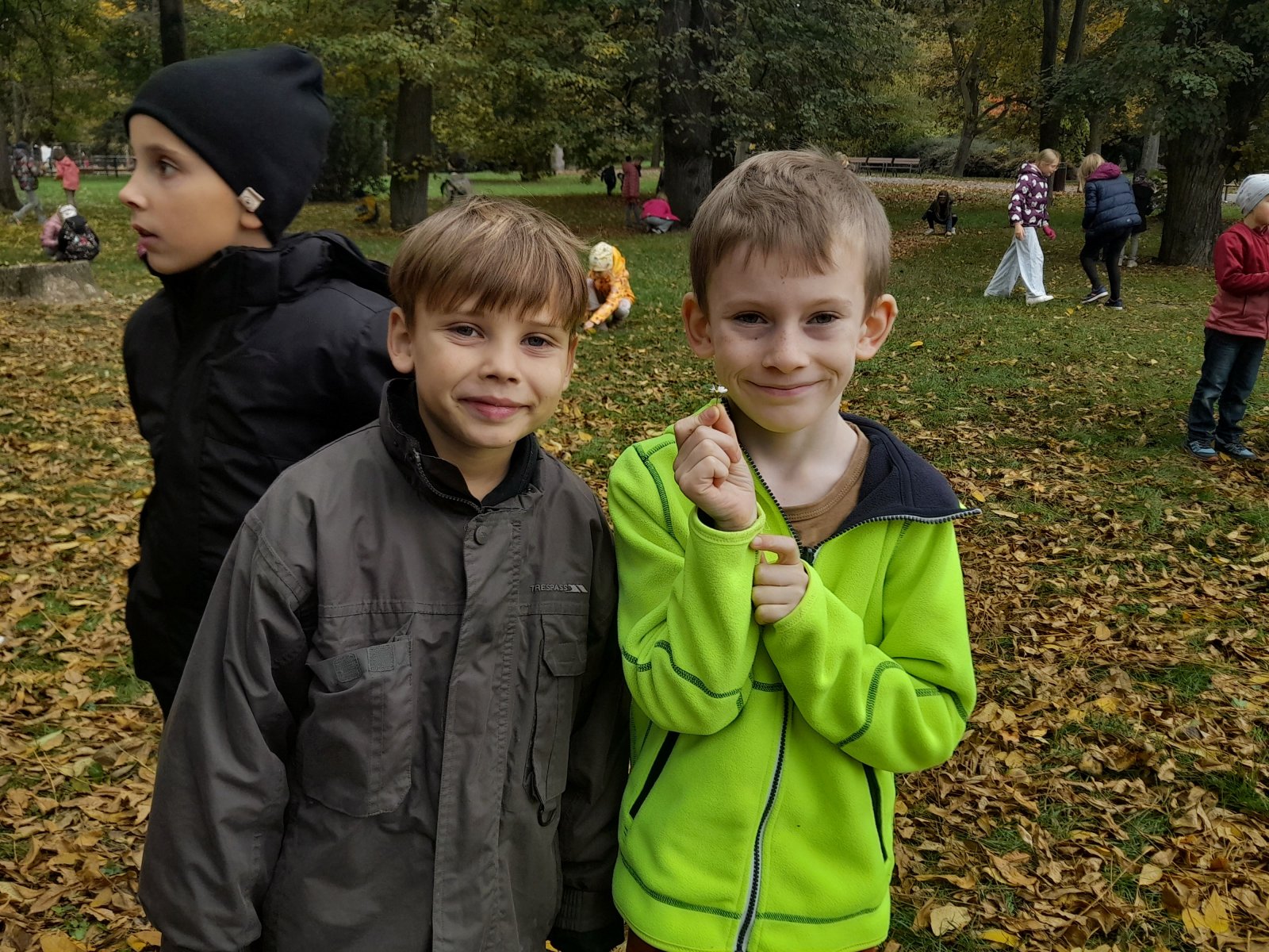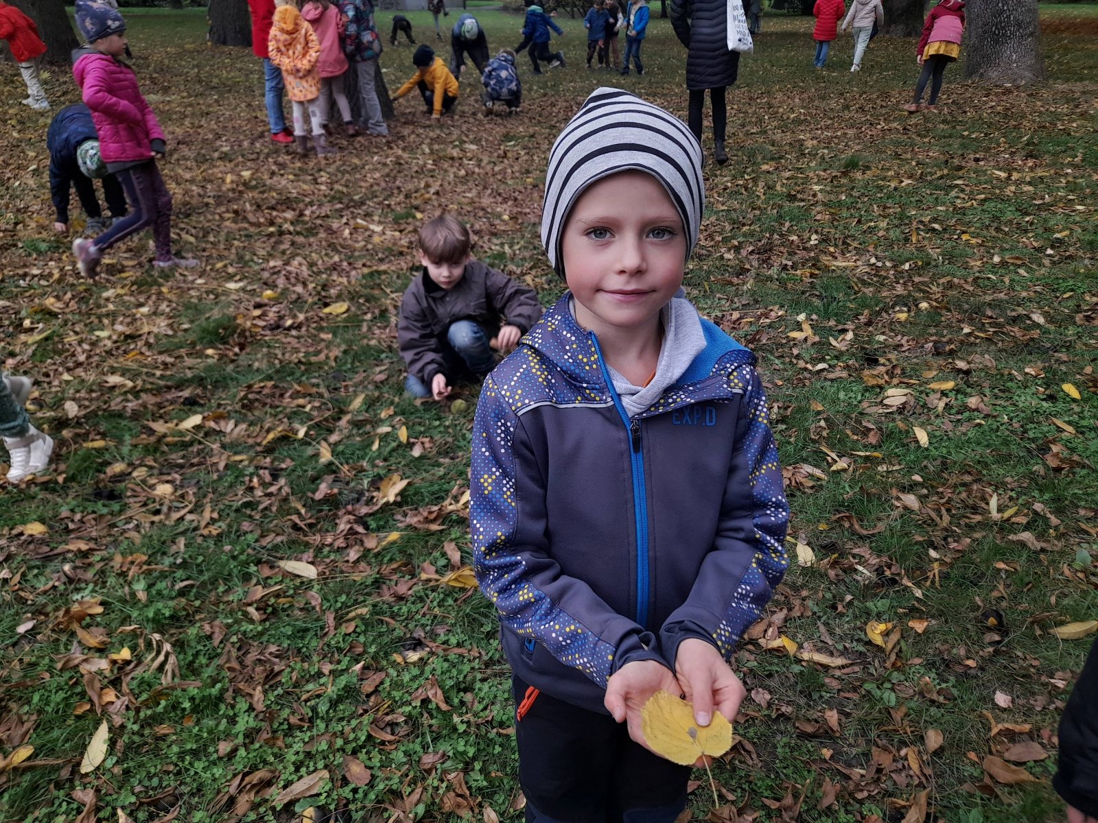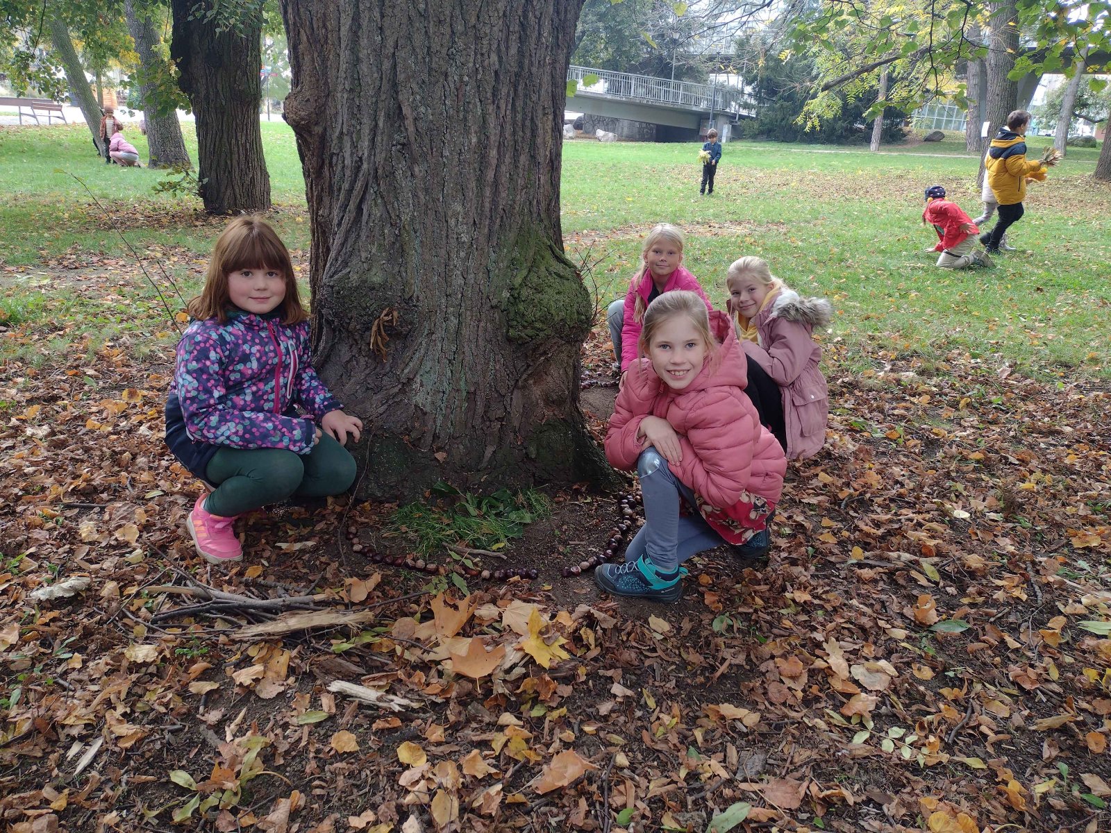 S dětmi jsme se také v úterý 22. října vydali do parku a vyzkoušeli jsme si, že nám je pod stromy a mezi stromy dobře. Děti si mohly zbystřit smysly při hledání přírodnin, zaposlouchali jsme se do zvuků v okolí a pošeptali stromům svá tajná přání. Z přírodnin si děti vyzkoušely sestavit obrázek podle vlastní fantazie, barevný podzim nám k tomu nabídl spoustu materiálu.