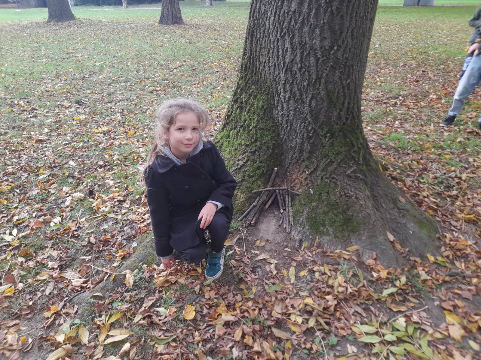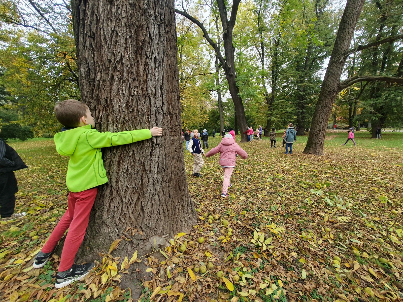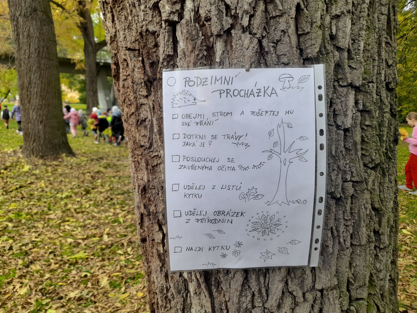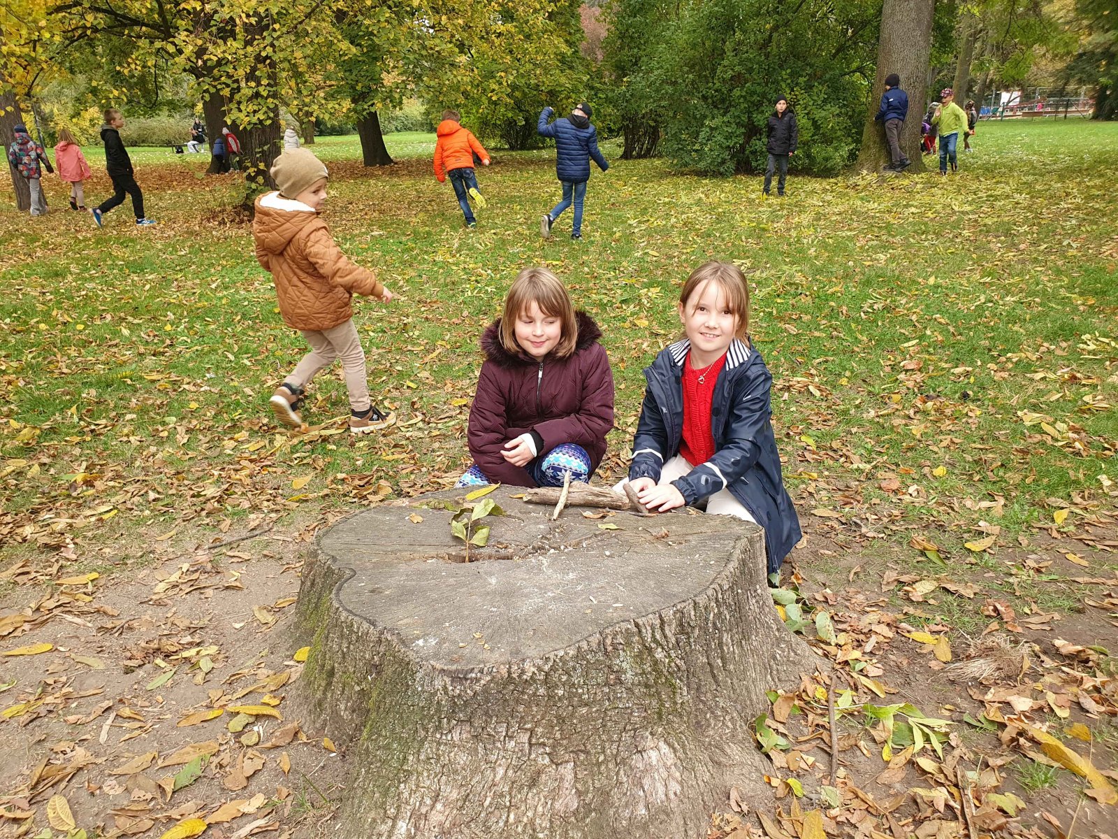 S dětmi jsme se také v úterý 22. října vydali do parku a vyzkoušeli jsme si, že nám je pod stromy a mezi stromy dobře. Děti si mohly zbystřit smysly při hledání přírodnin, zaposlouchali jsme se do zvuků v okolí a pošeptali stromům svá tajná přání. Z přírodnin si děti vyzkoušely sestavit obrázek podle vlastní fantazie, barevný podzim nám k tomu nabídl spoustu materiálu.