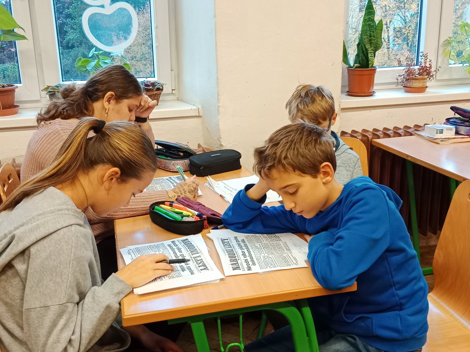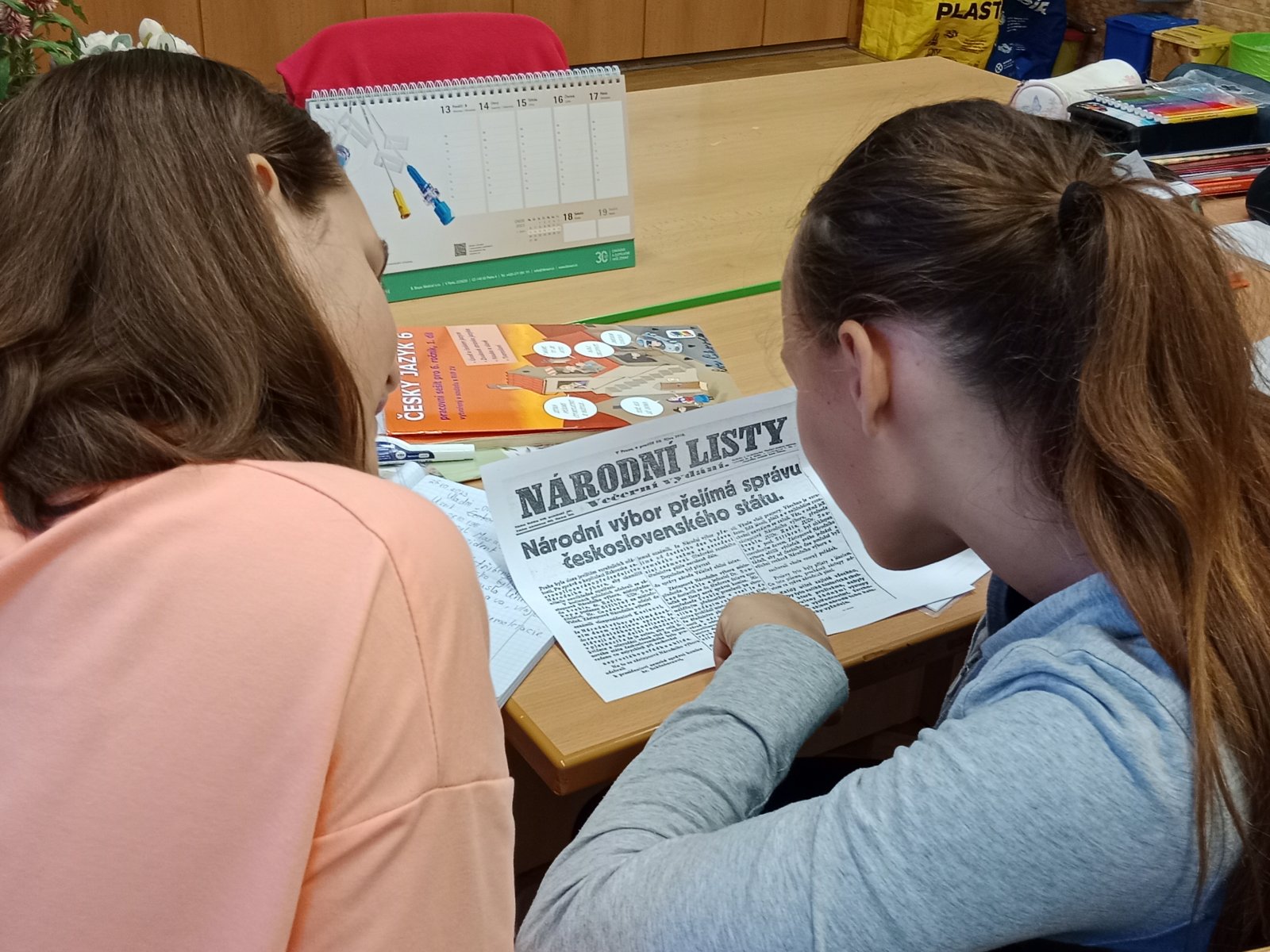 Stalo se již dobrou tradicí, že si před státními svátky a s nimi souvisejícími dny volna připomínáme jejich význam. Nejinak tomu bylo i před 28. říjnem. V hodinách prvouky a vlastivědy na 1. stupni se žáci s tímto dnem seznamovali formou pracovních listů. Žáci na 2. stupni se nově touto událostí zabývali v hodinách českého jazyka formou práce s textem, snažili jsme se totiž o propojení dějepisu a čtenářství – žáci četli novinové texty z roku 1918 i reportáže se současnými pohledy na vznik ČSR, fiktivní deníkové záznamy a dále s nimi pracovali.
