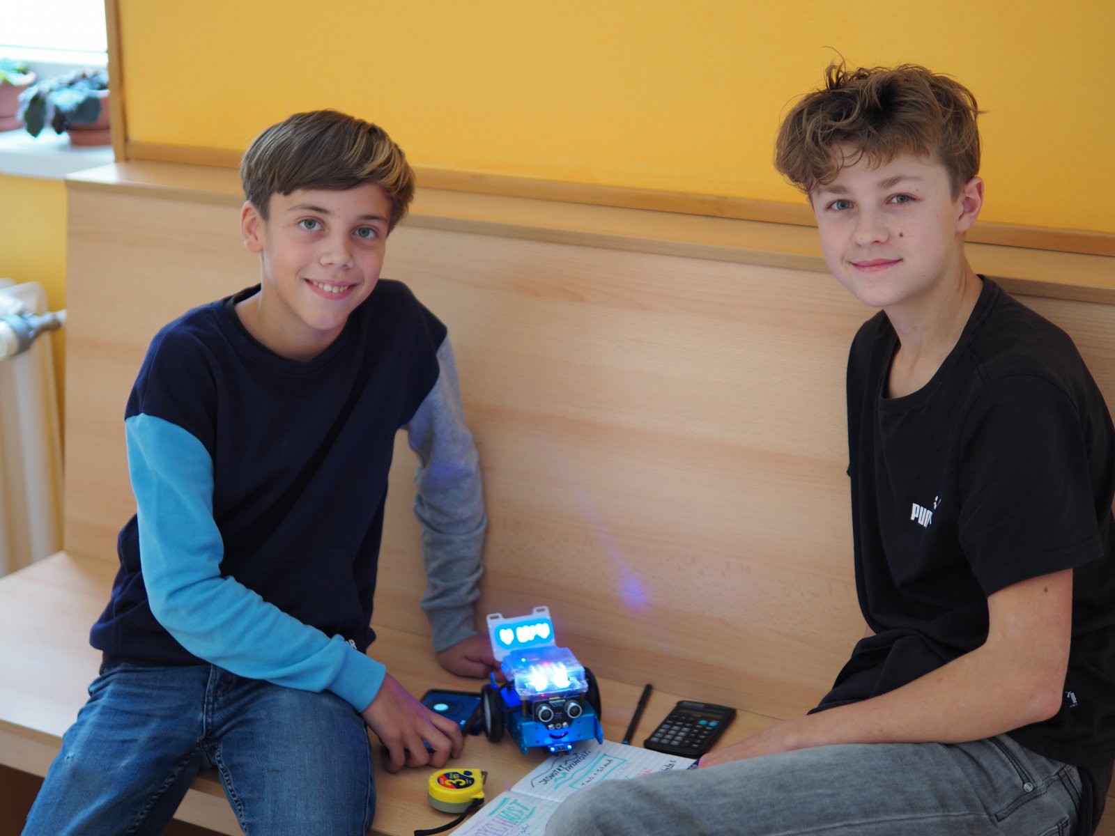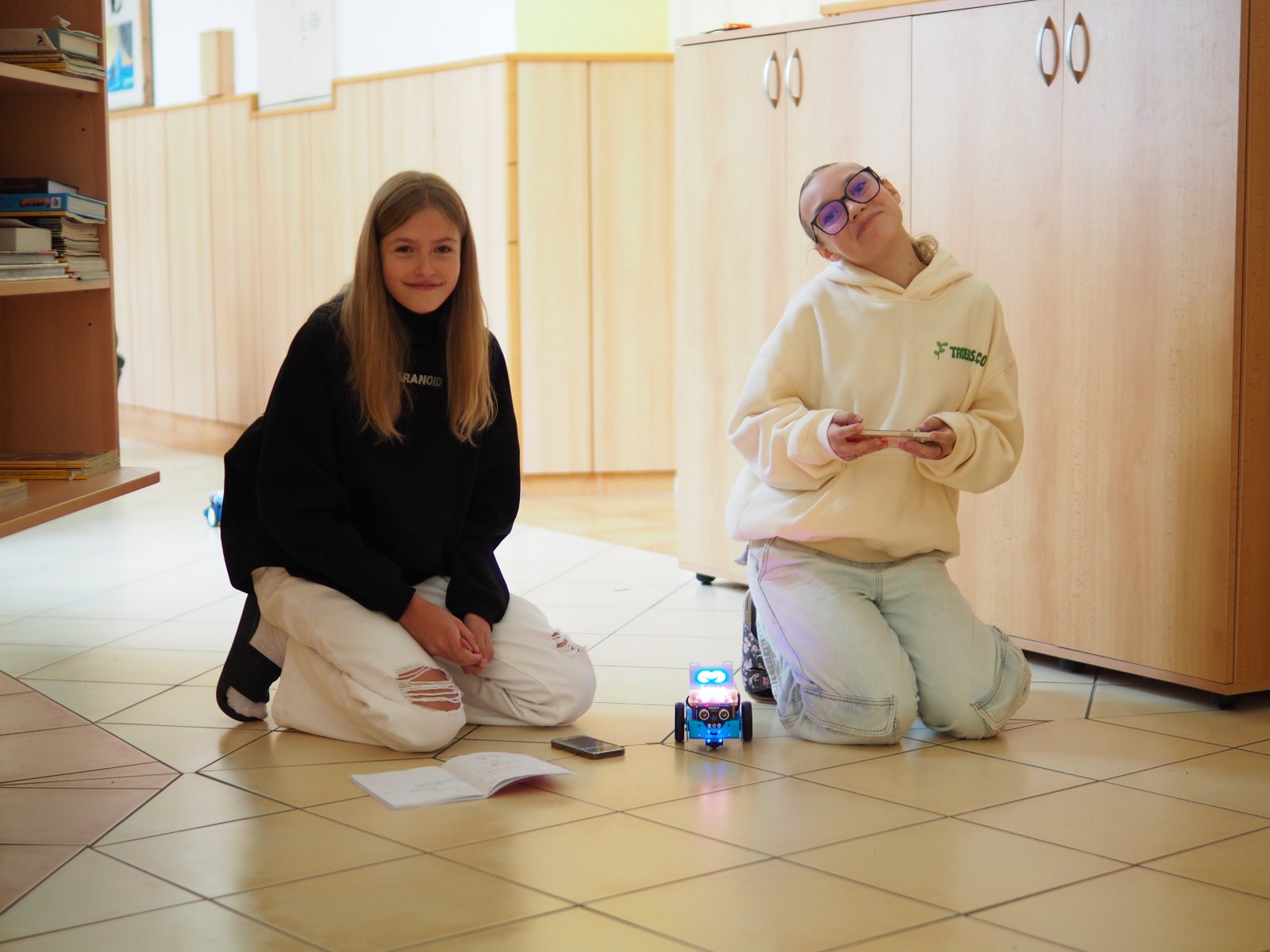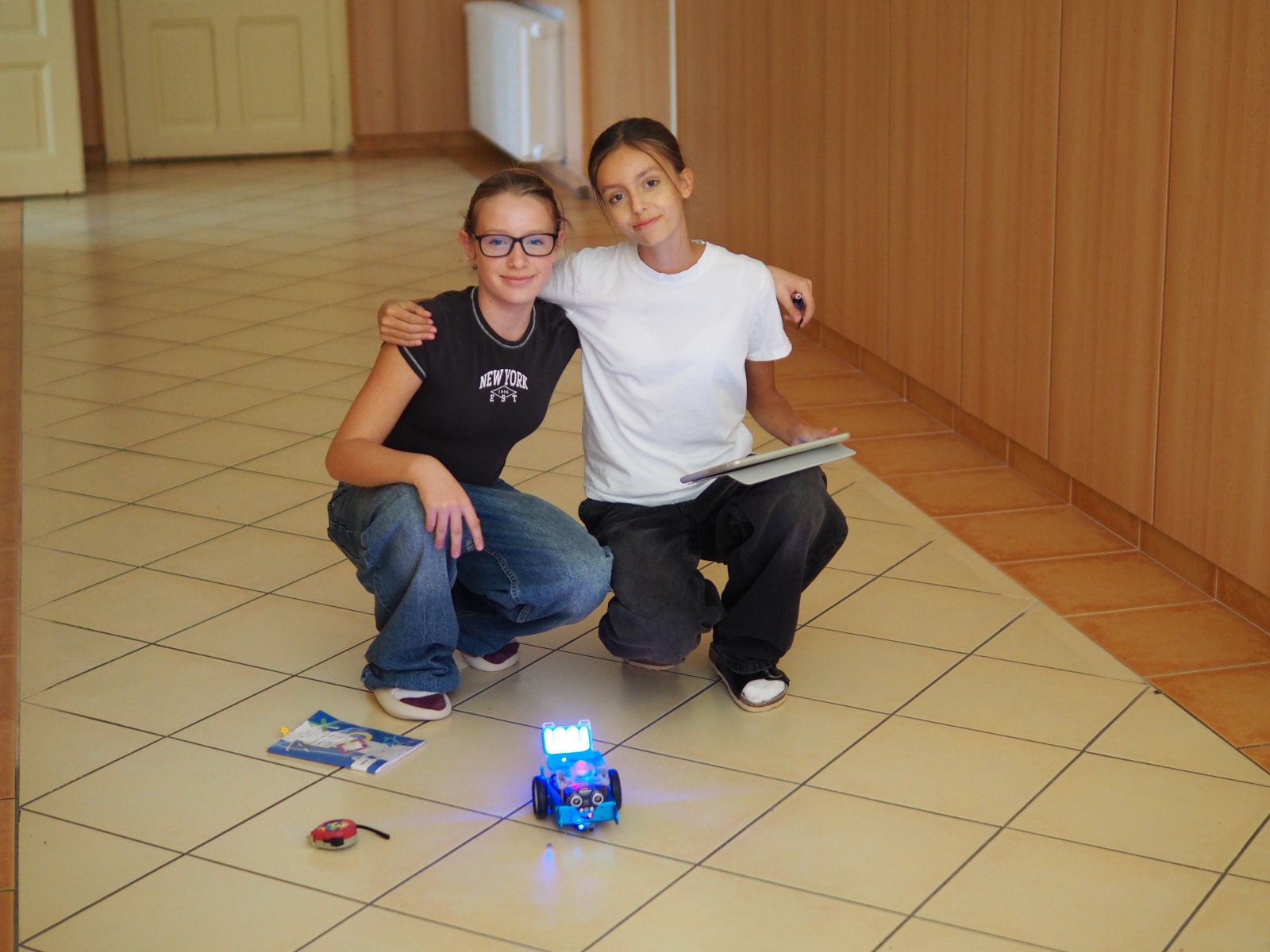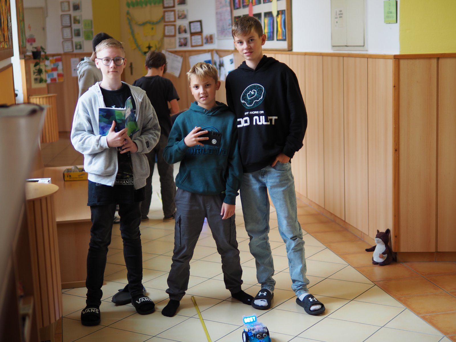 Dráha za čas. Tak zněla nápověda pro naše žáky 7. ročníku, kteří měli za úkol zjistit rychlost oblíbeného mBota. Na chodbě si každá dvojice žáků vymezila svoji dráhu, změřila čas a z naměřených hodnot vypočítala rychlost.