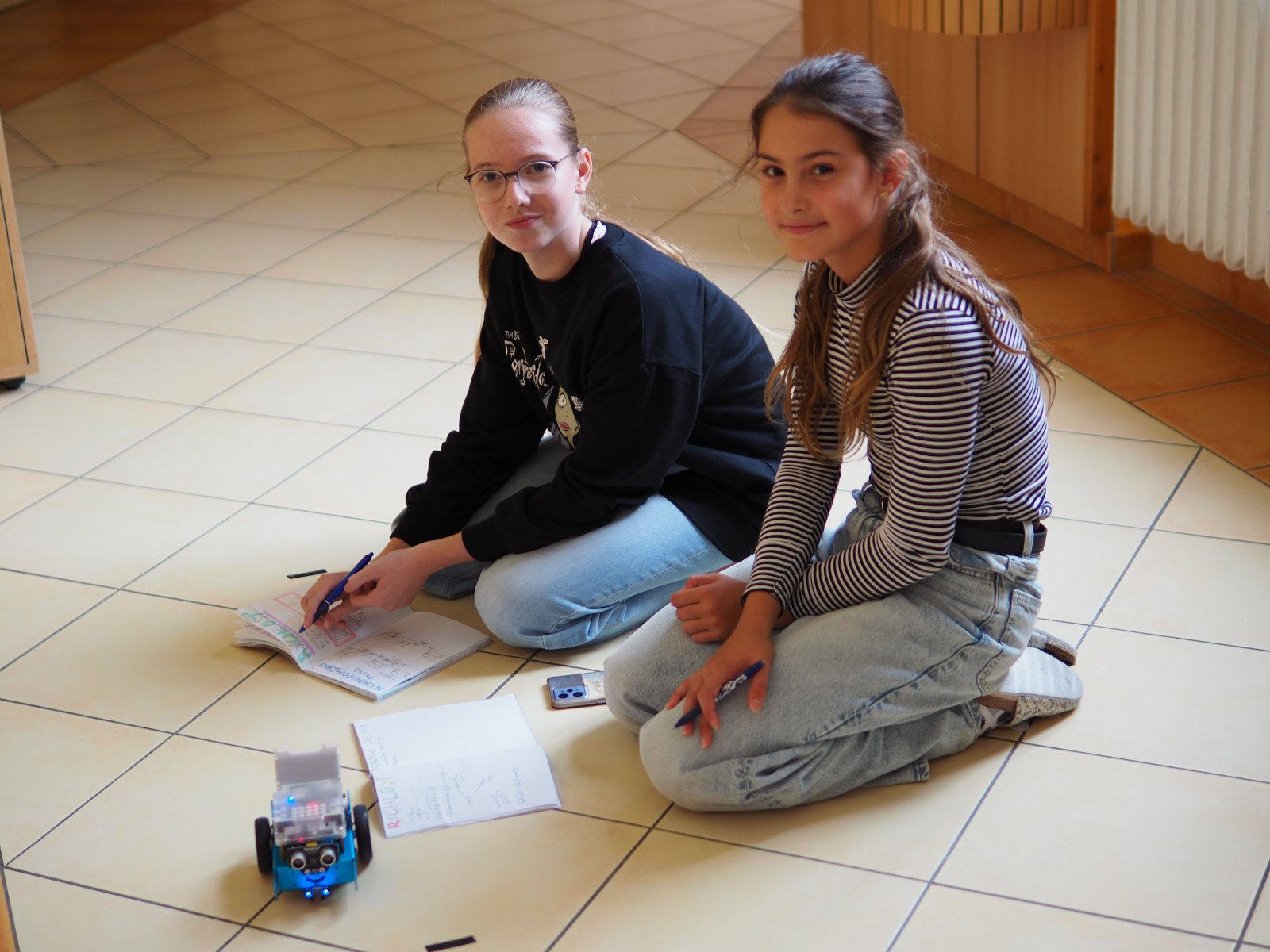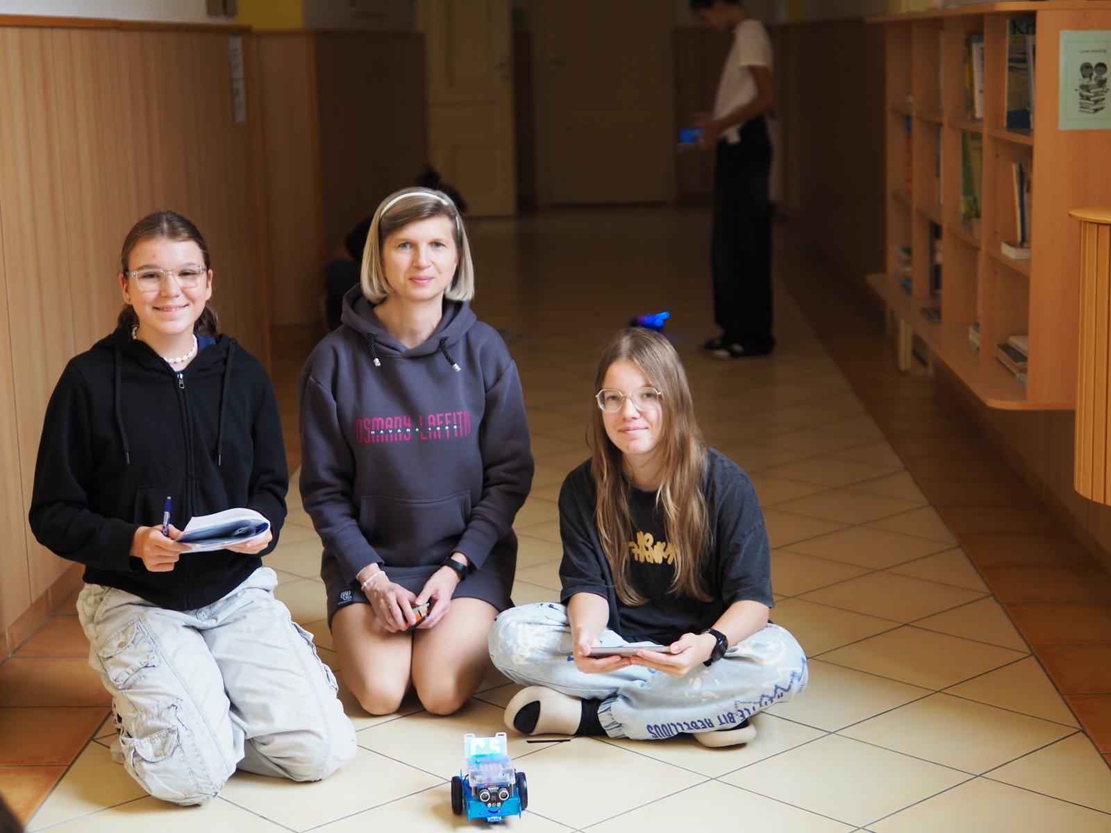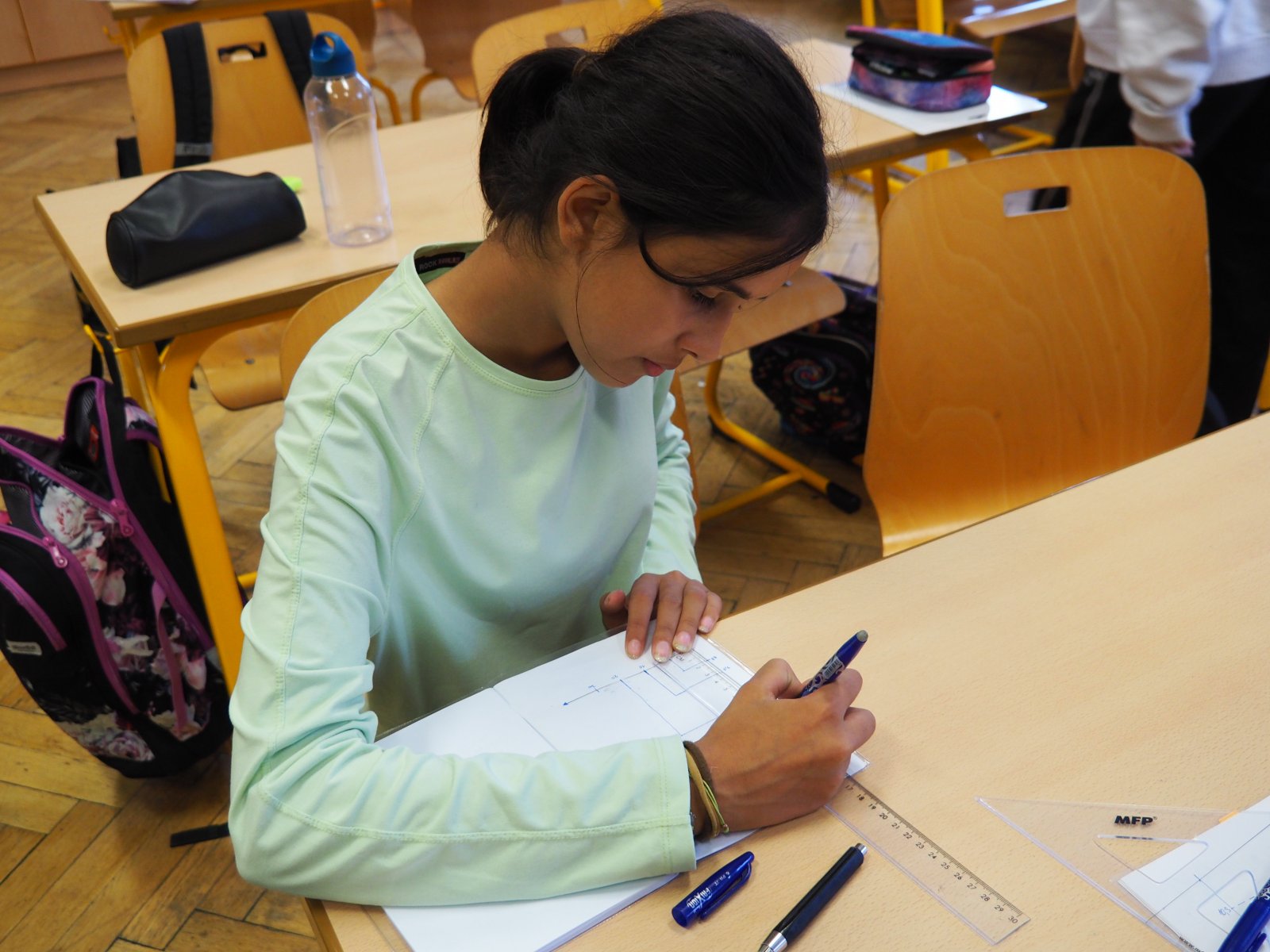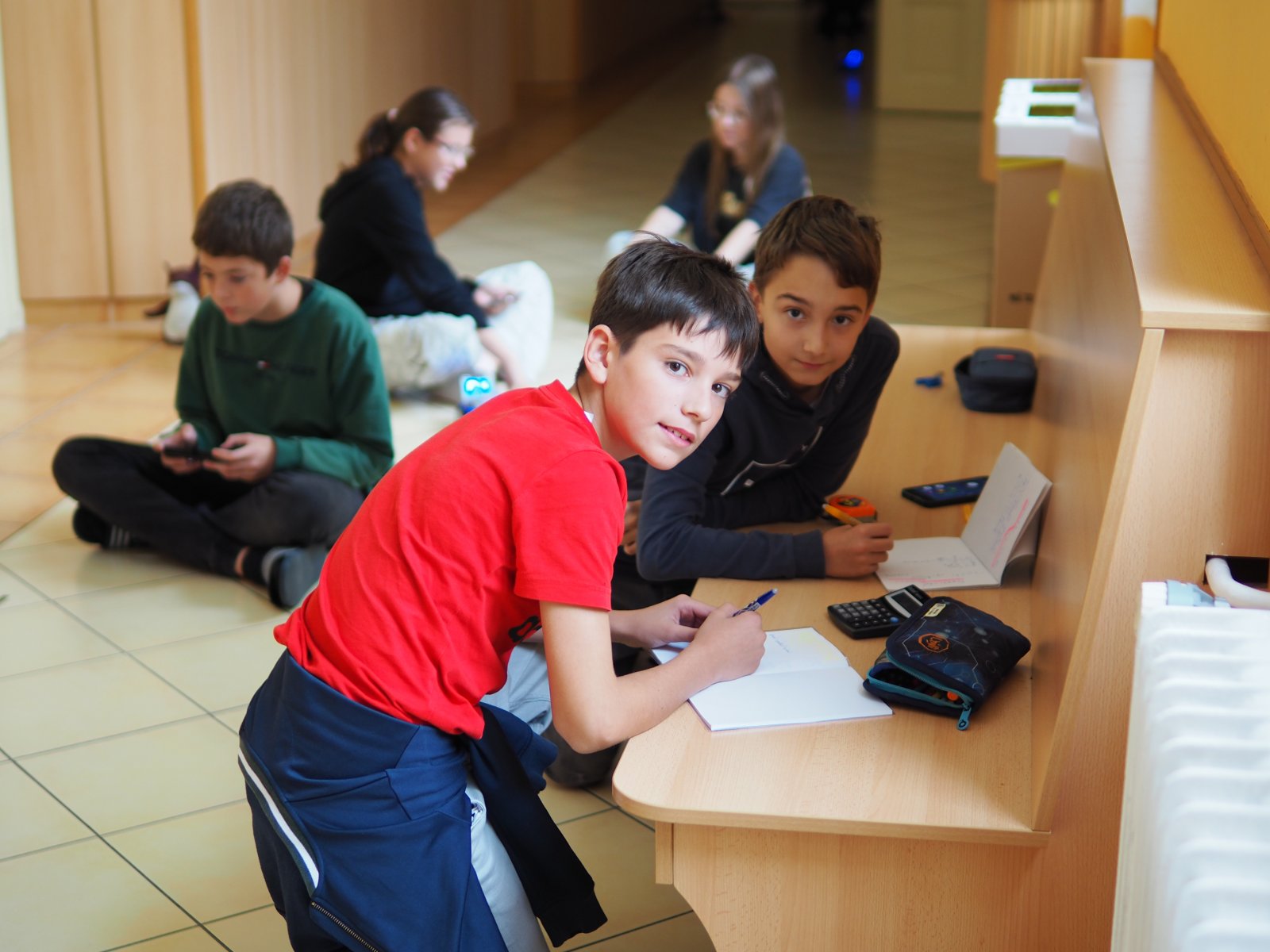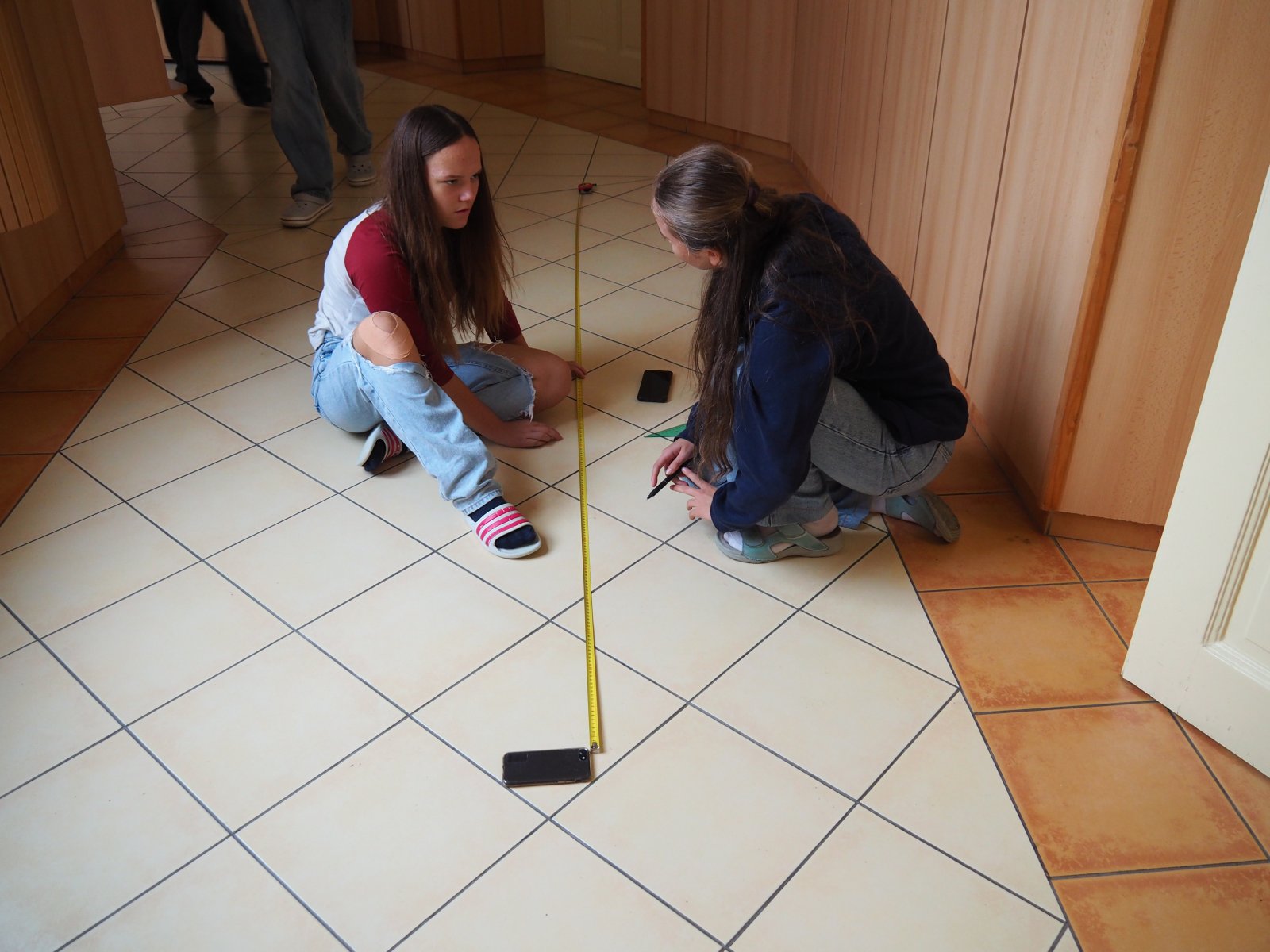 Dráha za čas. Tak zněla nápověda pro naše žáky 7. ročníku, kteří měli za úkol zjistit rychlost oblíbeného mBota. Na chodbě si každá dvojice žáků vymezila svoji dráhu, změřila čas a z naměřených hodnot vypočítala rychlost.