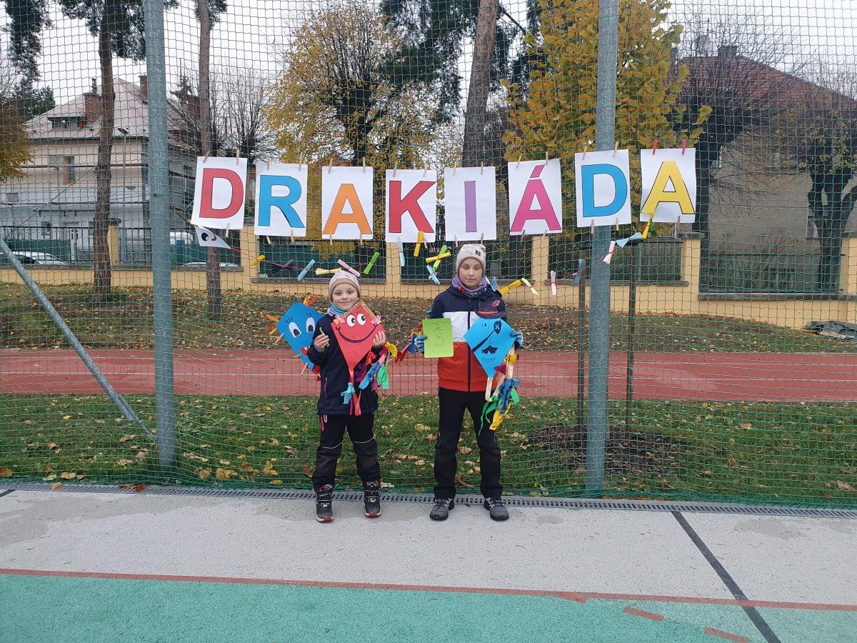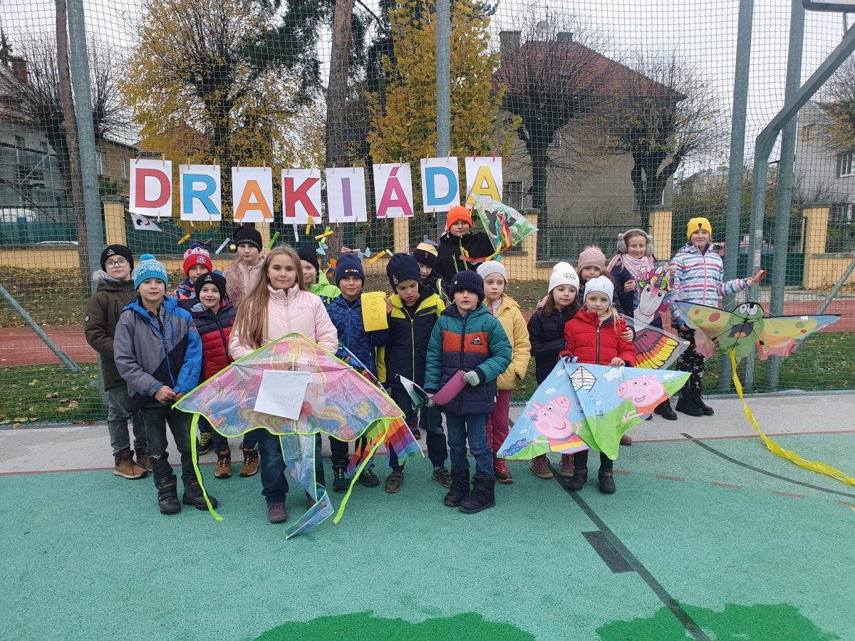 Na konci listopadu jsme uspořádali v naší školní družině tradiční podzimní akci pro děti, kterou je drakiáda. Děti si z domu donesly draky různých velikostí a tvarů, některé i vlastnoručně vyrobené. Vítr nám letos moc nepřál, ale i tak jsme si drakiádu moc užili. Všechny účastníky čekala sladká odměna a také zasloužený diplom. Oceněny byly i děti, které donesly největšího, nejmenšího, nejdelšího a nejoriginálnějšího draka.