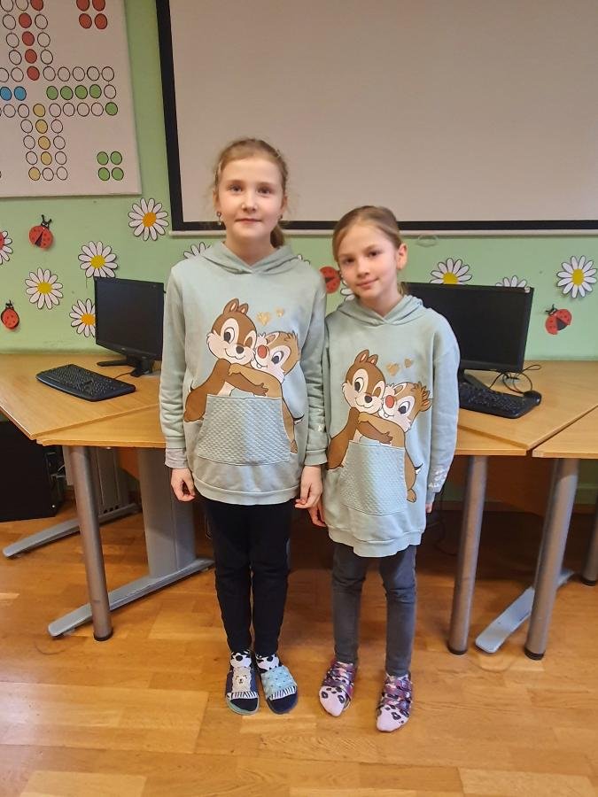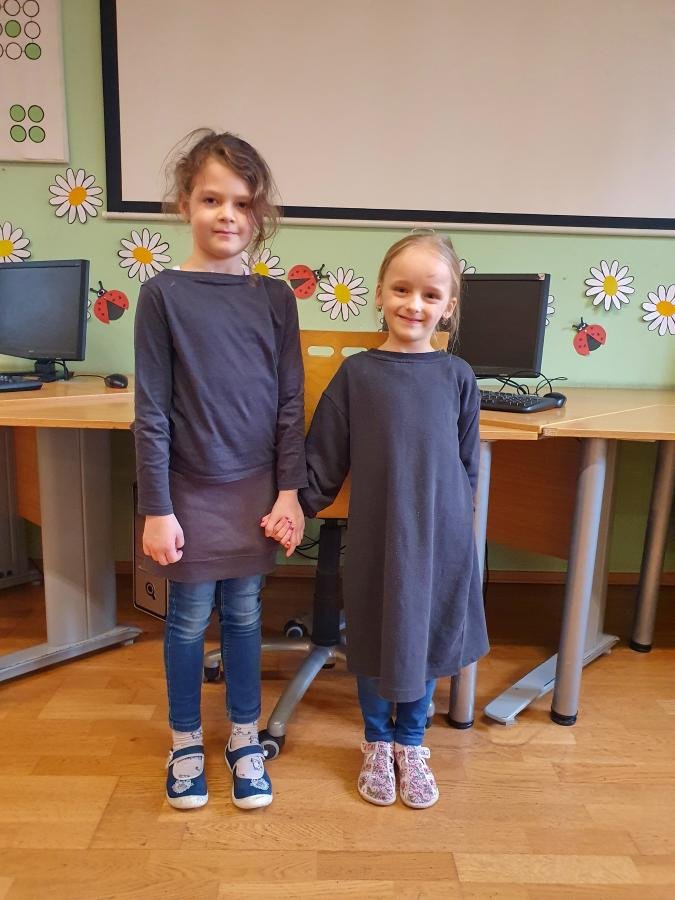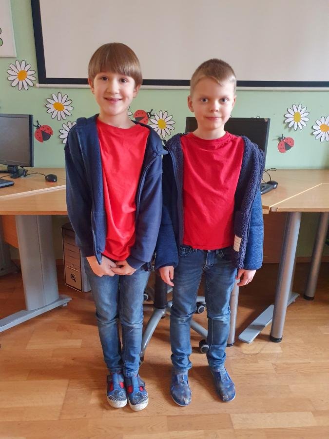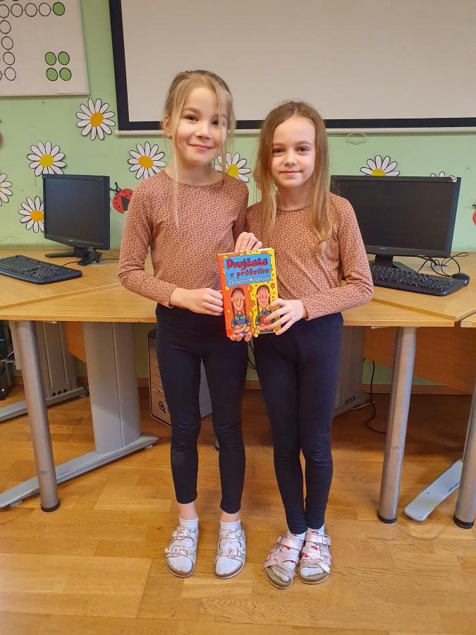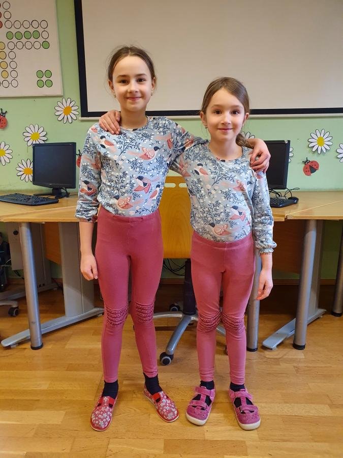Kniha Dvojčata v průšvihu s hlavními postavami Ruby a Garnet, kterou jsme ve školní družině četli, nás inspirovala. Děti si také chtěly vyzkoušet, jaké to je, když se sobě navzájem budou hodně podobat. Prostřednictvím interaktivní tabule jsme se seznámili s dvojčaty ze světa filmu, sportu i umění (zakladatelé Říma - Romulus a Remus, zpěvačky Iveta a Ivana Bartošovy, hokejisté Henrik a Joe Lundgvistové, Oliver a James Phelpsovi – herci ze série filmů o Harrym Potterovi …)