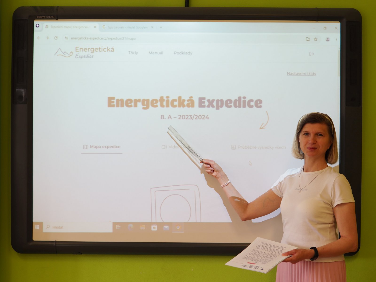 Ve středu 12. června došli žáci 8. A do cíle Energetické expedice. Po cestě se naučili porovnat energetickou náročnost různých spotřebičů, spočítat průměrnou roční spotřebu elektrické energie své navržené domácnosti, odhadnout kolik zaplatí čtyřčlenná rodina v běžném bytě 3+1 v ročním vyúčtování za elektřinu a vyhodnotit kroky, které povedou ke snížení spotřeby energie.