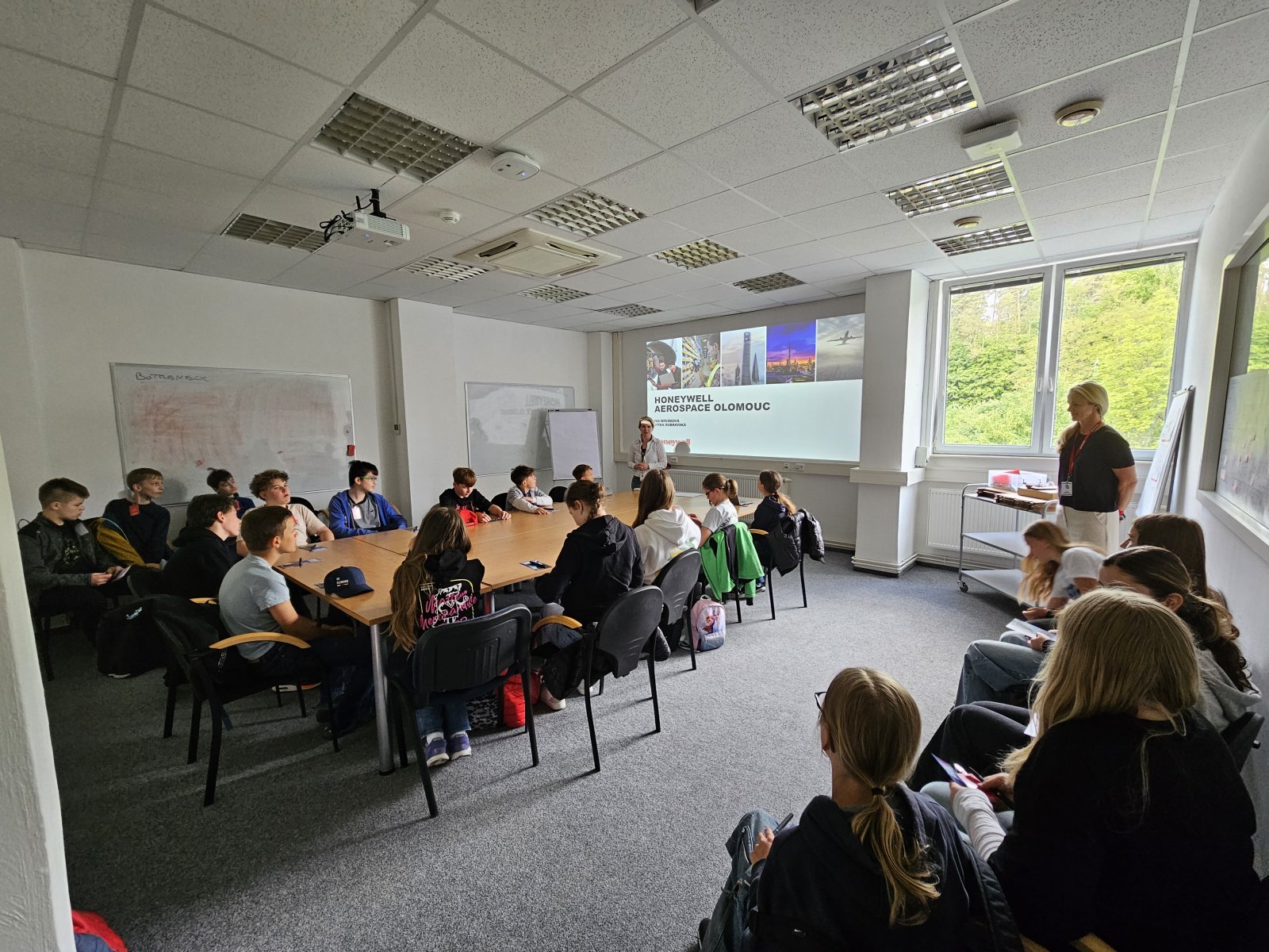 Po příchodu do závodu každý návštěvník obdržel identifikační kartu, poté byli žáci uvedeni do zasedací místnosti, kde jim byla představena firma a její zaměření. Společnost Honeywell je předním světovým výrobcem technologií pro letecký průmysl, v Hlubočkách se specializuje na výrobu součástí leteckých motorů a systémů.