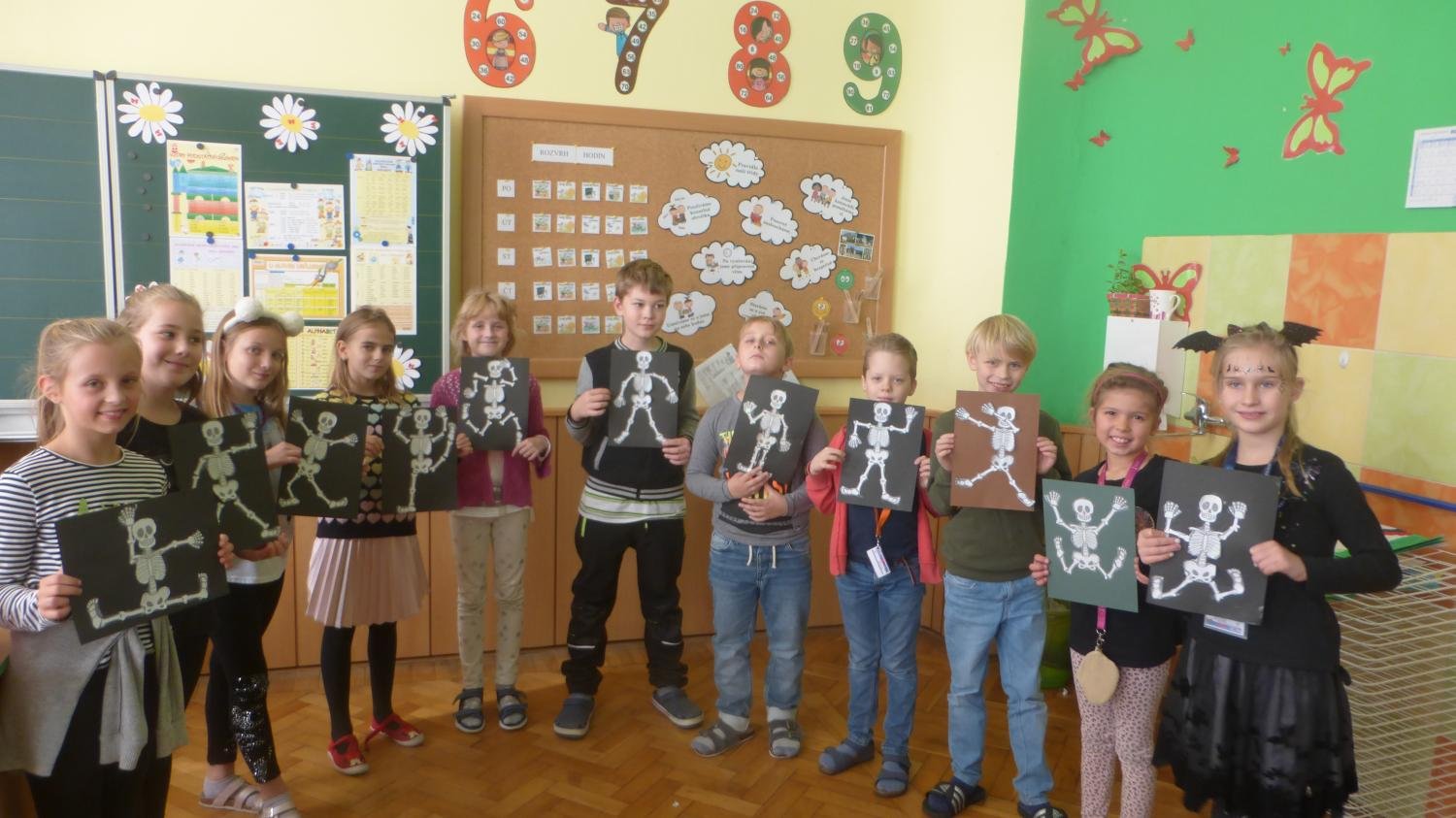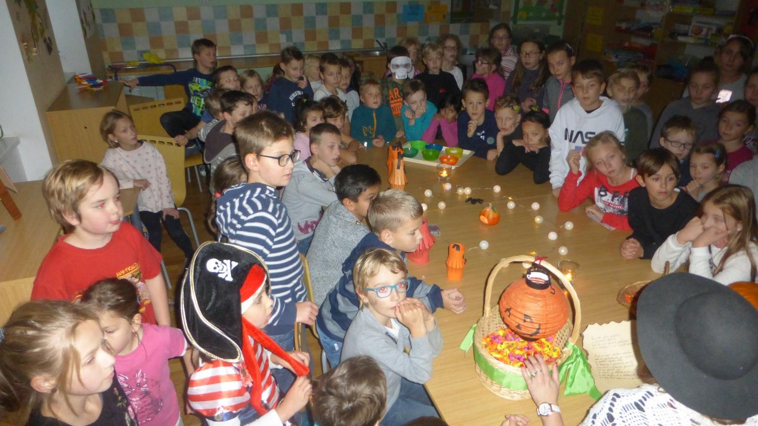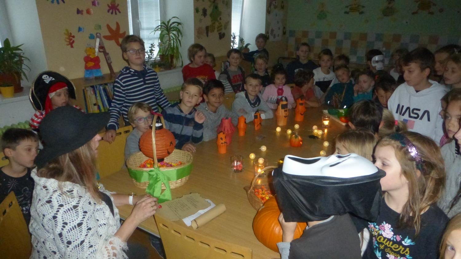 Prvního listopadu děti ve školní družině společně oslavily nejenom Halloween, který se slaví o den dříve, ale i Dušičky, které připadají na 2. listopadu. Vytvářely se tedy nejen papírové dýně, duchové či masky. Každý si mohl vymalovat svou svíčku a napsat vzkaz milovanému, který s ním již není. Proč nám tyto svátky často splývají? V čem lze najít odlišnosti? Děti zjistily, jak slavily Dušičky naši předkové. Proč dávali potraviny za okno a pekli tzv. dušičkové pečivo? Informace následně uplatnily v halloweenské křížovce. Společný program vyvrcholil na školním hřišti, kde žáci prošli několika úkoly, jako sítí pavouka, a šifrou, jež je dovedly k dobré čarodějnici v herně. Již teď se těšíme na tajemné období, které nás za rok znovu čeká.