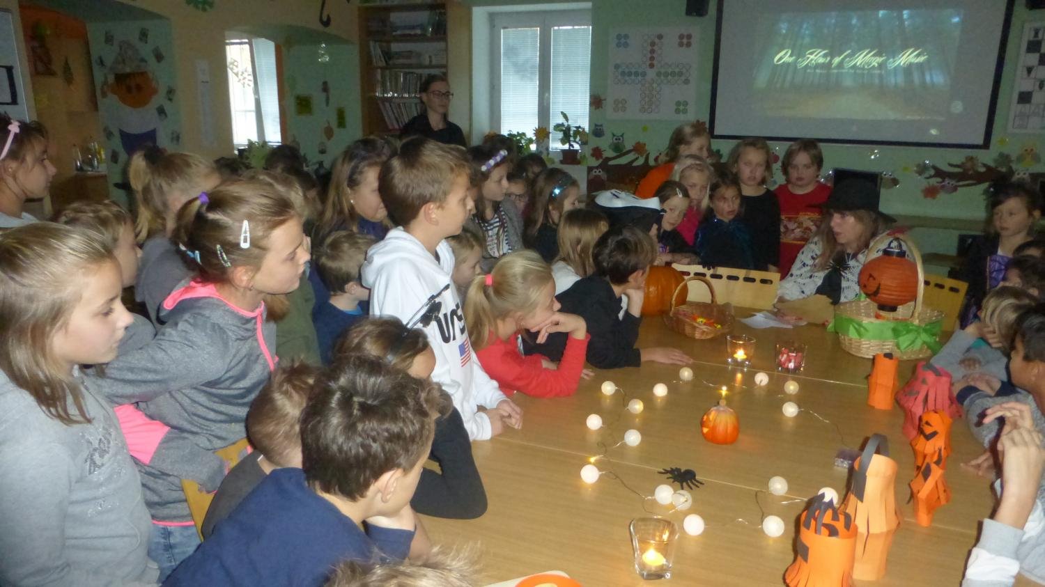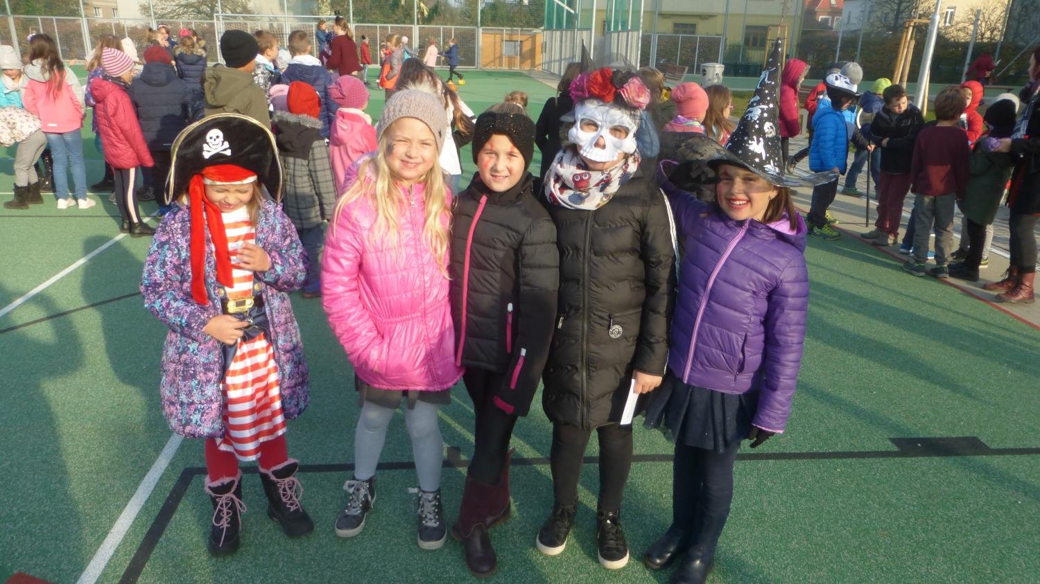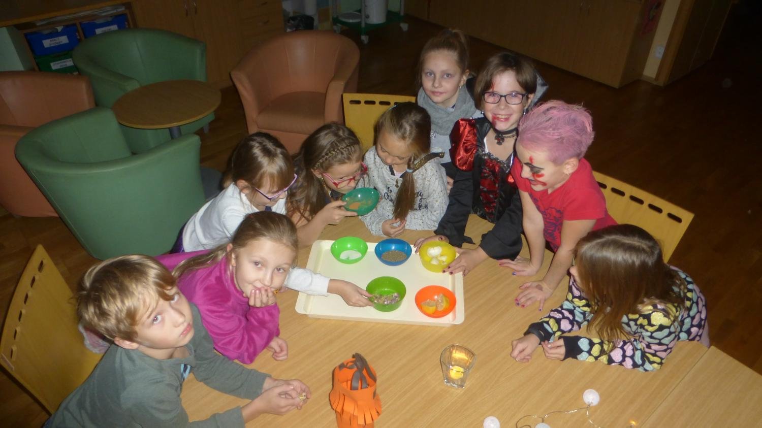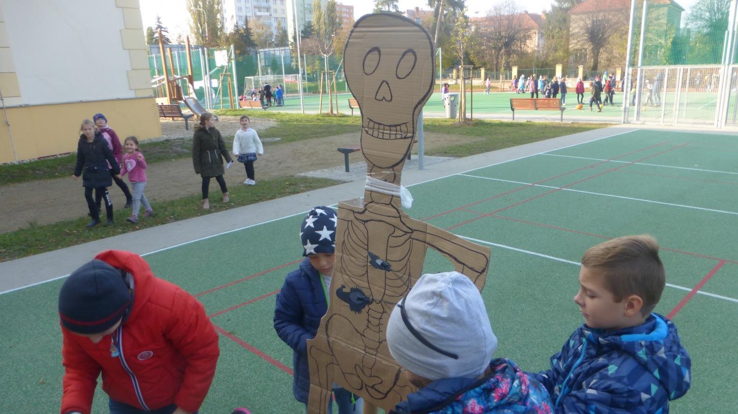 Prvního listopadu děti ve školní družině společně oslavily nejenom Halloween, který se slaví o den dříve, ale i Dušičky, které připadají na 2. listopadu. Vytvářely se tedy nejen papírové dýně, duchové či masky. Každý si mohl vymalovat svou svíčku a napsat vzkaz milovanému, který s ním již není. Proč nám tyto svátky často splývají? V čem lze najít odlišnosti? Děti zjistily, jak slavily Dušičky naši předkové. Proč dávali potraviny za okno a pekli tzv. dušičkové pečivo? Informace následně uplatnily v halloweenské křížovce. Společný program vyvrcholil na školním hřišti, kde žáci prošli několika úkoly, jako sítí pavouka, a šifrou, jež je dovedly k dobré čarodějnici v herně. Již teď se těšíme na tajemné období, které nás za rok znovu čeká.
