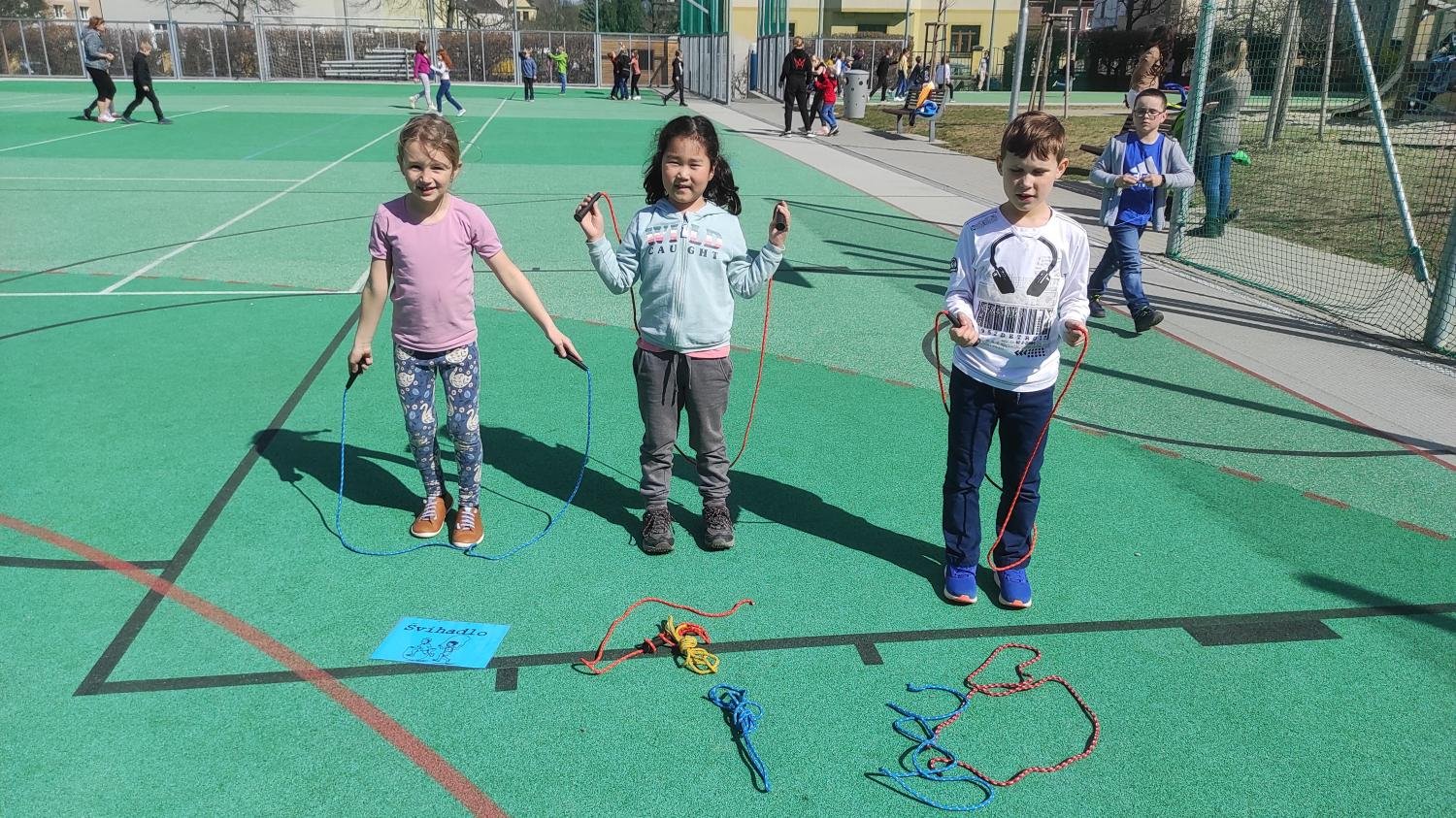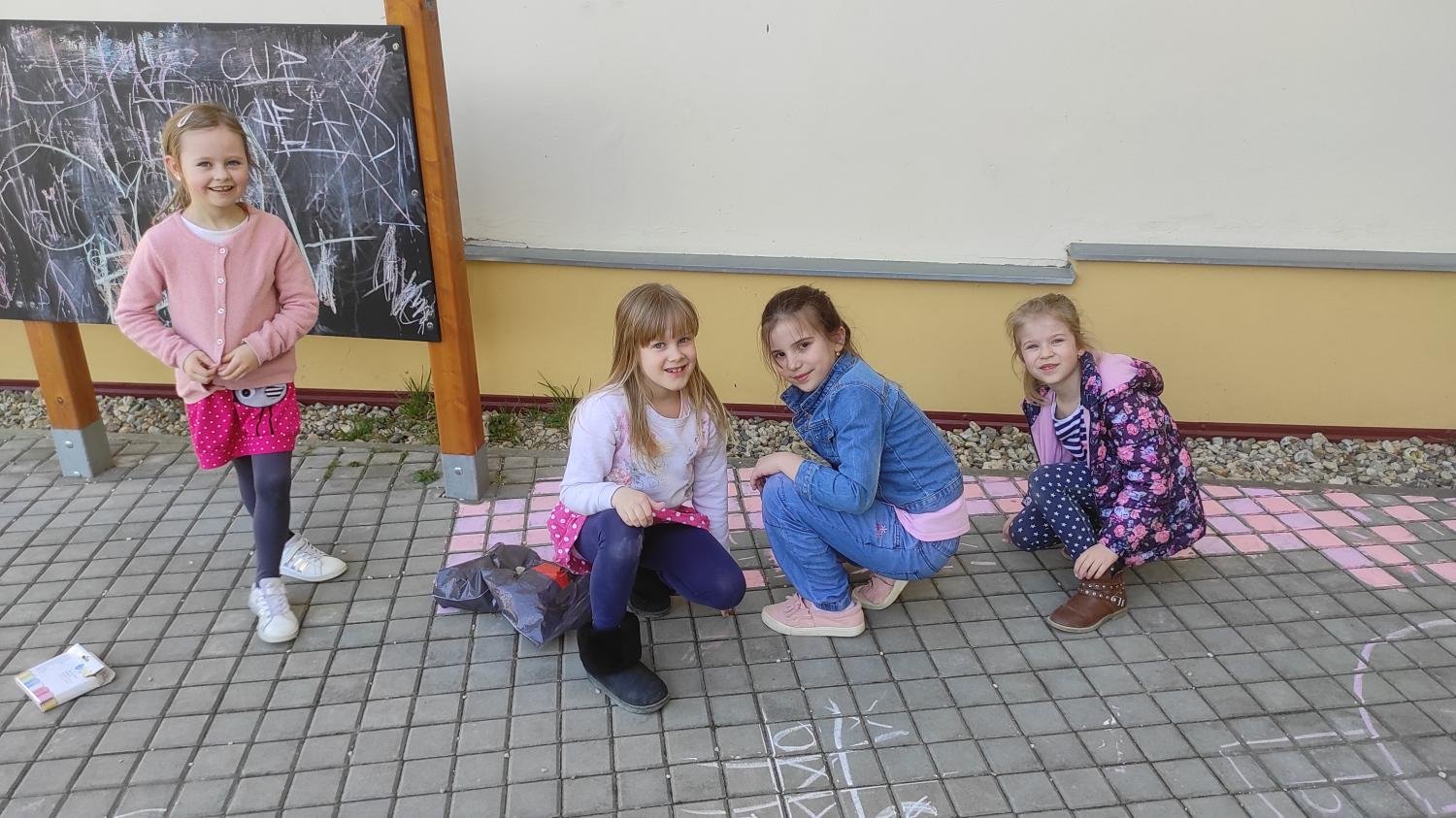 Děti si zahrály na slepou bábu, skákaly přes gumu, skvěle se bavily u oblíbené hry Cukr, káva, limonáda. Hezky si zvládly namalovat a pak skákat panáka.