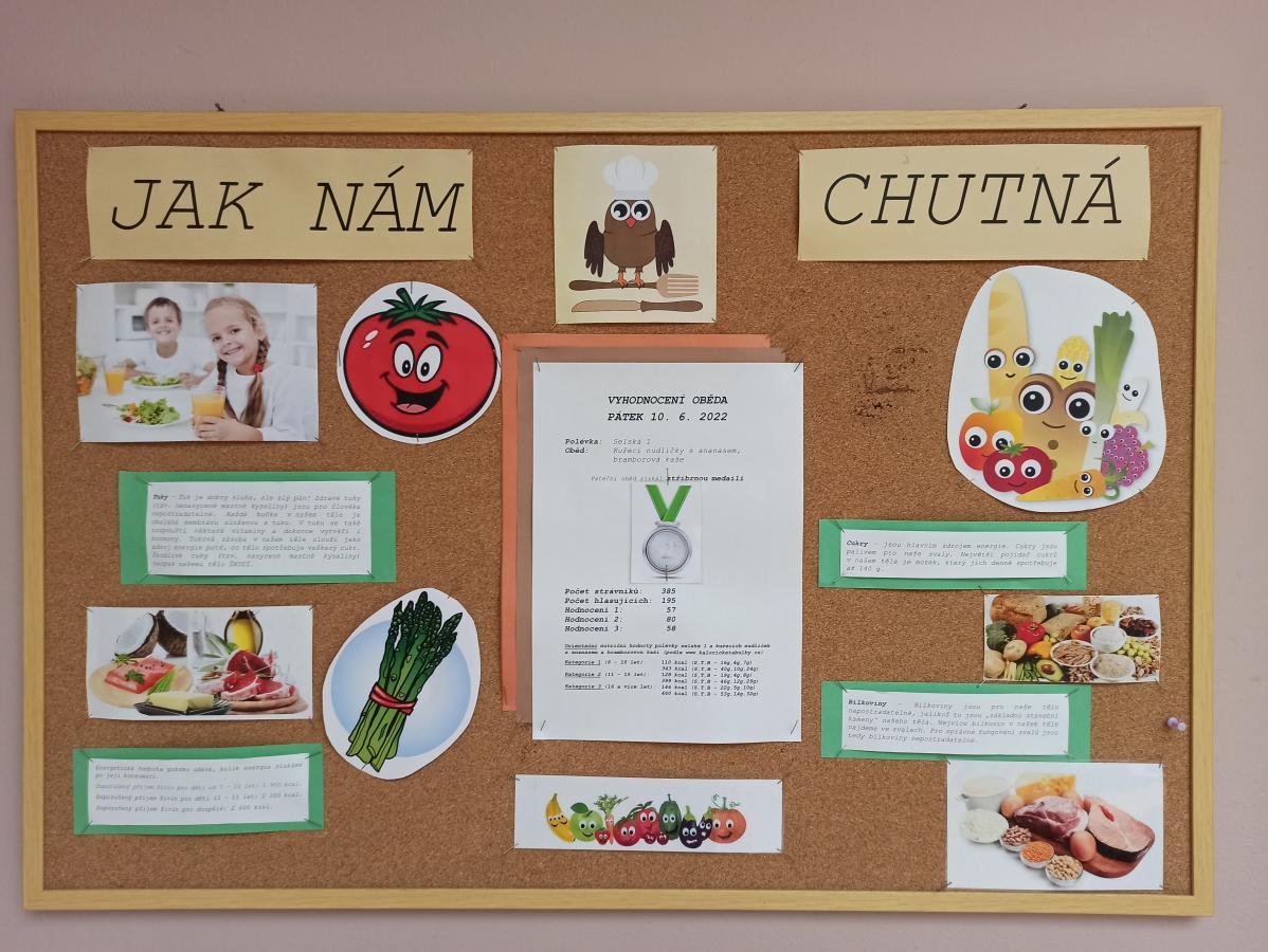 I v měsíci květnu probíhala v naší školní jídelně – výdejně anketa Jak nám chutnají školní obědy? Žáci, ale i zaměstnanci školy, pravidelně hlasují o oblíbenosti školních obědů. A jak anketa dopadla? Zlatou medailí jsme ohodnotili 4 obědy, stříbrnou medailí 14 obědů a bronzovou medailí 4 obědy. Samozřejmě jsme nesledovali pouze oblíbenost školních obědů, ale i jejich nutriční stránku. Pro detailnější přehled si můžete stáhnout soubor analyzující školní obědy v měsíci květnu.