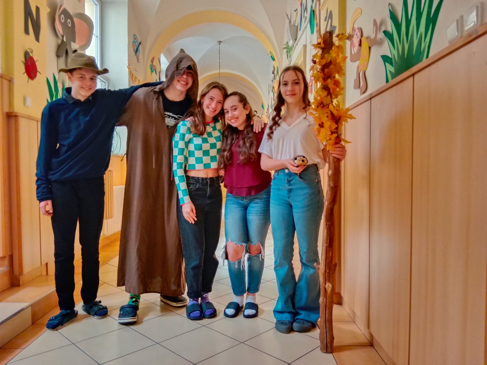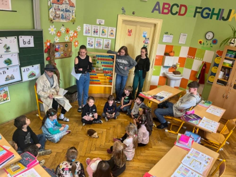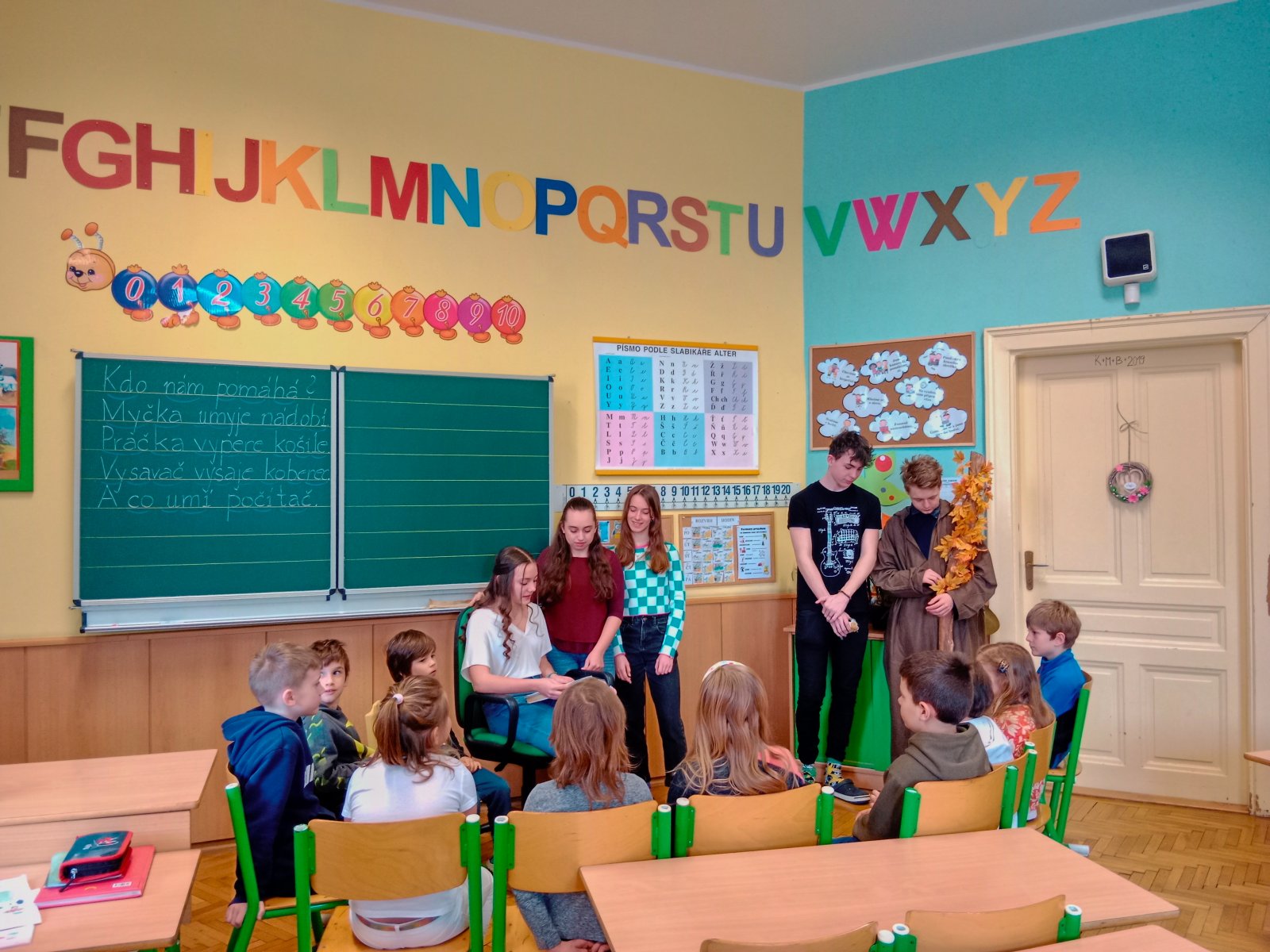V pátek 24. března jsme byli svědky neskrývané radosti na tvářích našich nejmenších, když k nim zavítali žáci devátých tříd. Sestoupivše s piedestalů ostřílených matadorů zpět k nevinnosti pohádkového světa, s nezištným nasazením vykouzlili nejeden úsměv. Několik z nich, převlečeno za mystické bytosti, vkročilo s nadpřirozeným entrée a svými čtenářskými pomocníky mezi očekávání plnou drobotinu, jíž předčítali z pohádkových knížek. Neskrývané emoce v očích prvňáčků oddaně poslouchajících jejich nejstarší spolužáky byly největší odměnou nejen nám, ale i samotným deváťákům. V průběhu programu deváťáci nezapomněli zmínit, že státi se dobrým čtenářem sice vyžaduje píli a úsilí, avšak nemalou odměnou jim bude radost z přečtených knih, s nimiž zažijí spousty dobrodružství, a že čtenářství je zkrátka um, který se jim už nikdy v životě neztratí.