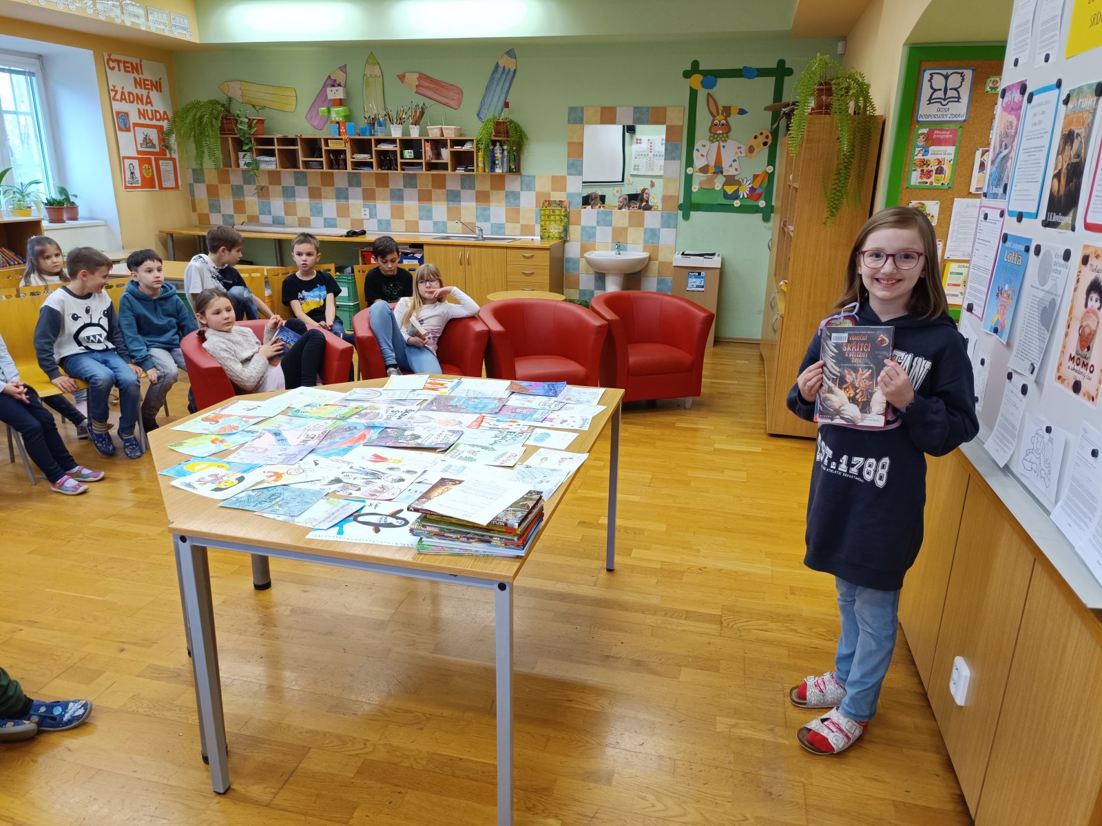 Ve středu odpoledne jsme se sešli v herně, abychom si představili oblíbené knihy, které si děti donesly z domu nebo vybraly v knihovničce ŠD.