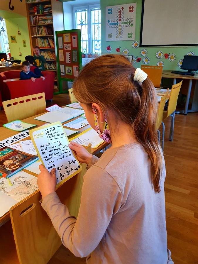 Všechny dopisy a vzkazy jsme vystavili v herně a pak jsme je poslali do poštovní schránky knihopošty v knihovně.