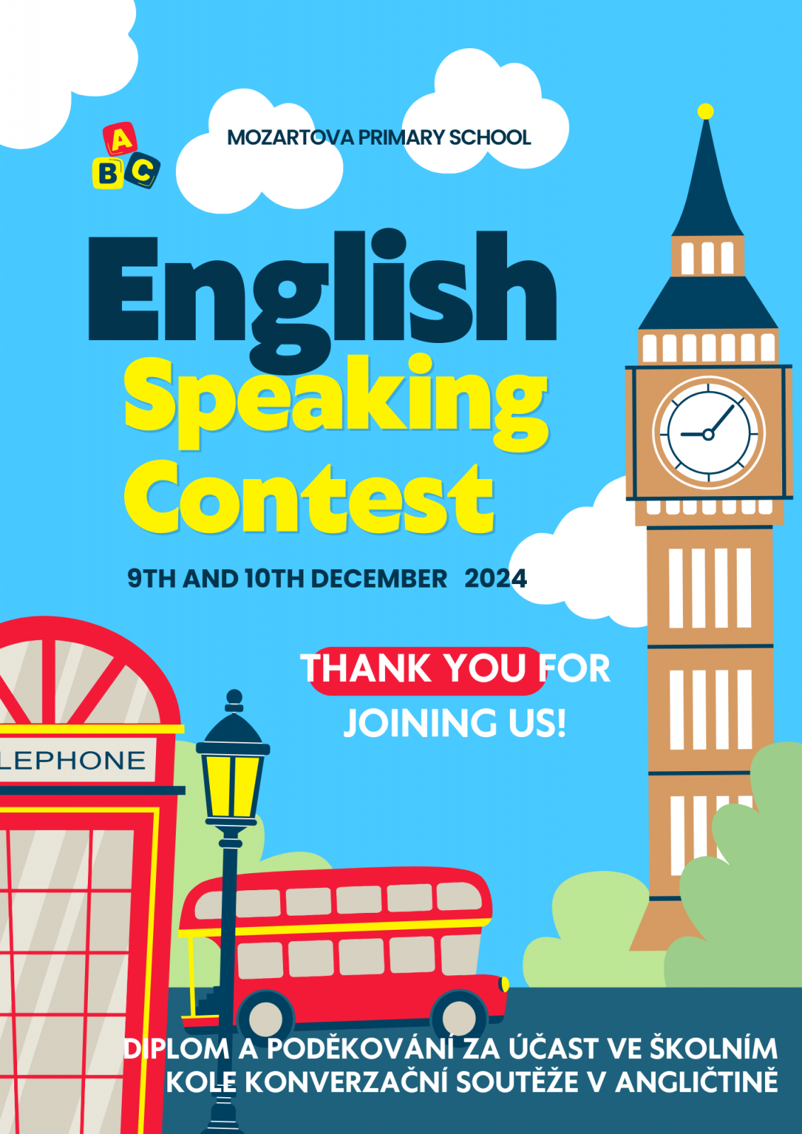 V předvánočním čase se na naší škole konala oblíbená konverzační soutěž v Anglickém jazyce – English Speaking Contest. Ve dnech 9. a 10. prosince 2024 se sešli ti nejstatečnější a také nejšikovnější z angličtinářů a přijali výzvu utkat se ve dvou soutěžních dnech o nejlepší anglicky mluvící žáky naší školy.