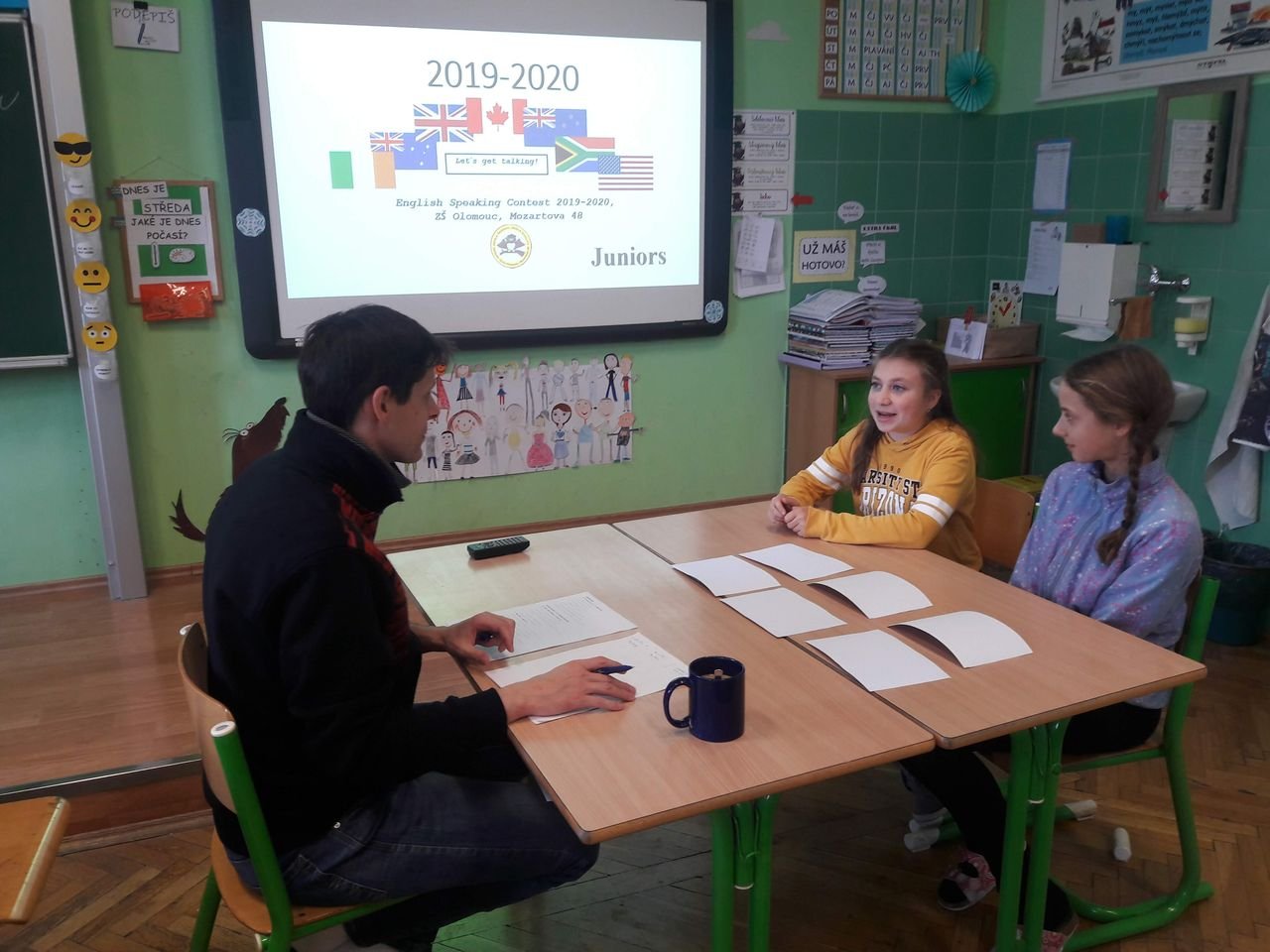 Období prvního adventu je již tradičně doprovázeno konverzační soutěží v anglickém jazyce, a ani letos tomu nebylo jinak. V úterý 3. prosince a 10. prosince se sešli ti nejstatečnější z angličtinářů a přijali výzvu utkat se v soutěži o nejlepší anglicky mluvící žáky naší školy. V kategorii JUNIORS, žáků do sedmých ročníků, se na třetím místě umístily Tereza Michalíková a Victoria Rauch ze 7.B, stříbrnou pozici si vybojovala Klárka Barešová ze třídy 6.B a na prvním místě se v letošním ročníku umístila Klárka Bartoňová ze třídy 7. B. V kategorii YOUNG STUDENTS pro žáky osmých a devátých ročníků obsadily krásné třetí místo Barbora Hilšerová z 8.A a Aneta Křůmalová z 9. A. Výborného druhého místa dosáhla Julie Kočí ze třídy 9. B a absolutním vítězem tohoto školního roku se stal Boris Zarivnij z 9.A. Všem účastníkům děkujeme za účast v soutěži, vítězům gratulujeme a budeme se těšit na reprezentaci našich vítězů v únorovém okresním kole, které se uskuteční v DDM Olomouc.