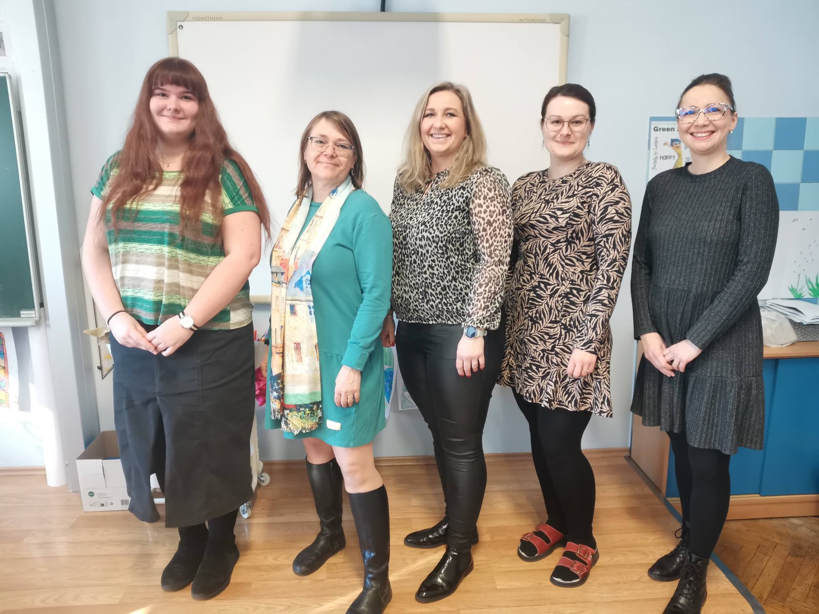Ve středu 5. března 2025 v týdnu před jarními prázdninami k nám zavítala další anglicky mluvící návštěva. Skupinka vysokoškolských studentek k nám tentokrát přicestovala z anglického Lincolnu v rámci vzdělávacího programu Erasmus. Doprovázela je paní profesorka Mgr. Jana Kořínkovéá Ph.D. z Ústavu cizích jazyků Pdf při UP Olomouc a studentka anglického a německého jazyka Alena Magdaléna Stoklásková. Tři studentky z Lincoln University - Kirsty, Katie, Mollee - u nás strávily příjemné dopoledne, zapojily se do několika vyučovacích hodin a poskytly našim žákům možnost spontánní komunikace s rodilým mluvčím. Studentky a děti se seznamovaly, mladší děti si s nimi hrály, starší děti jim pokládaly všetečné otázky, a dokonce jsme si všichni společně vyzkoušeli několik anglických jazykolamů. Všechna děvčata navíc poskytla žákům přirozenou ukázku velmi silného britského přízvuku. Naše děti na oplátku prozradily návštěvě něco o sobě, o svém životě, o svém volném čase a o zajímavých místech v naší krásné Olomouci. Všechny dívky byly milé, laskavé, otevřené a usměvavé a z jejich tváří bylo vidět, že se se jim v naší škole líbí. Této nadstandardní spolupráce s Ústavem jazyků Pedagogické fakulty si nesmírně ceníme a jsme za ni rádi! Těšíme se příště zas!