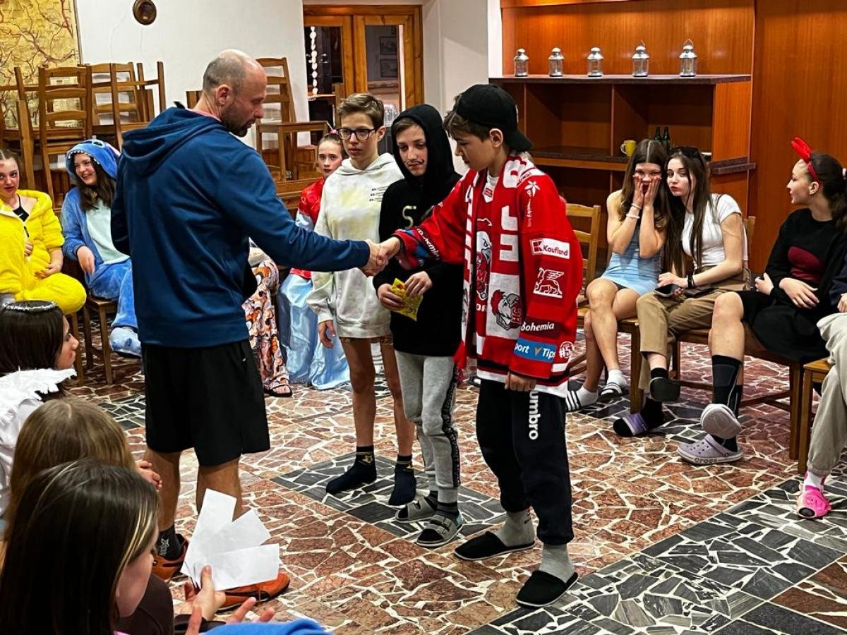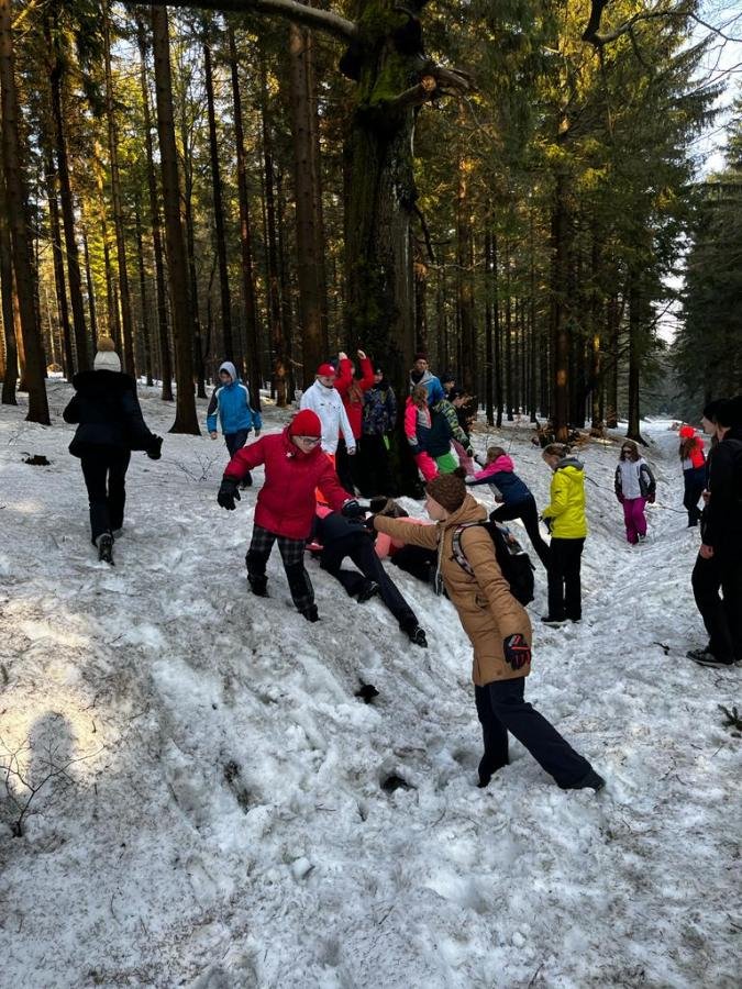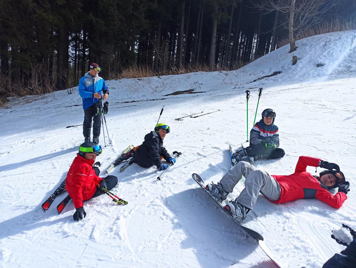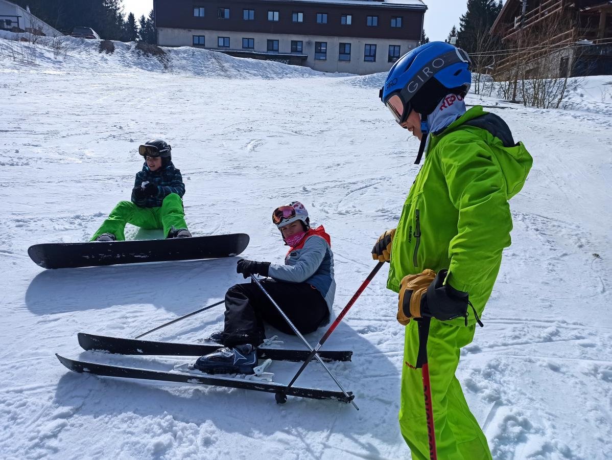 Obrovské poděkování patří zdravotníkovi kurzu Báře, instruktorům za naučení sjíždění svahu Sylvě, Tomášovi a Honzíkům za výborný přístup k dětem. Bylo to velmi zábavné a vyčerpávající zároveň… V neposlední řadě patří dík našim skvělým, snaživým, učenlivým a kamarádským žákům za přístup, pokroky při lyžování a snowboardingu.
