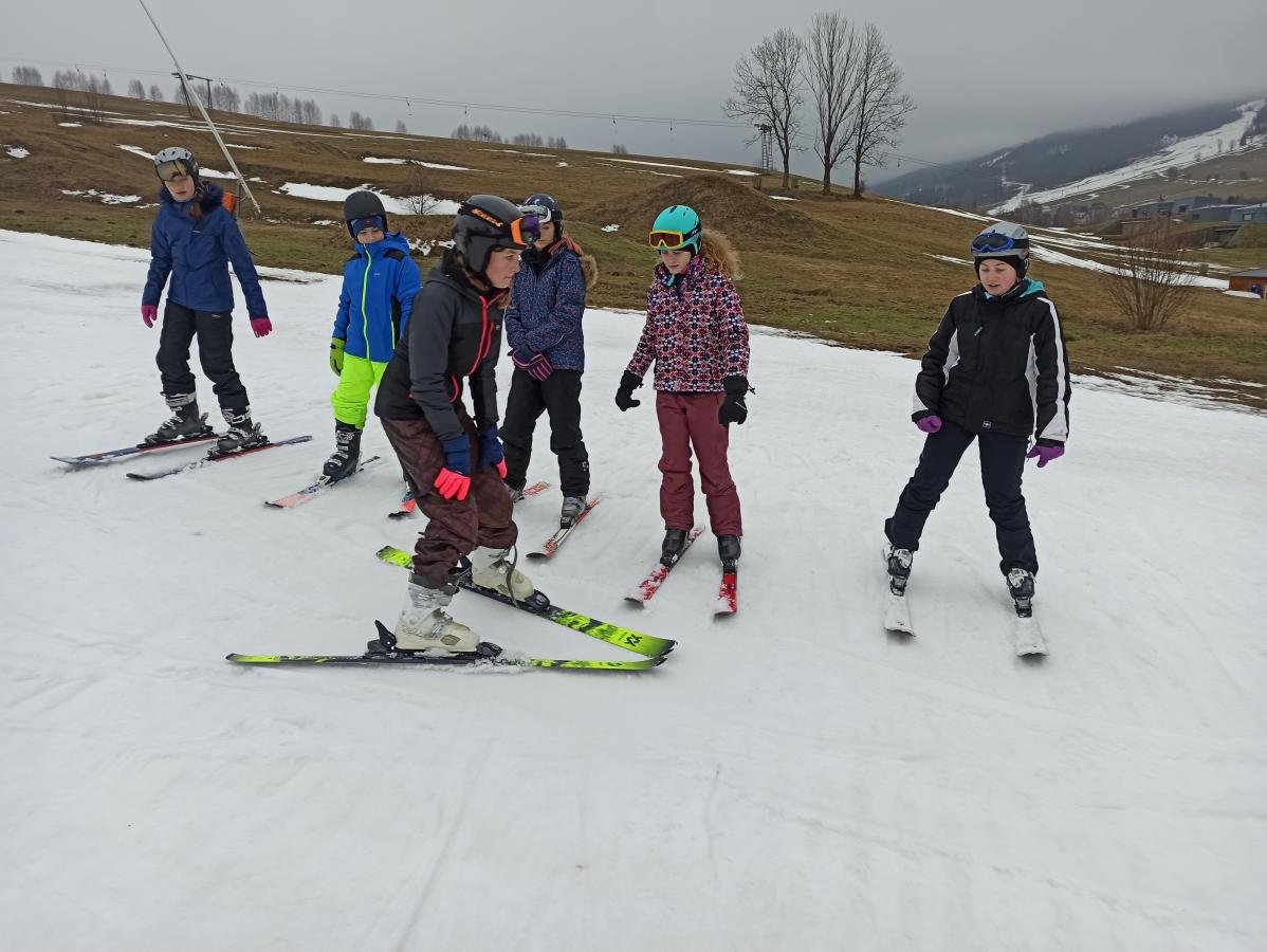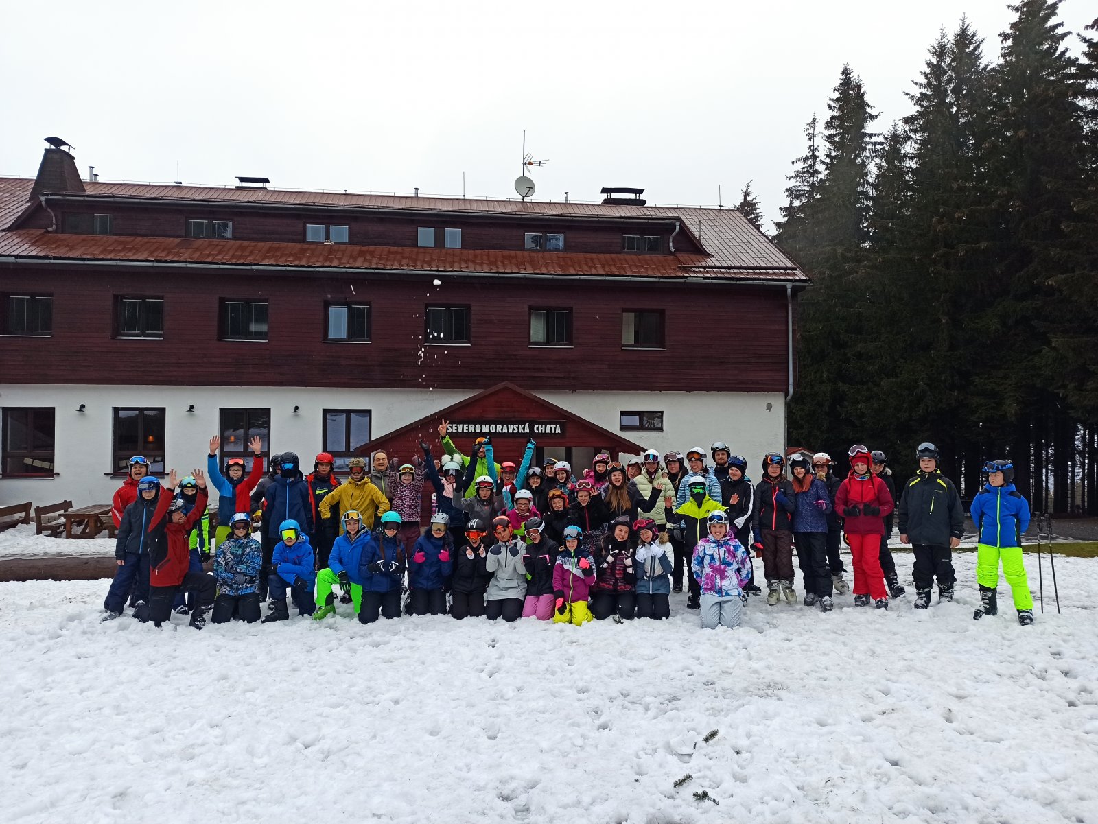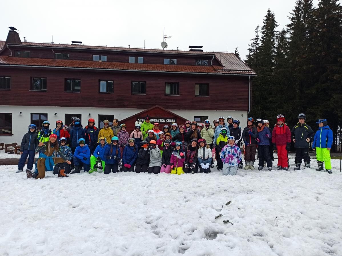 Lyžařský kurz se se jako vždy konal na „naší“ Severomoravské chatě. Bohužel nám špatné počasí nedovolovalo využít sjezdovku přímo u chaty, tak jsme hráli hry v blízkém okolí a za sněhem dojížděli na Větrný vrch v Dolní Moravě. Cesta za sněhem nebyla jednoduchá, děti musely jít 2 km po sjezdovce dolů, pak nasednout na autobus a přejet k lyžařskému vleku. Takový den nám odstartoval již 6:30. LVVZ proběhl v přátelské atmosféře a žáci se naučili bezpečně sjíždět sjezdovku. Děti zvládly oblouky na obě strany. Děti obě hlavní sportovní aktivity (lyžování i snowboarding) velice bavily, a i přes náročnější podmínky byl problém je dostat „domů“ ze svahu. Pro žáky byl připraven i celotýdenní program plný her, tance, zábavy, legrace, přednášek, soutěží se slavnostním zakončením a vyhlášením vítězů. Počasí nám dovolilo udělat předposlední večer celý program venku - stezku odvahy a opékání špekáčků.