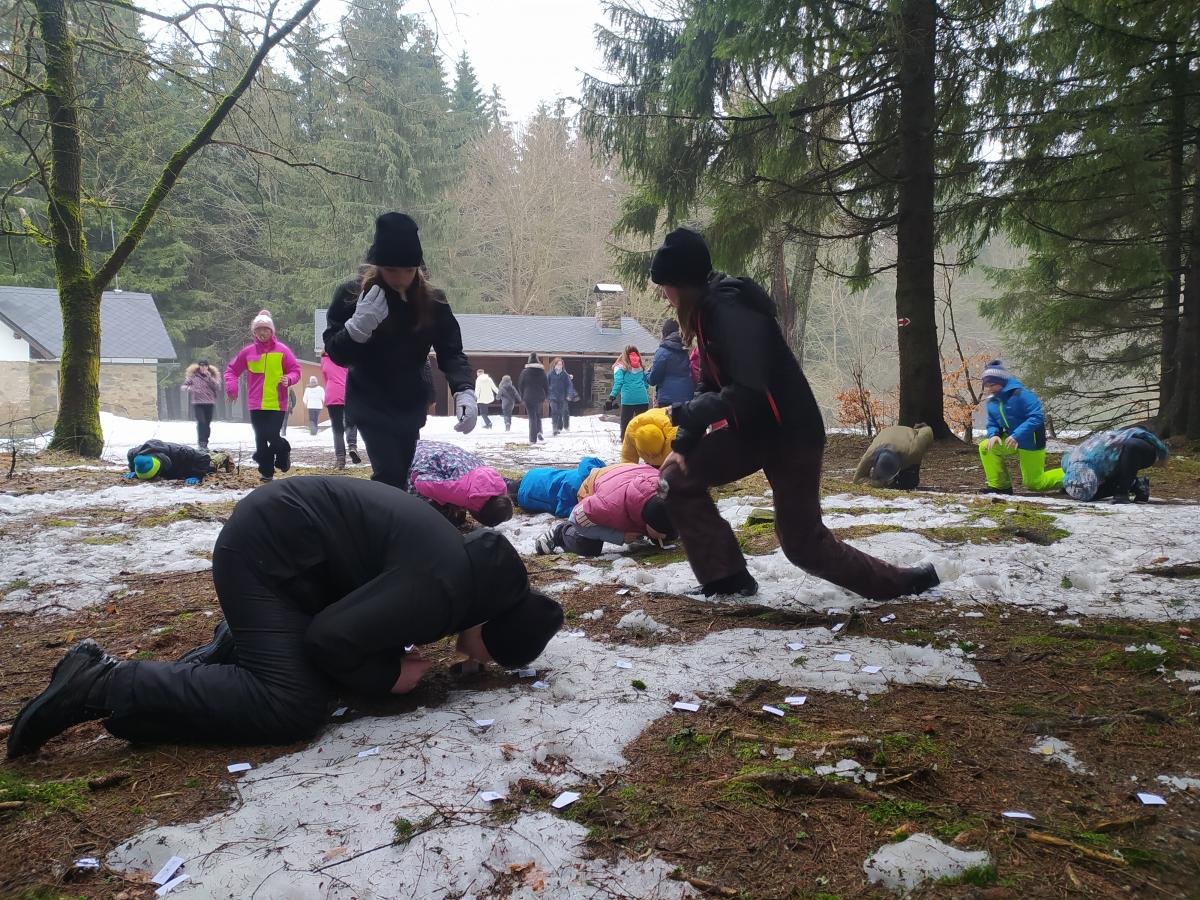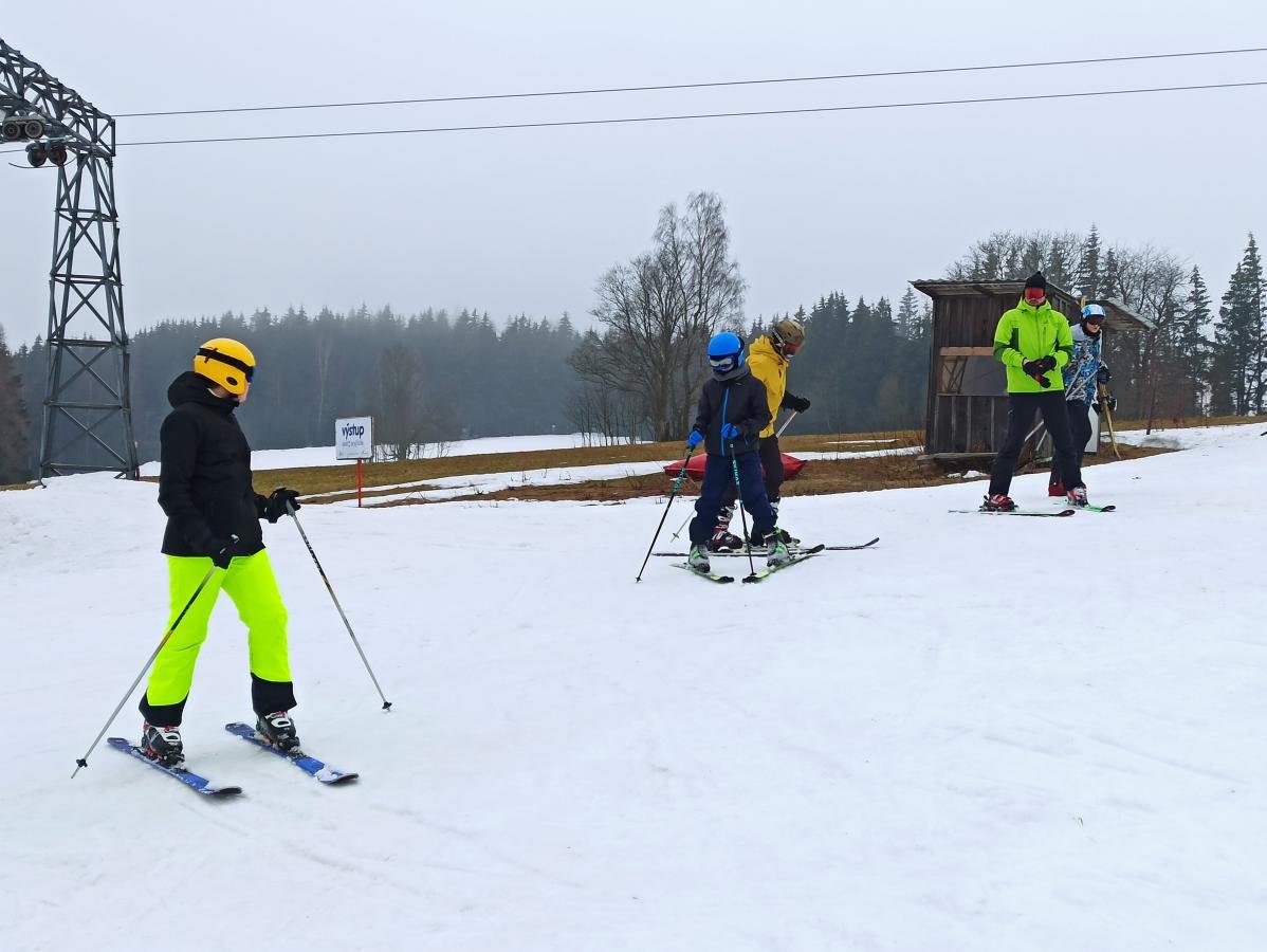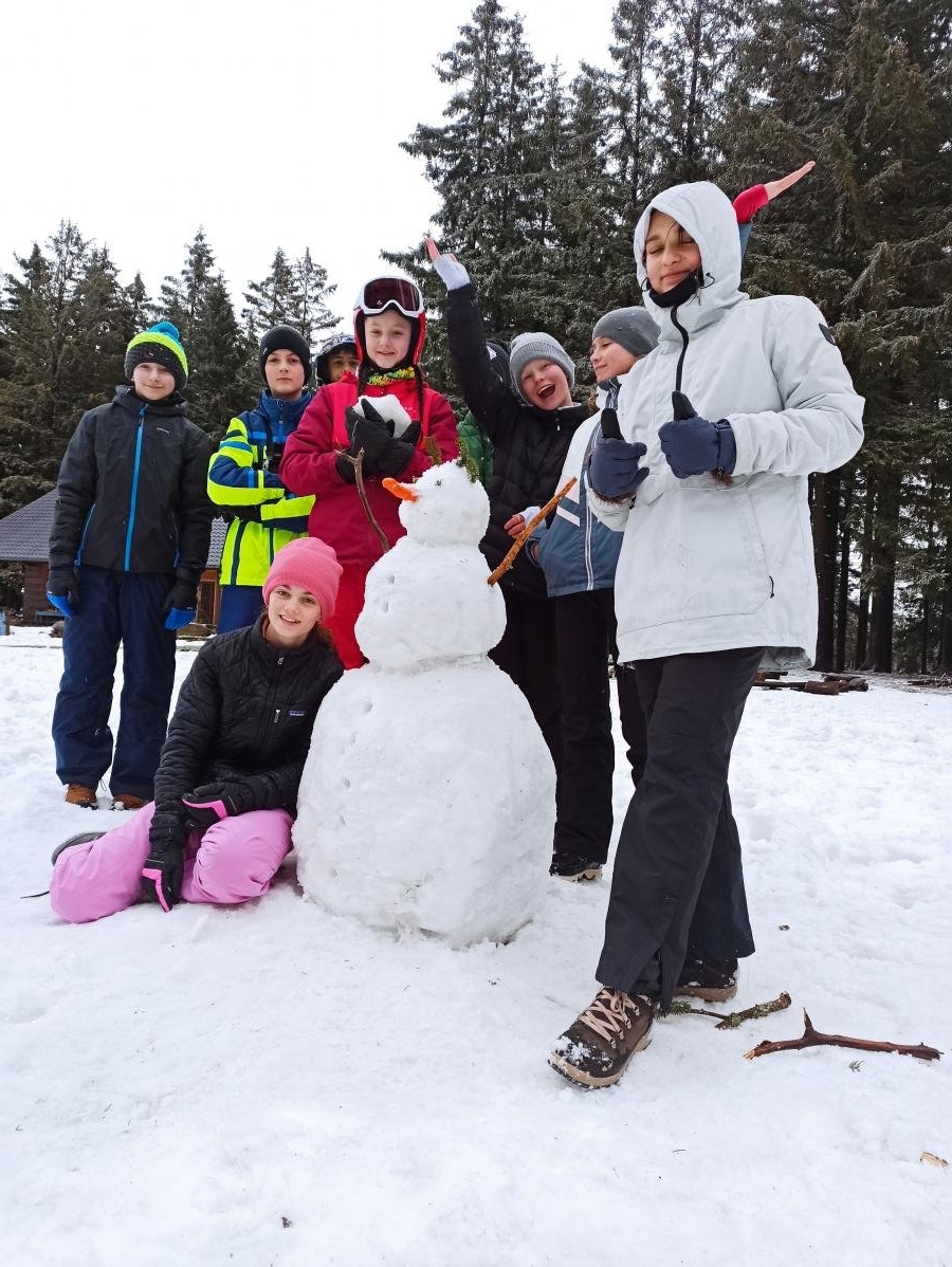 Lyžařský kurz se se jako vždy konal na „naší“ Severomoravské chatě. Bohužel nám špatné počasí nedovolovalo využít sjezdovku přímo u chaty, tak jsme hráli hry v blízkém okolí a za sněhem dojížděli na Větrný vrch v Dolní Moravě. Cesta za sněhem nebyla jednoduchá, děti musely jít 2 km po sjezdovce dolů, pak nasednout na autobus a přejet k lyžařskému vleku. Takový den nám odstartoval již 6:30. LVVZ proběhl v přátelské atmosféře a žáci se naučili bezpečně sjíždět sjezdovku. Děti zvládly oblouky na obě strany. Děti obě hlavní sportovní aktivity (lyžování i snowboarding) velice bavily, a i přes náročnější podmínky byl problém je dostat „domů“ ze svahu. Pro žáky byl připraven i celotýdenní program plný her, tance, zábavy, legrace, přednášek, soutěží se slavnostním zakončením a vyhlášením vítězů. Počasí nám dovolilo udělat předposlední večer celý program venku - stezku odvahy a opékání špekáčků.